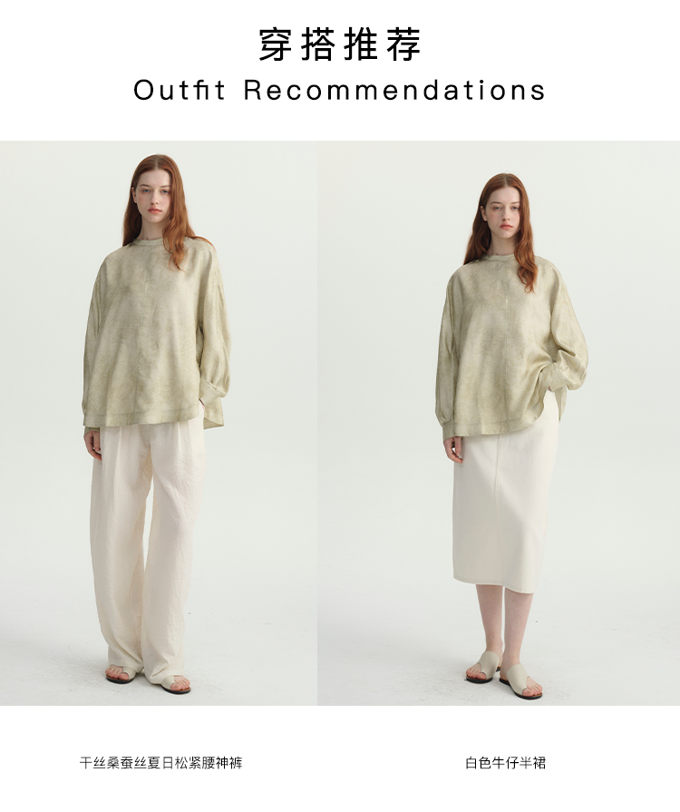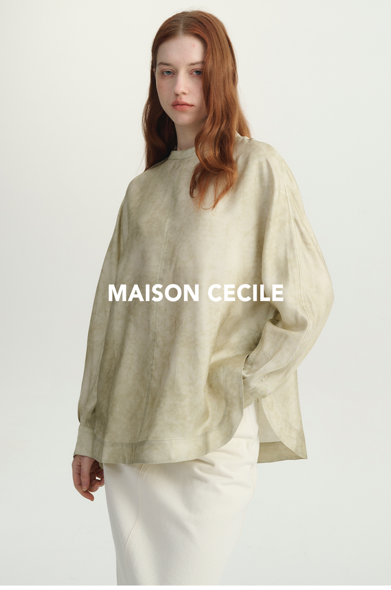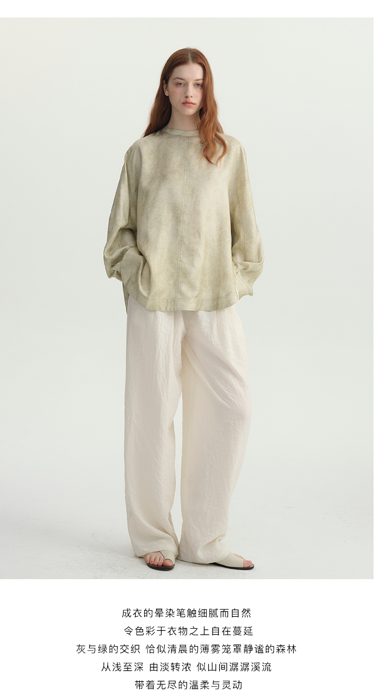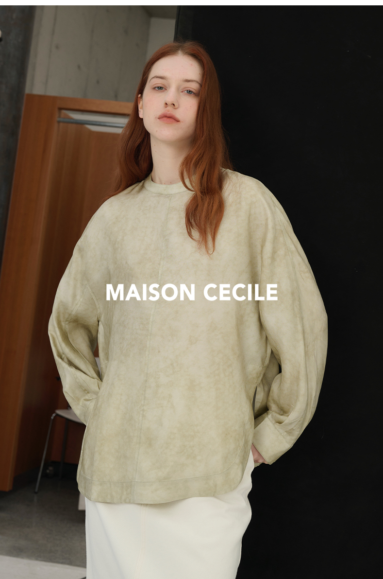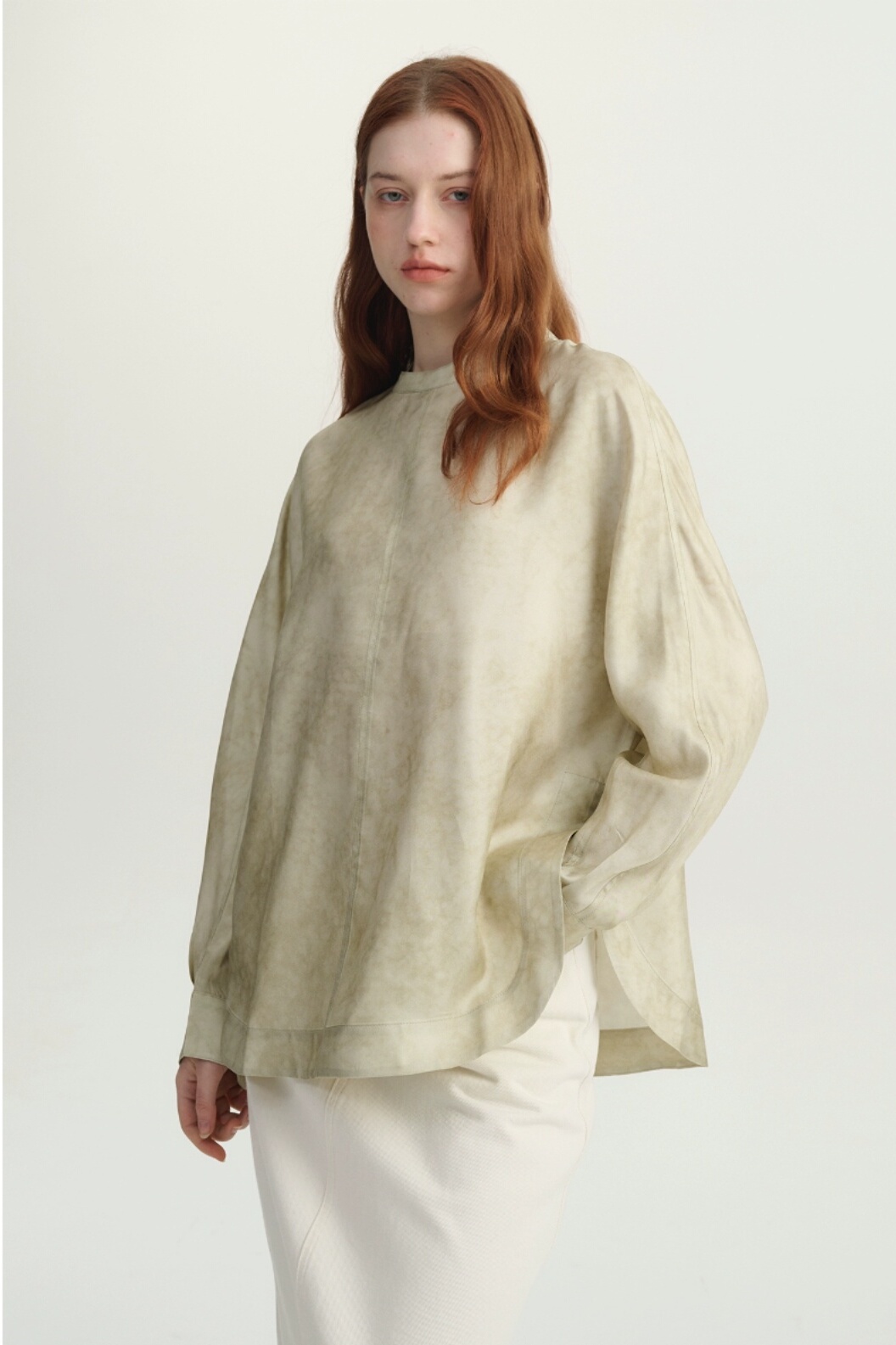 MAISON CECILE晕染灰绿色桑蚕丝随性风宽松上衣