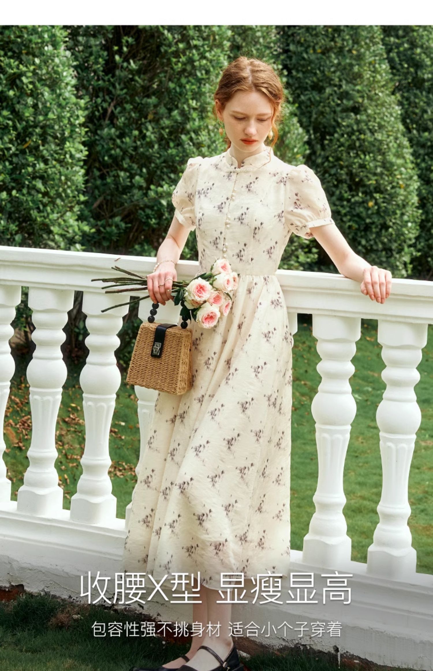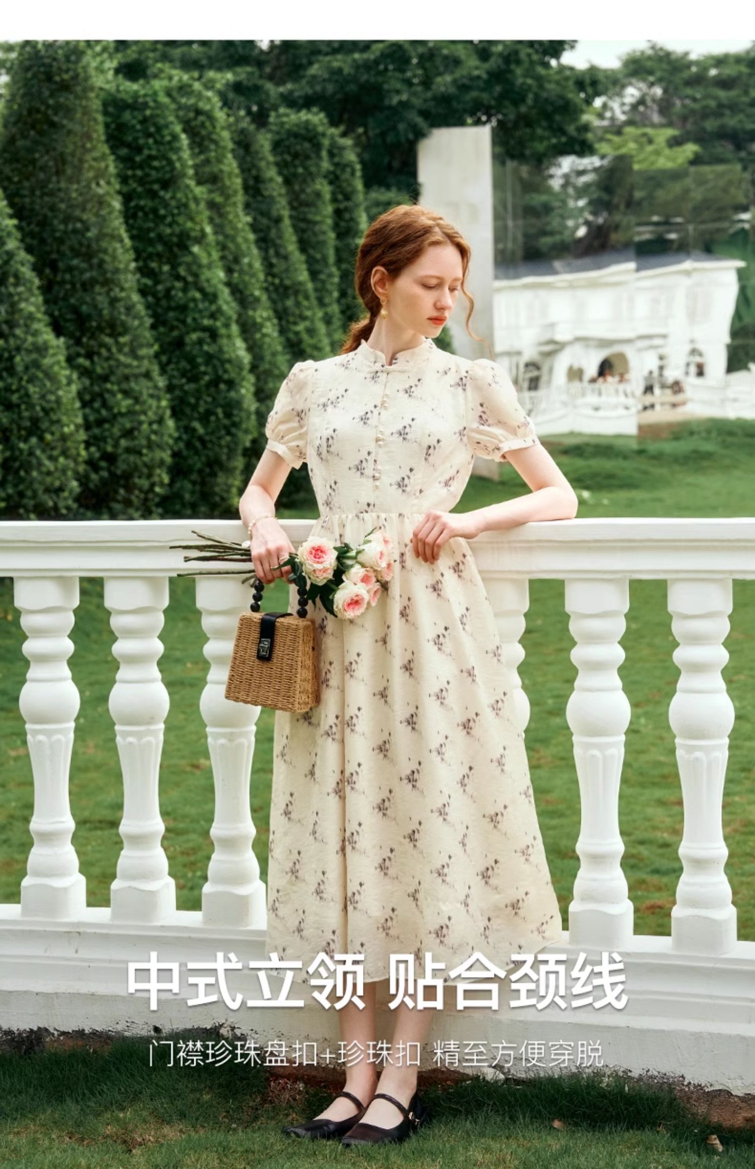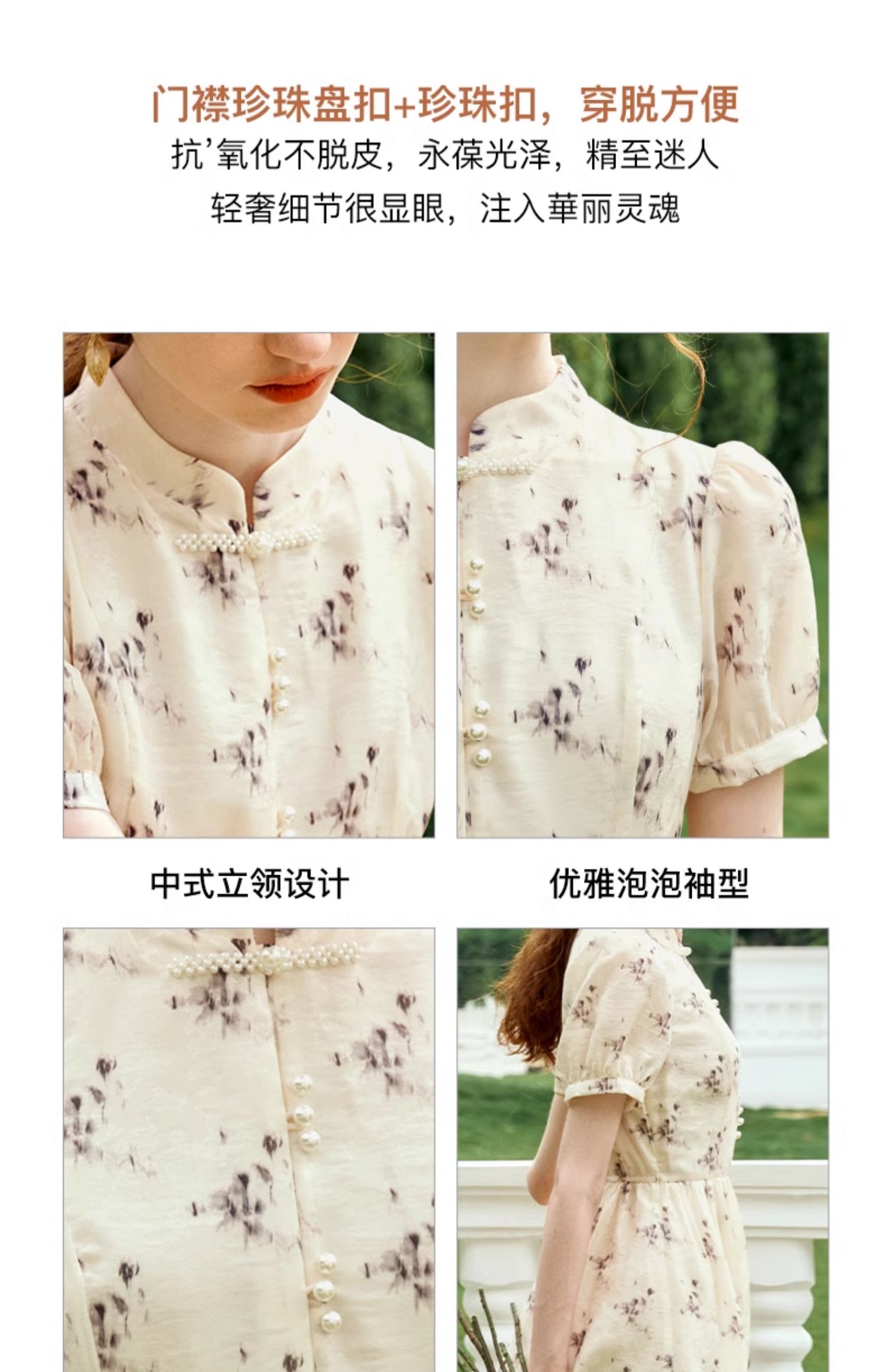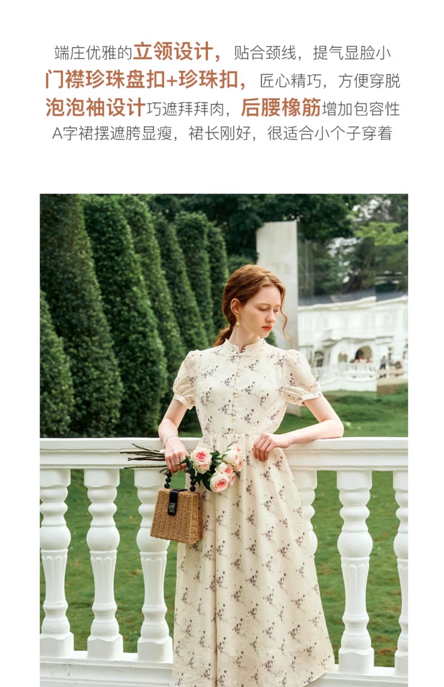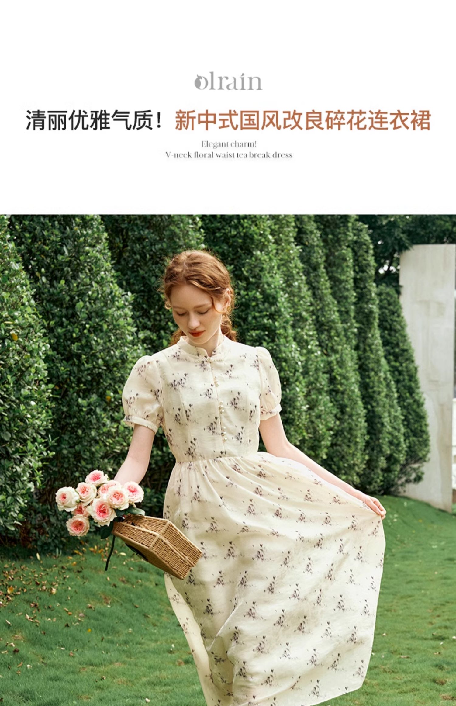 OLrain欧芮儿新中式国风改良碎花连衣裙女夏季2024新款立领长裙