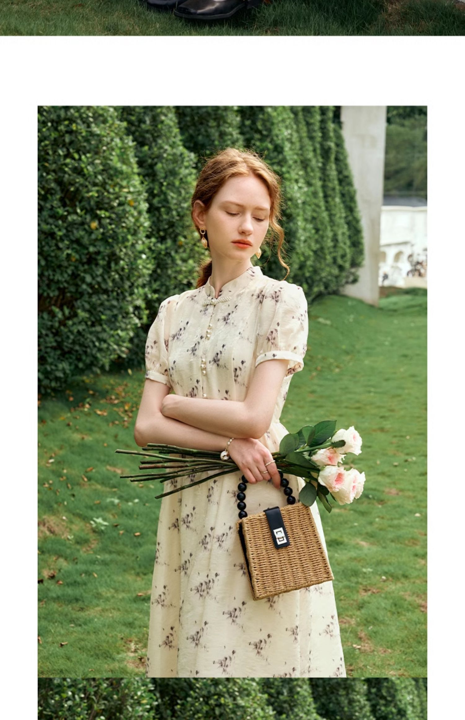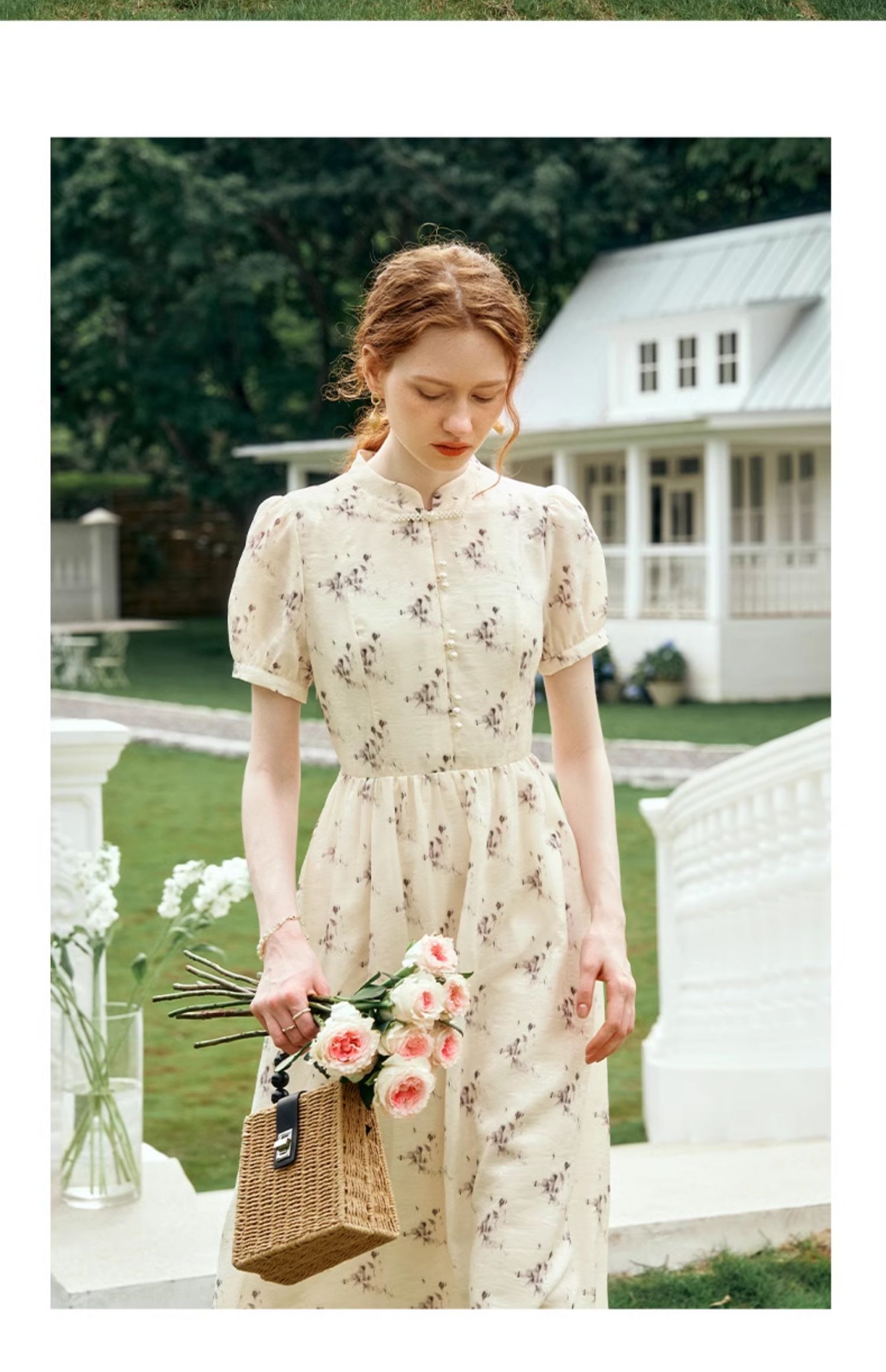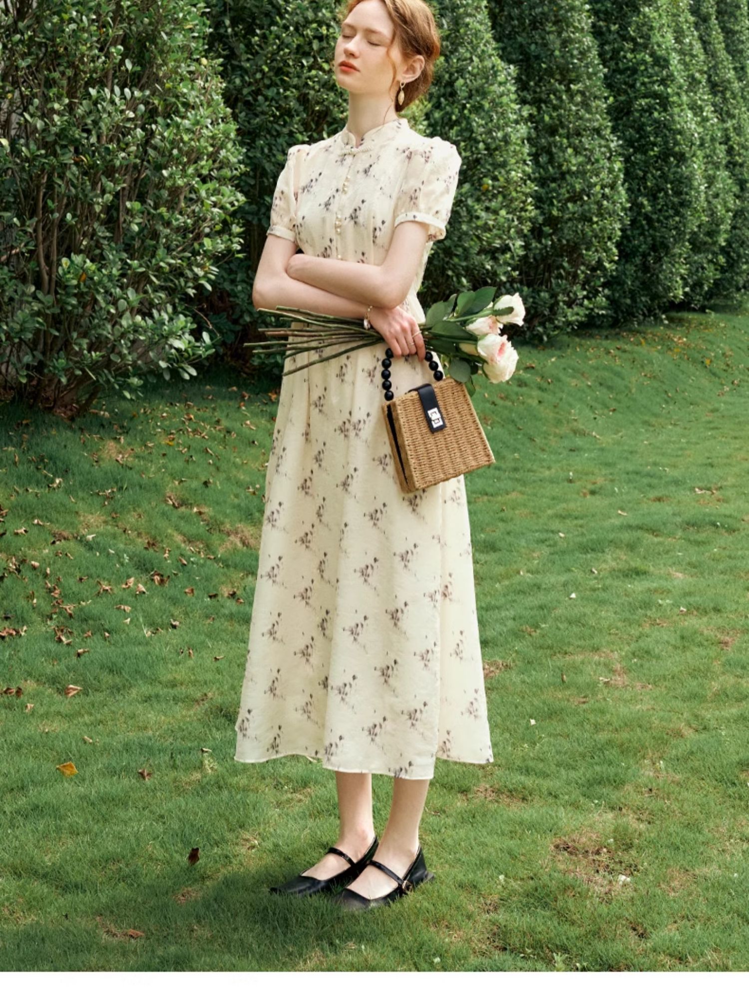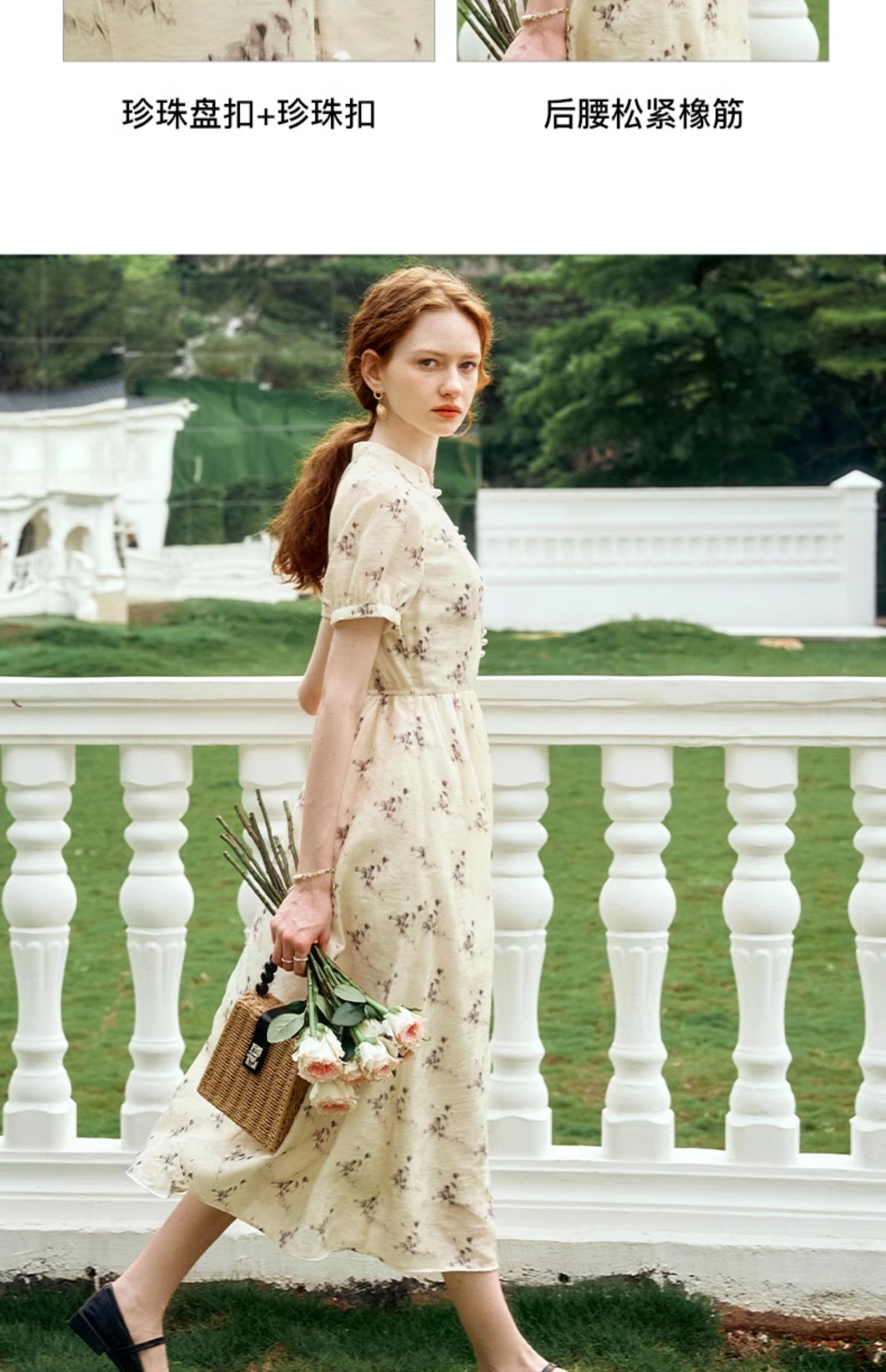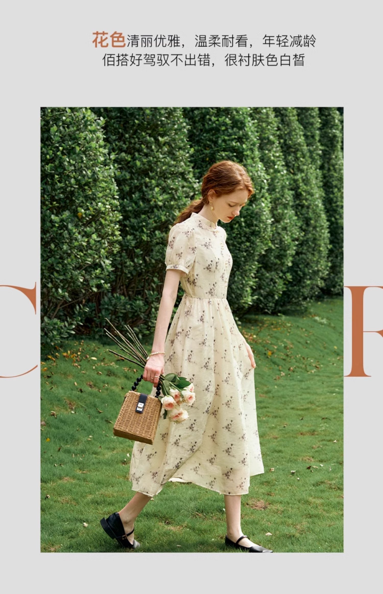 OLrain欧芮儿新中式国风改良碎花连衣裙女夏季2024新款立领长裙