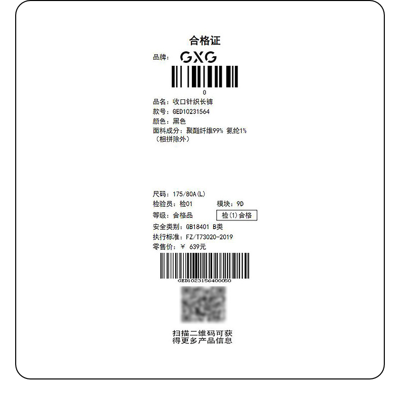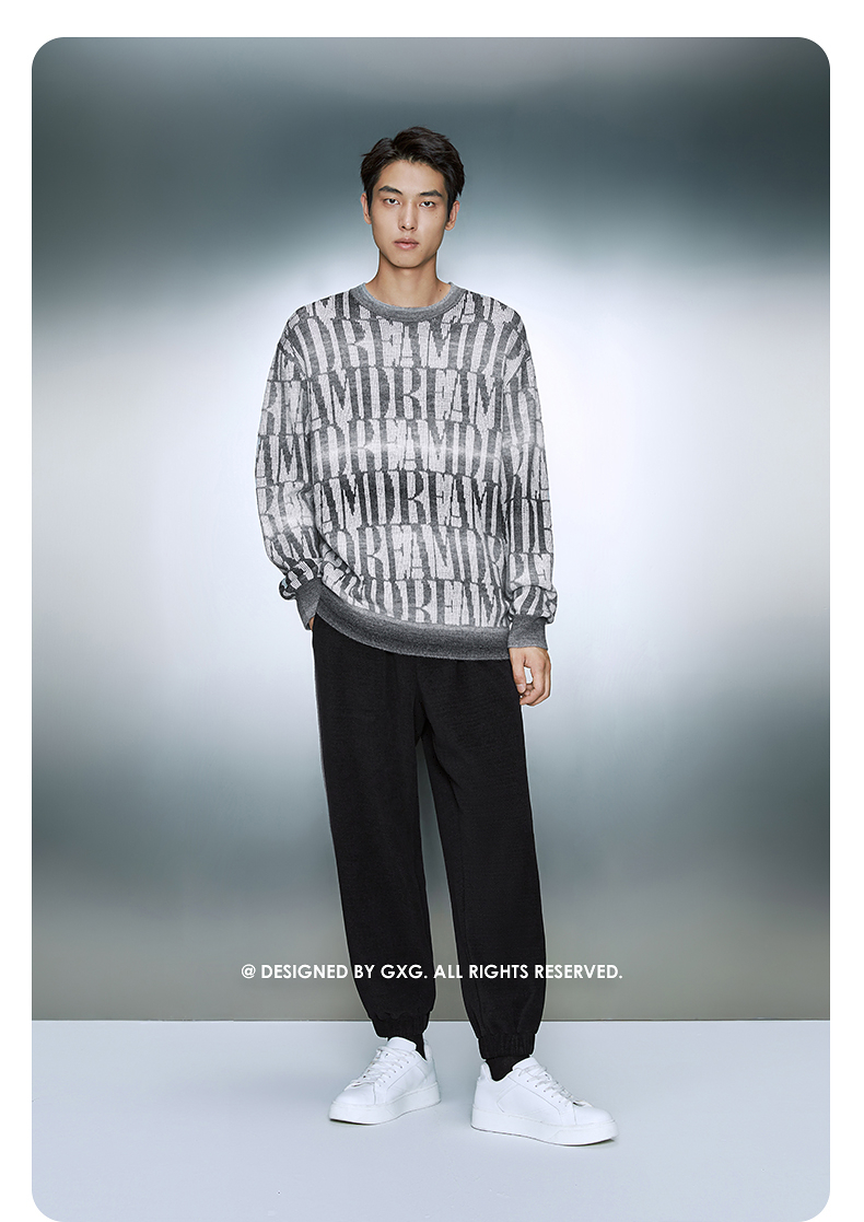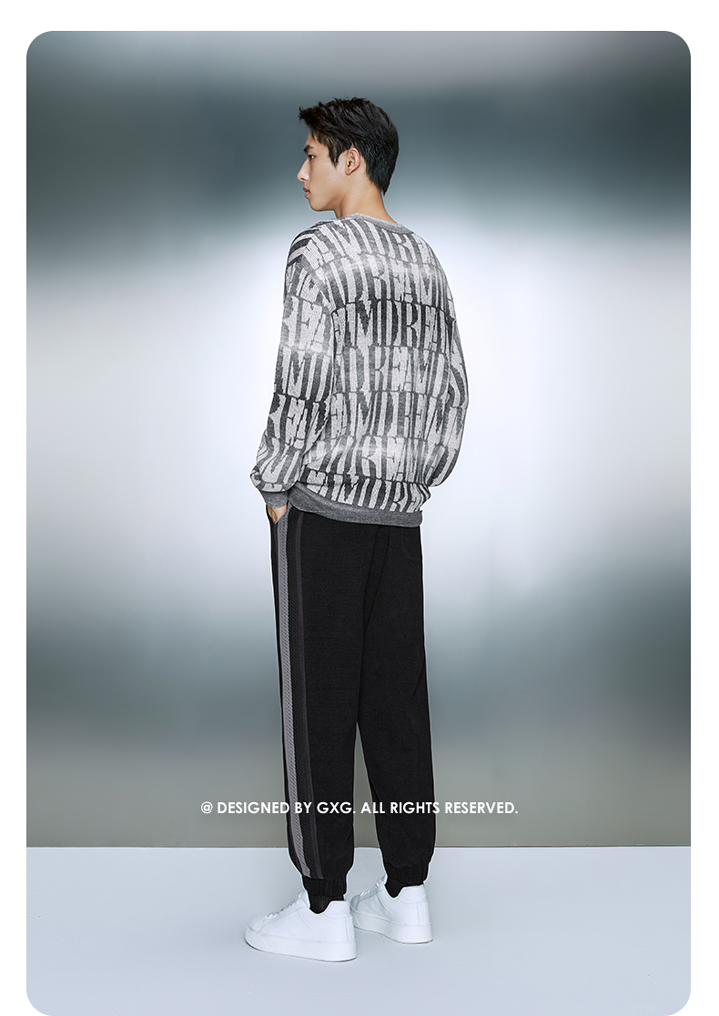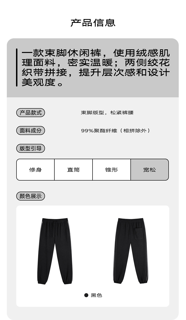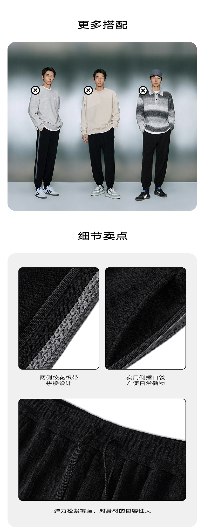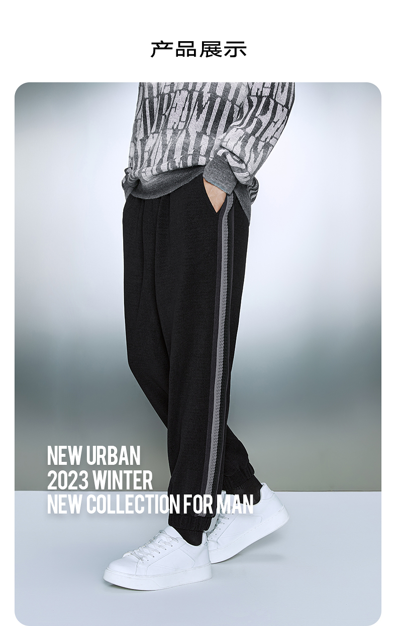 GXG男装 黑色肌理绒感休闲宽松束脚休闲裤卫裤男士 冬季热卖