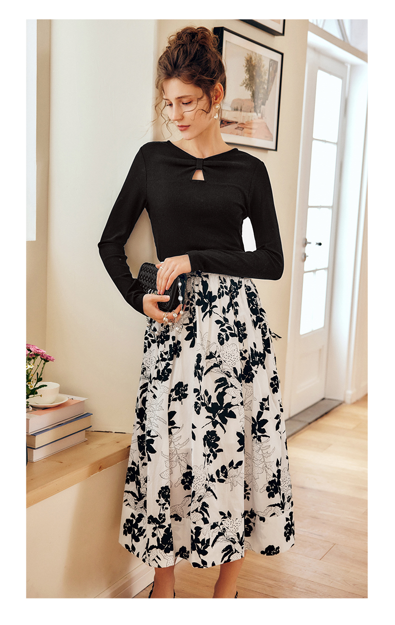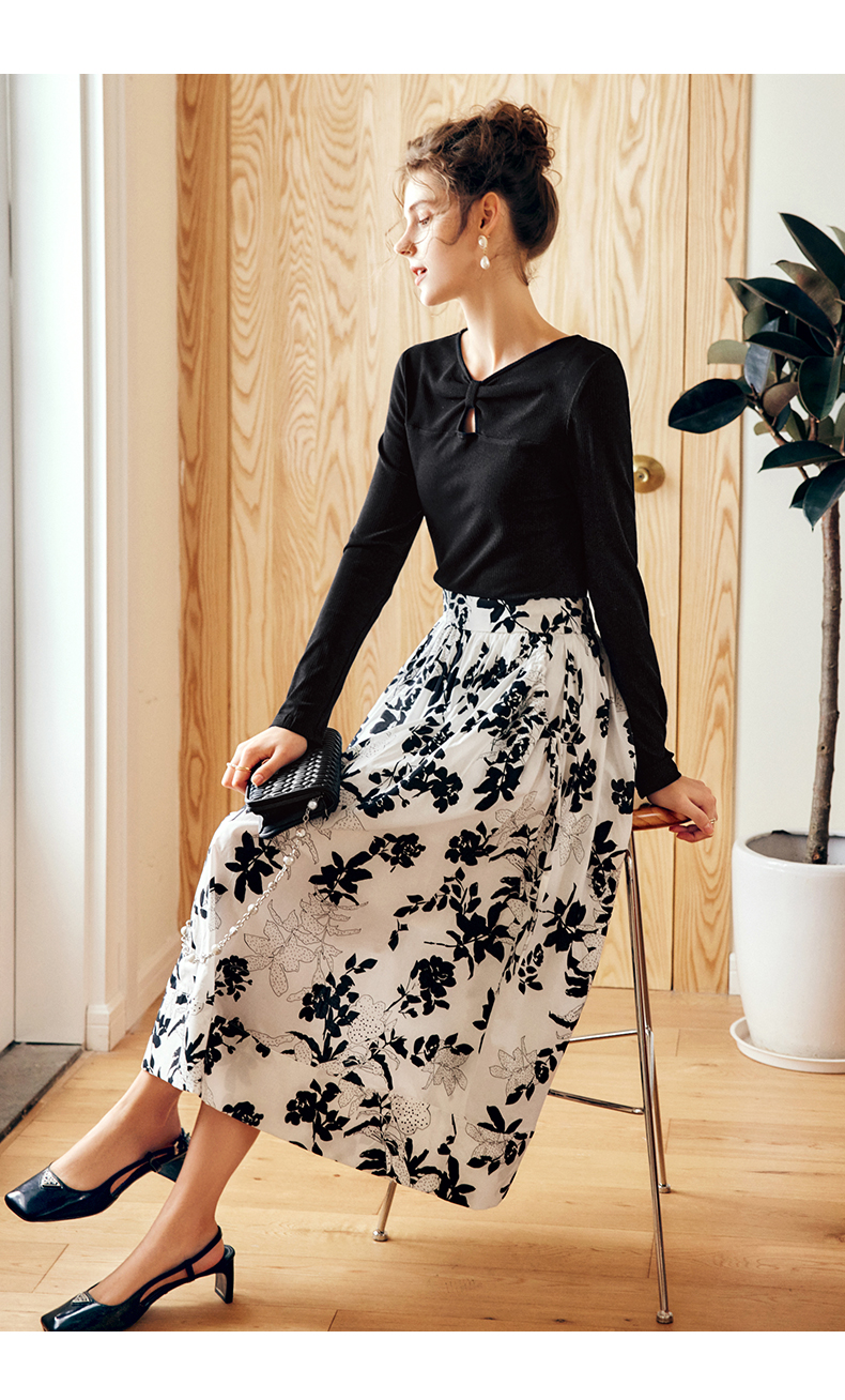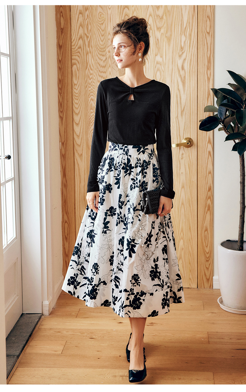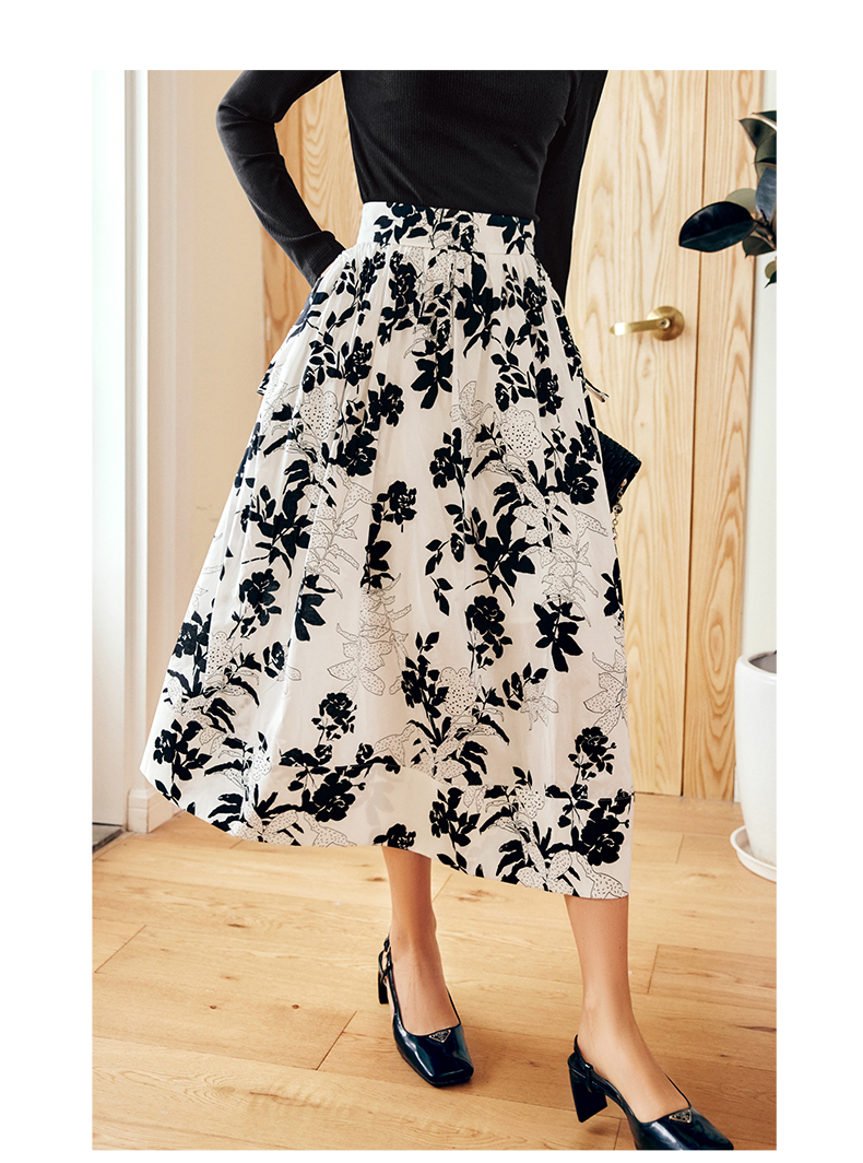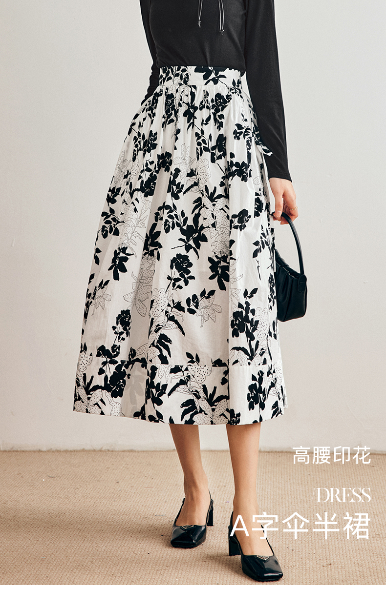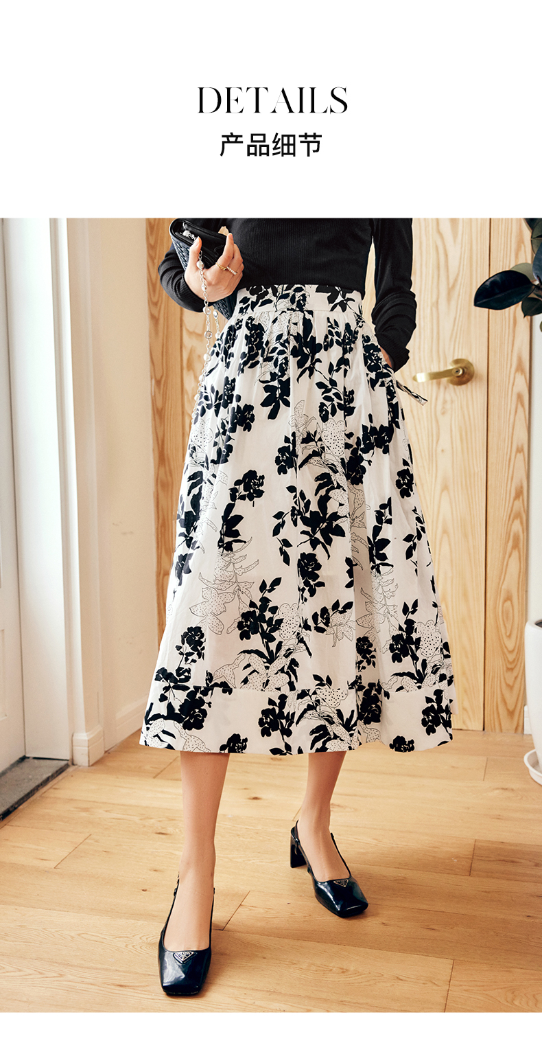OLrain法式碎花半身裙女早秋2022年新款高级感高腰印花A字伞裙