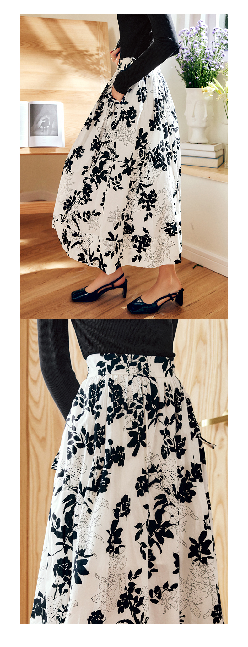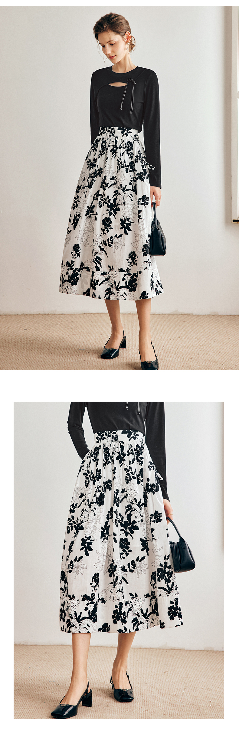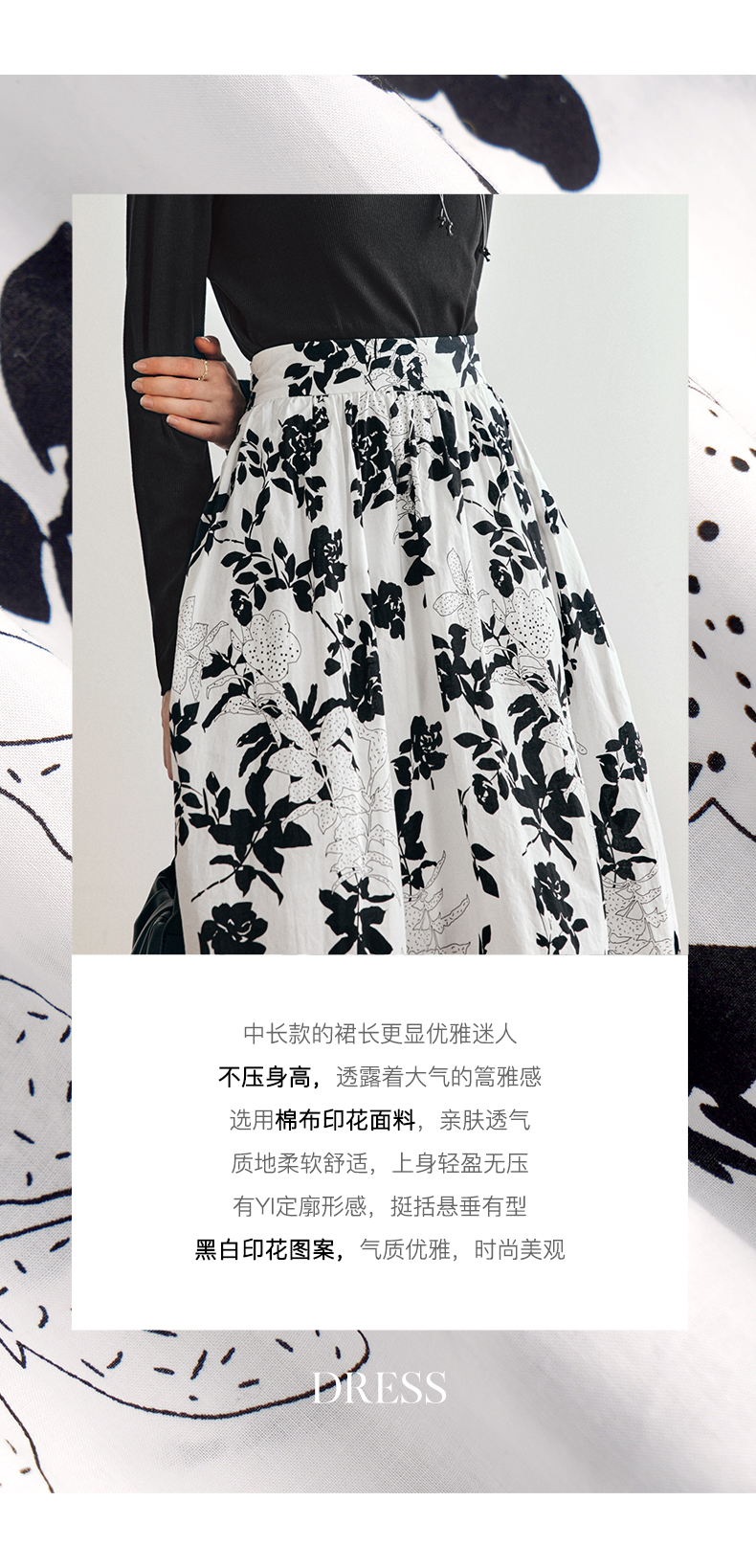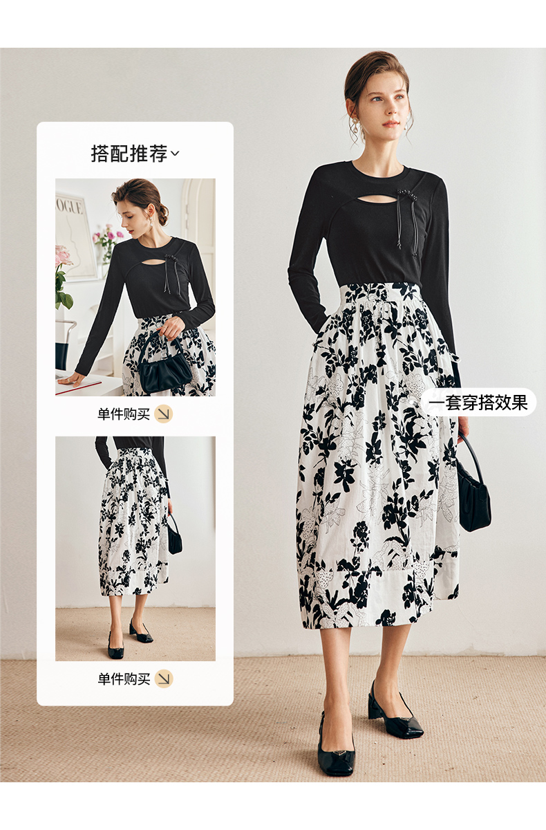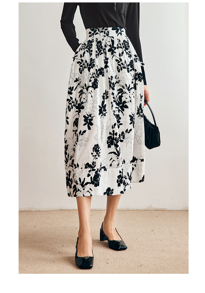 OLrain法式碎花半身裙女早秋2022年新款高级感高腰印花A字伞裙