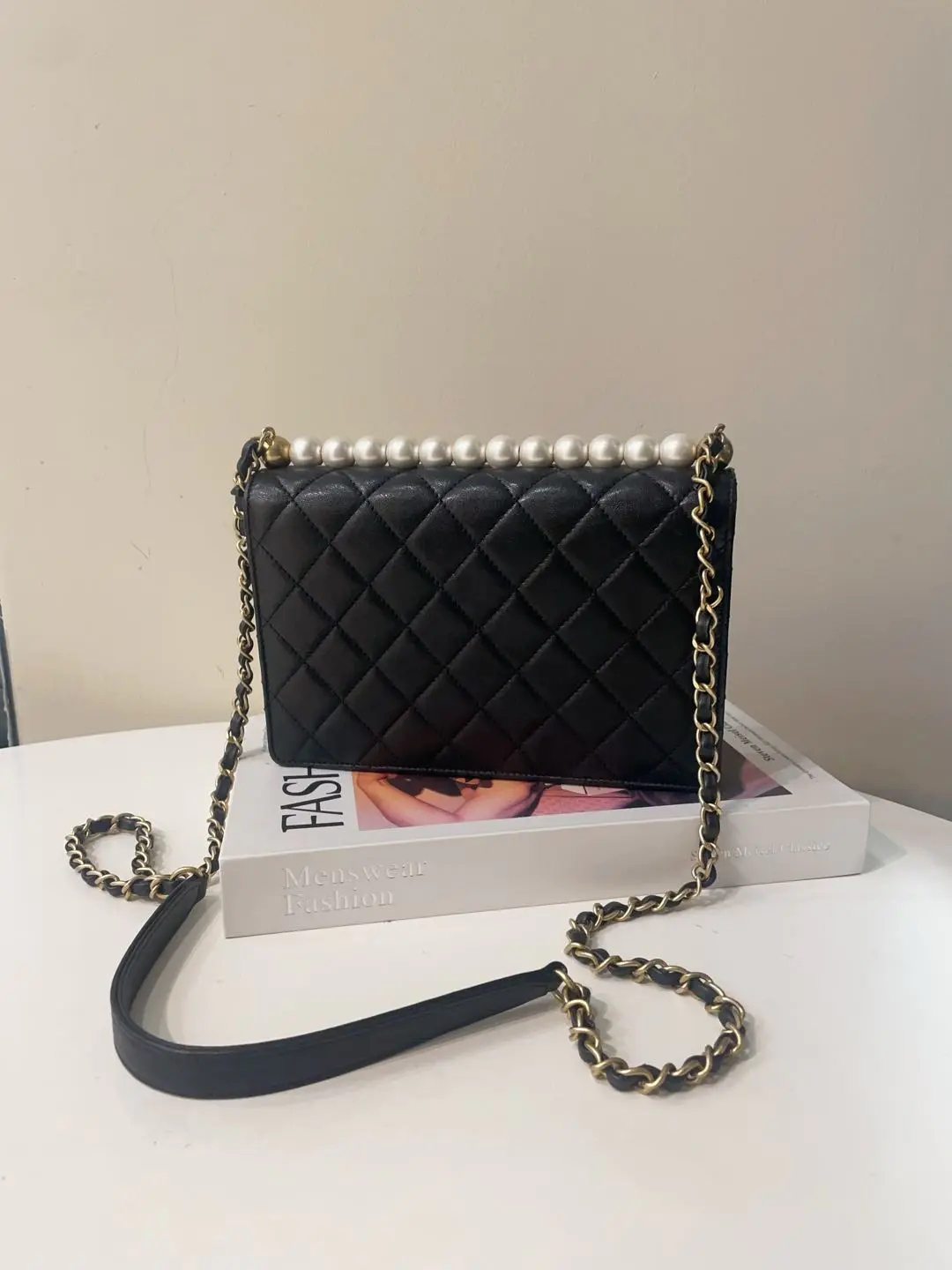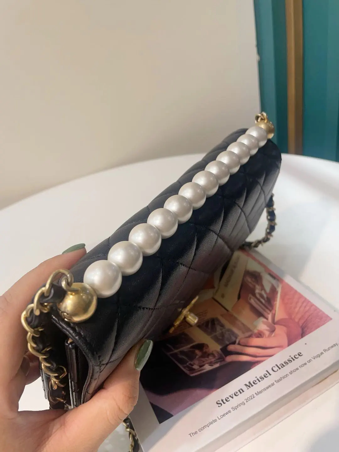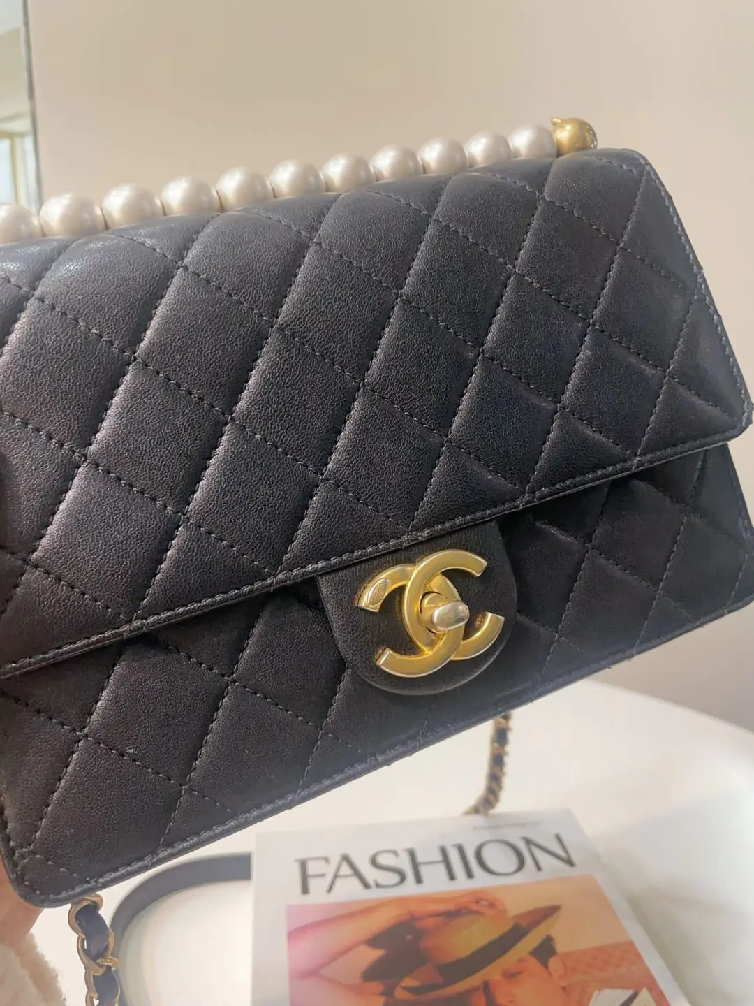 Chanel cf ss19 黑金 羊皮 限量 珍珠 豆腐包