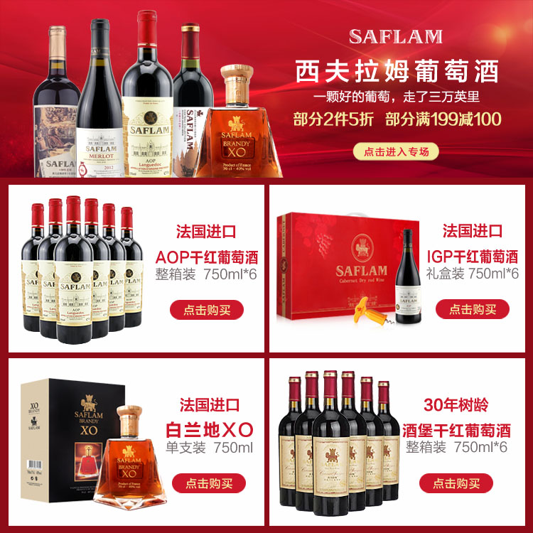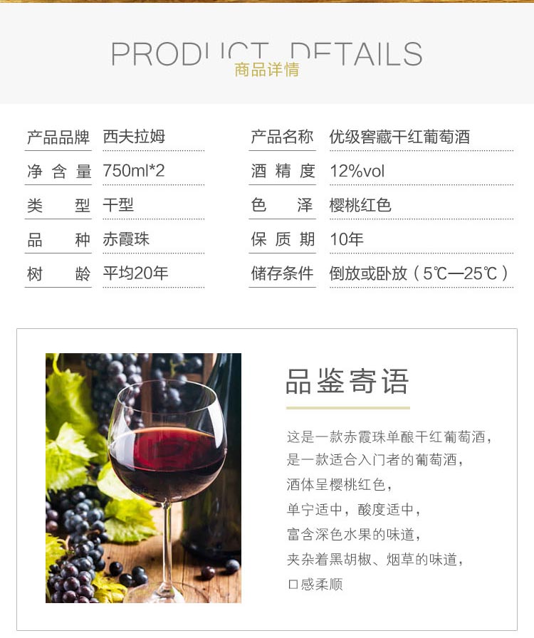 西夫拉姆红酒 优级窖藏赤霞珠 干红葡萄酒 750ml*2瓶 双支装