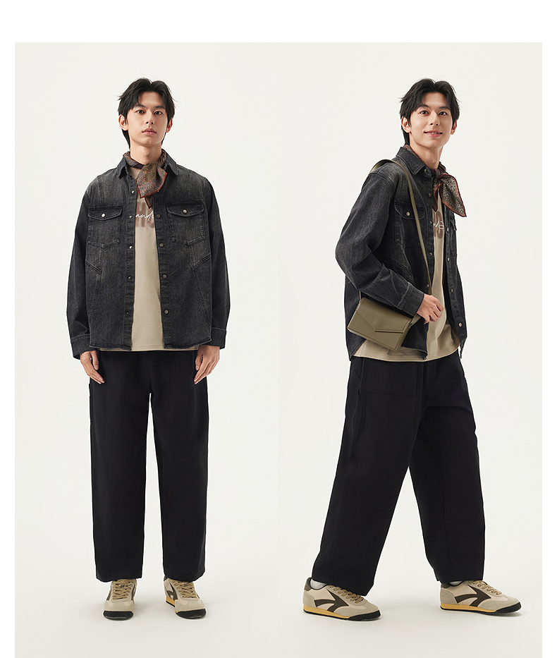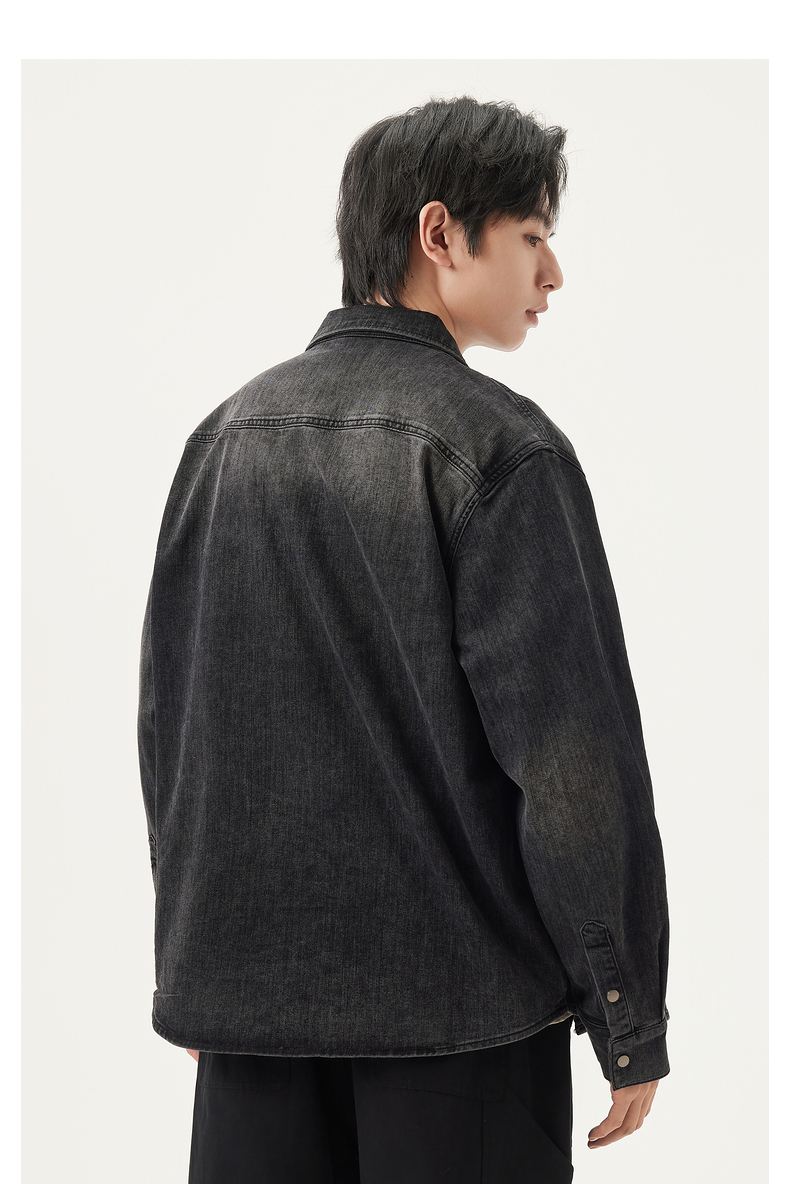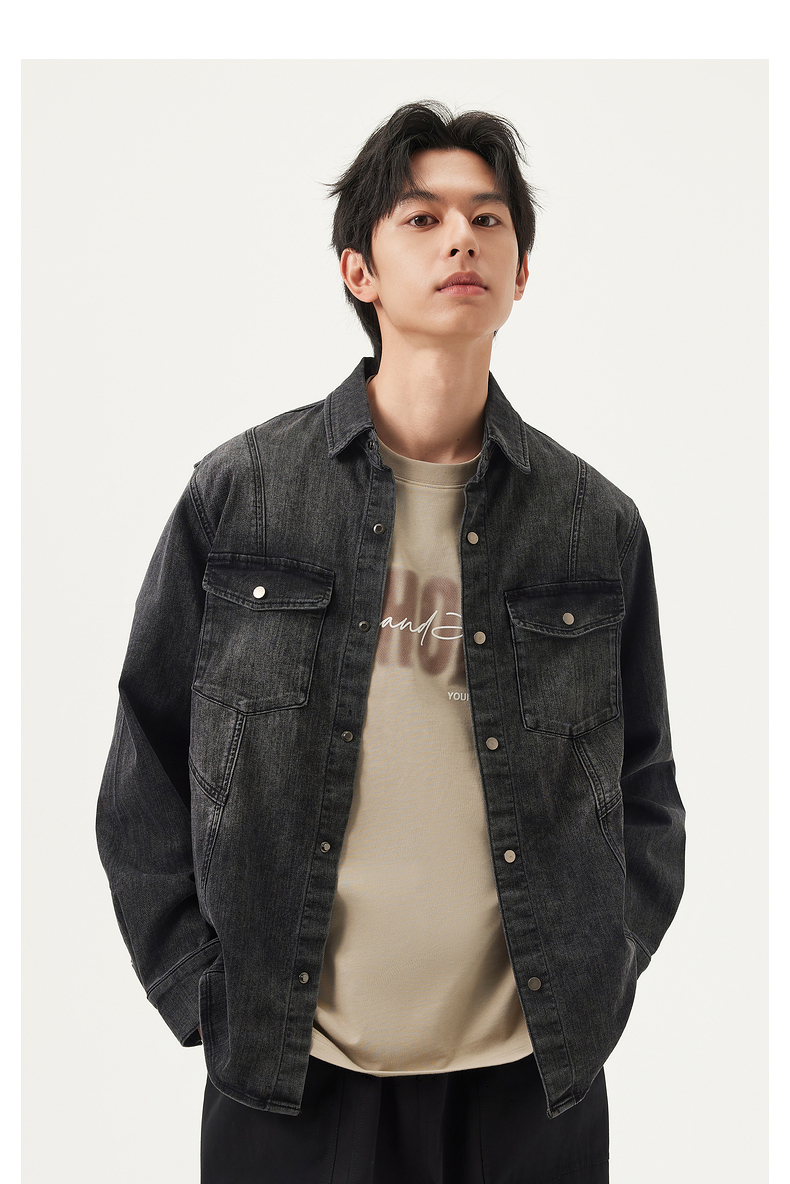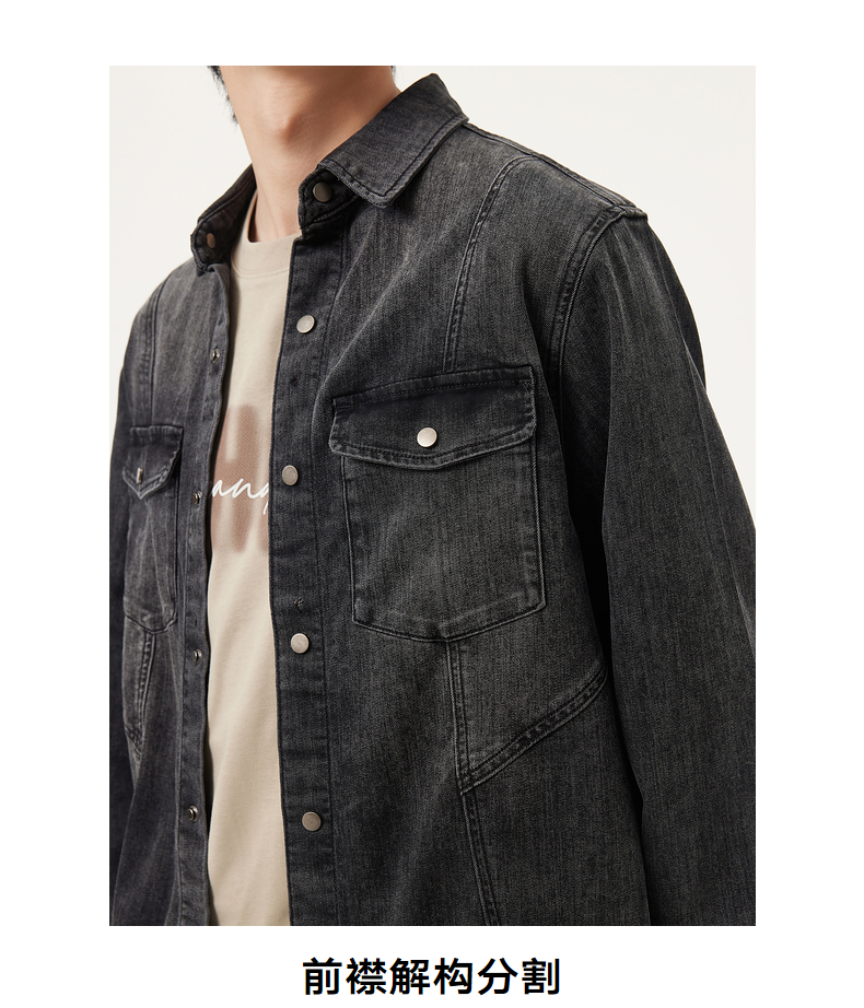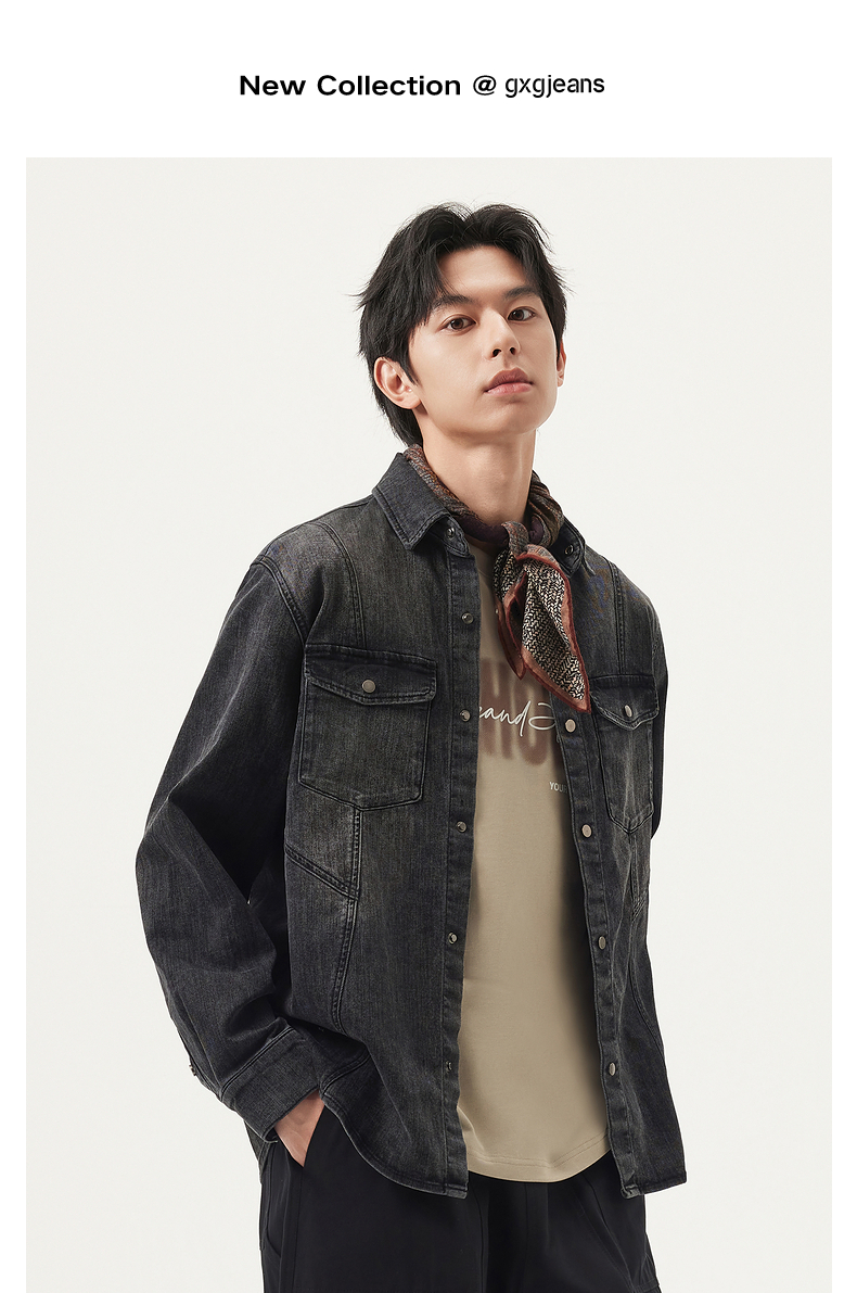 gxg.jeans男装 黑色分割设计时尚水洗翻领牛仔夹克外套男25春热卖