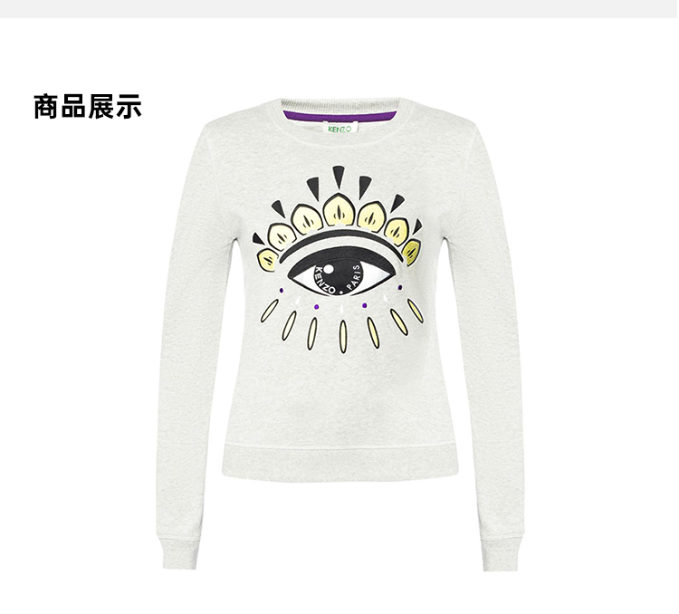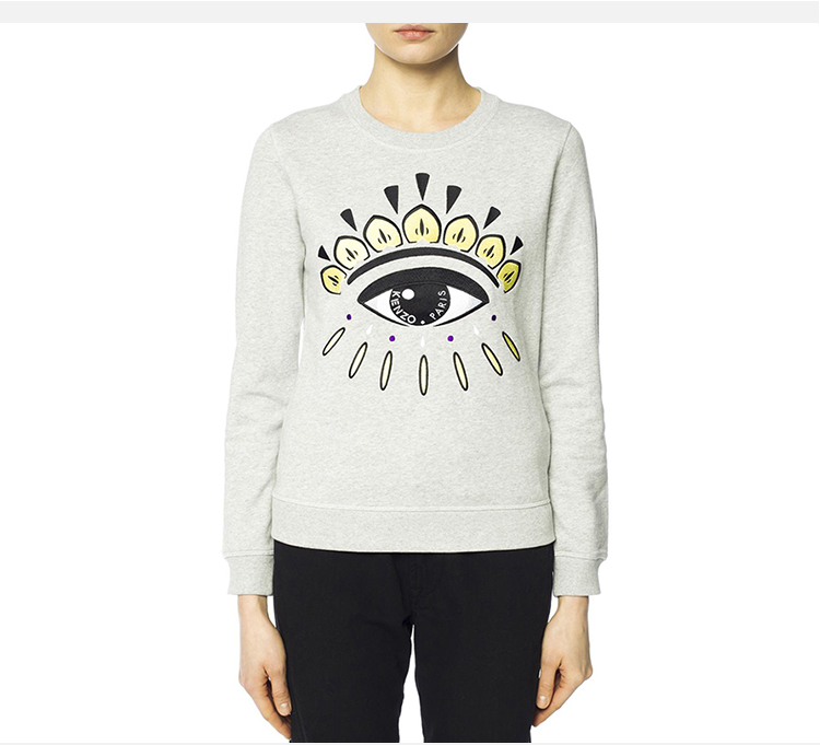 KENZO 高田贤三 女士棉质刺绣眼睛图案圆领长袖卫衣 灰色 F852 SW710 4XI 93