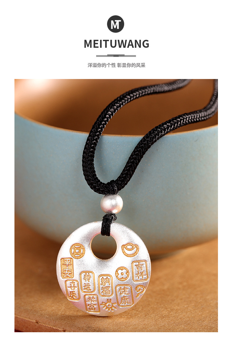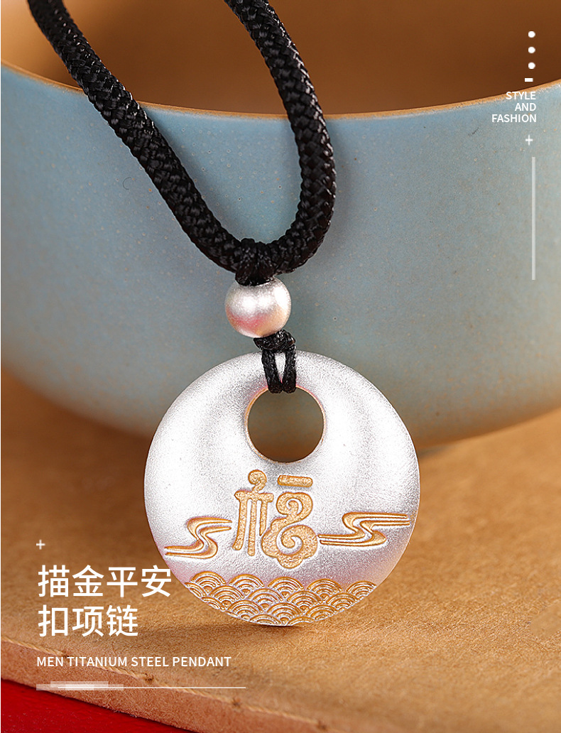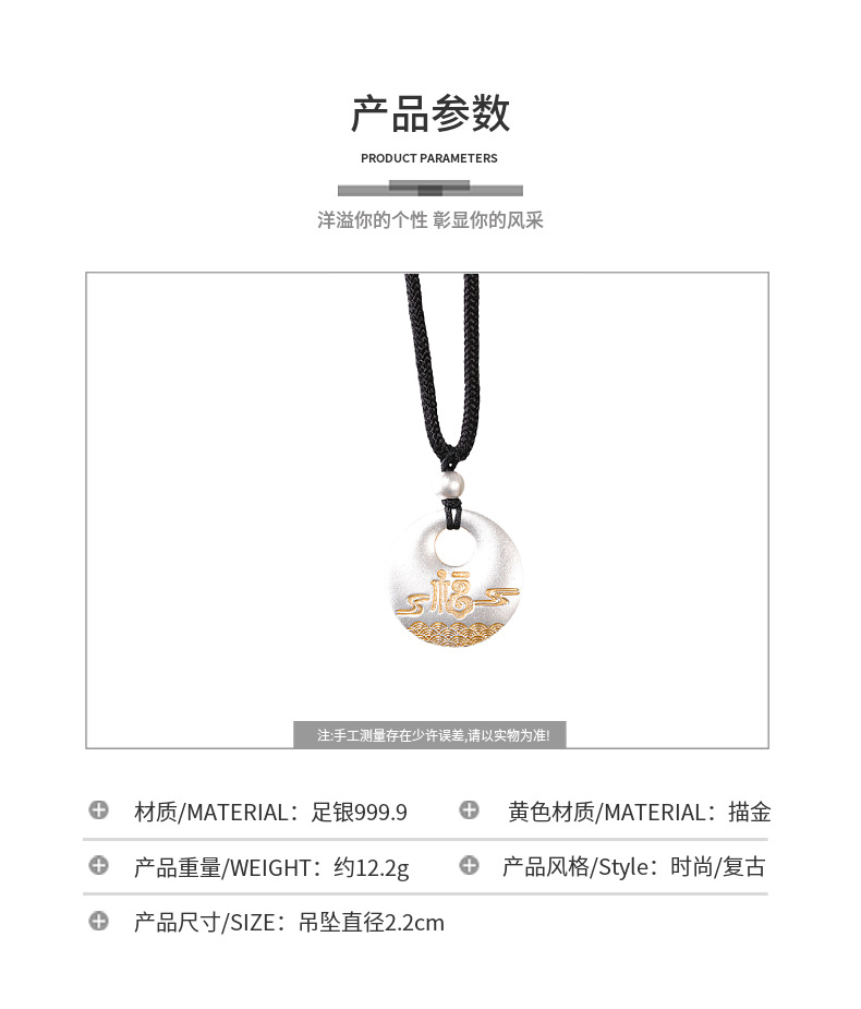 【福生缘起】足银描金平安扣福字吊坠【RP-DZ390007】
