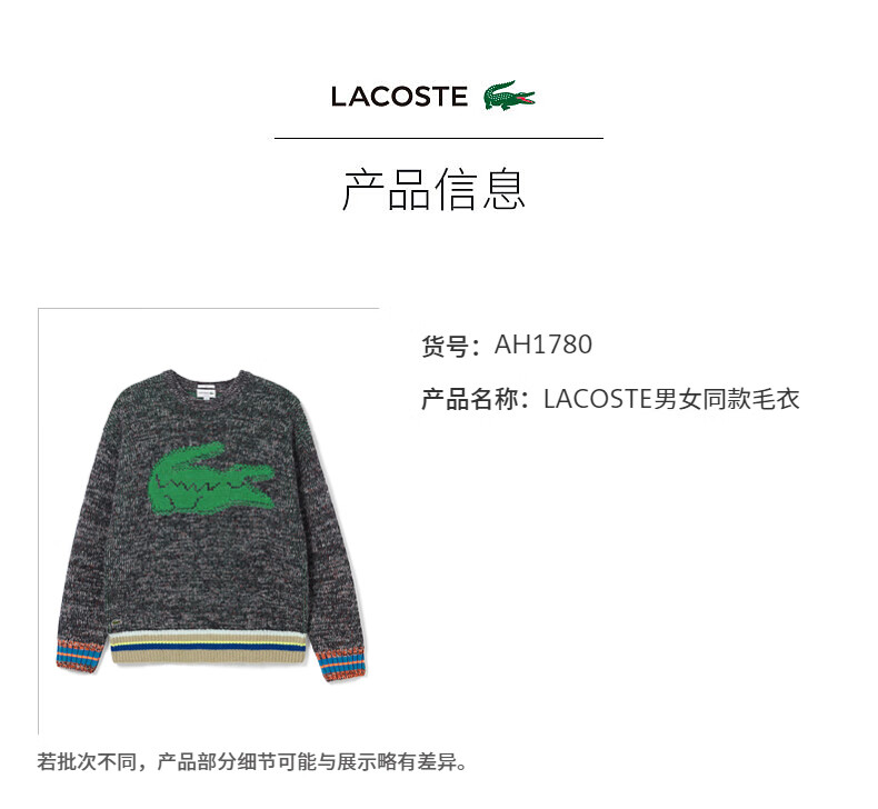 Lacoste法国鳄鱼男女同款新款文艺风卡通针织毛衣AH1780-10