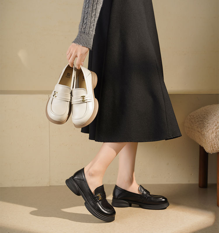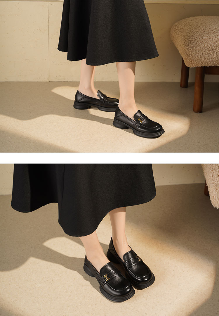 西村名物2025年秋季新款秀气掐腰粗跟百搭乐福鞋舒适深口女单T25CM31721