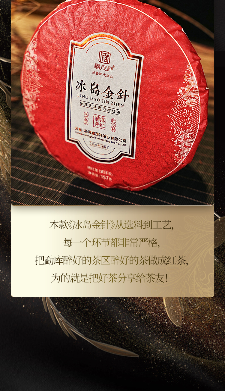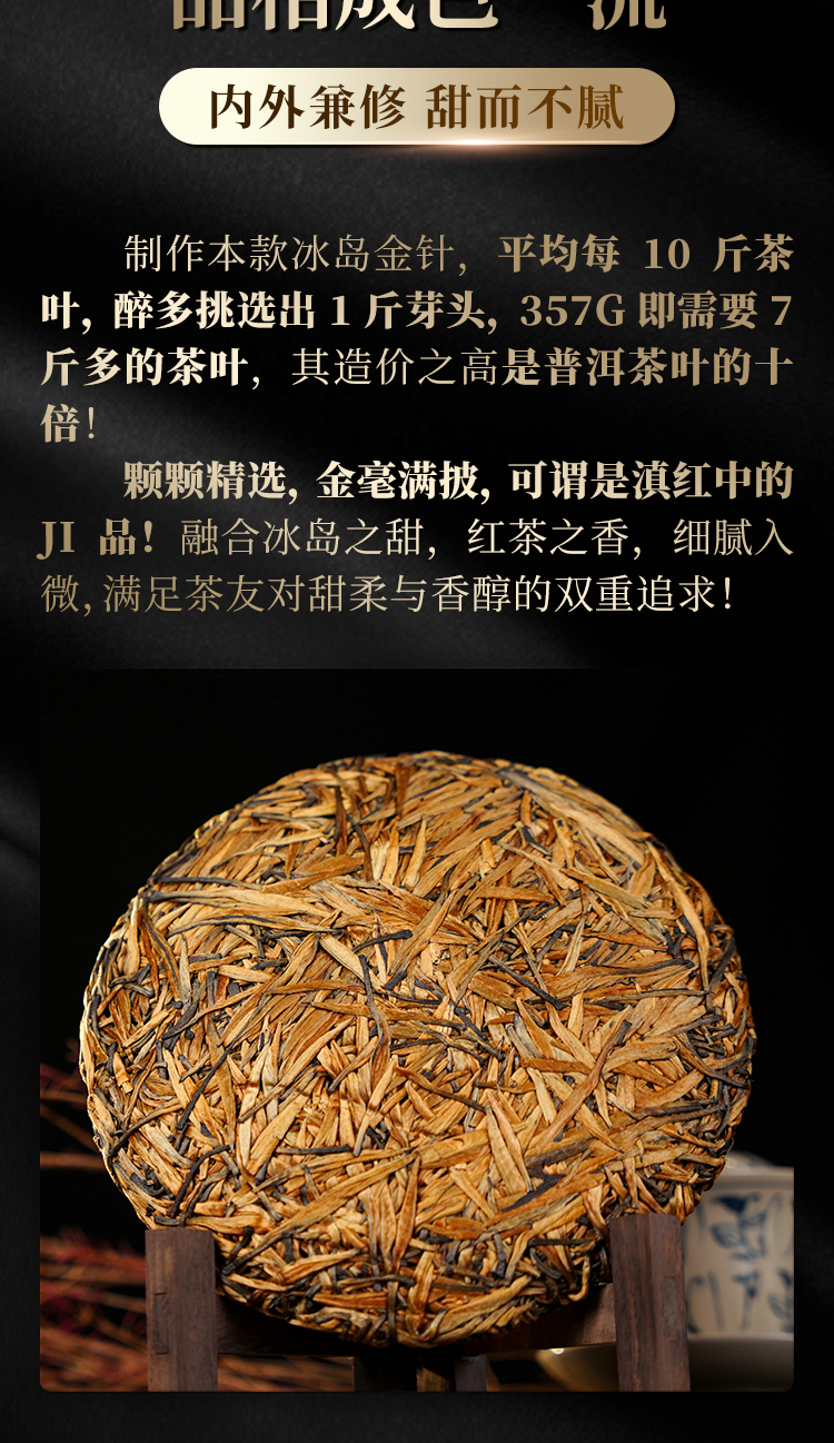 积分兑换【冰岛金针】全芽头冰岛古树红茶 体验茶树顶端单芽独特味蕾体验 2024年春茶云南临沧茶区300年冰岛古树滇红茶饼357g
