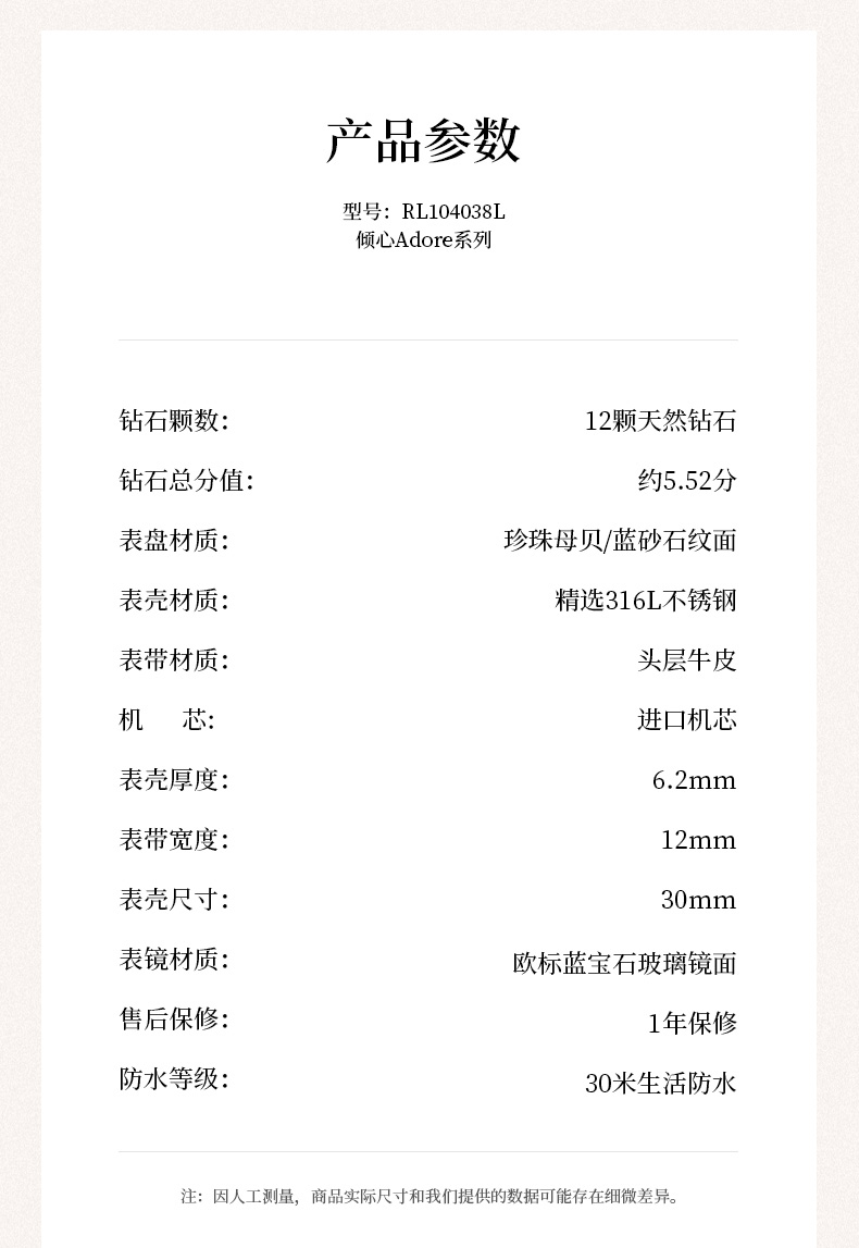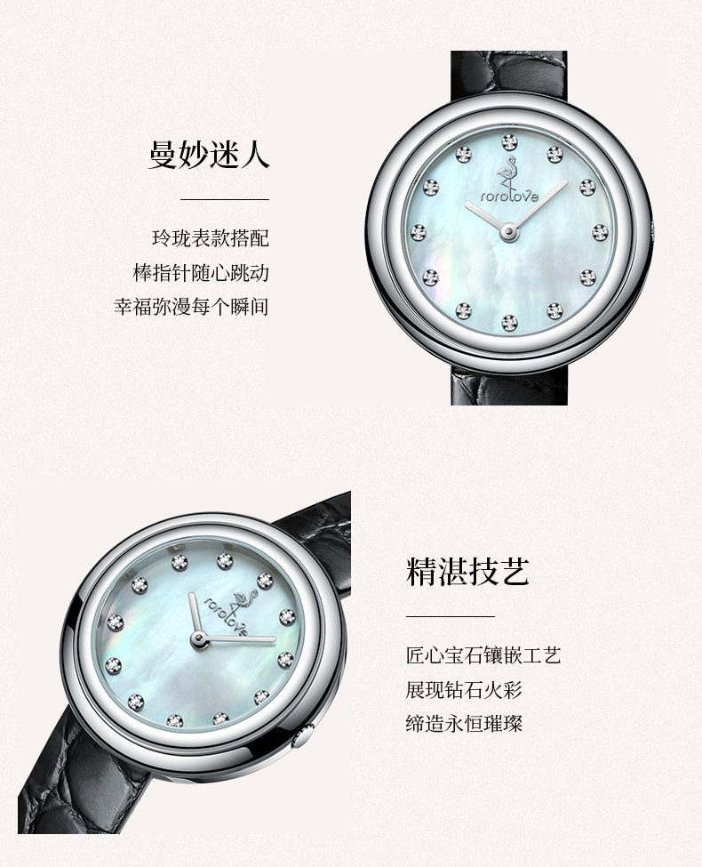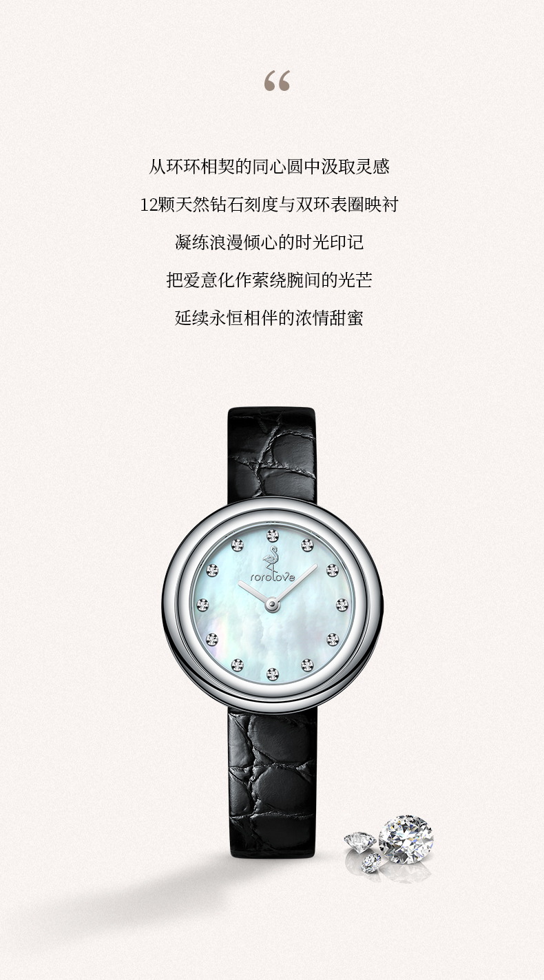 【ROROLOVE】邂逅Enchanted系列 天然钻石腕表 精钢钻石手表(12颗钻石)