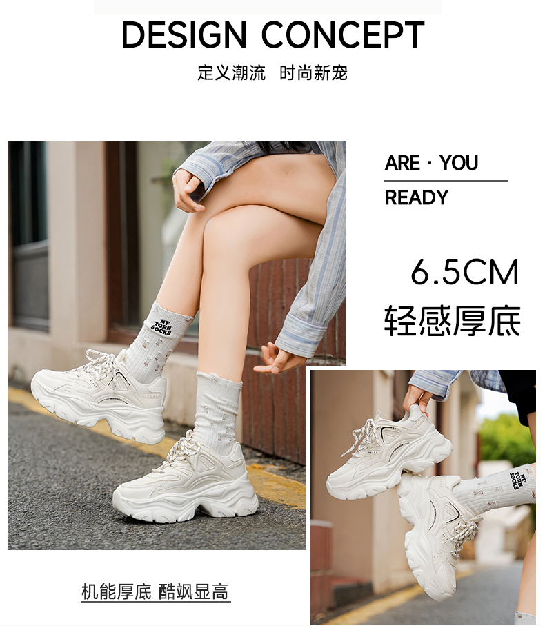 回力女鞋2025秋季新款轻厚底增高老爹鞋女百搭休闲运动鞋透气鞋子