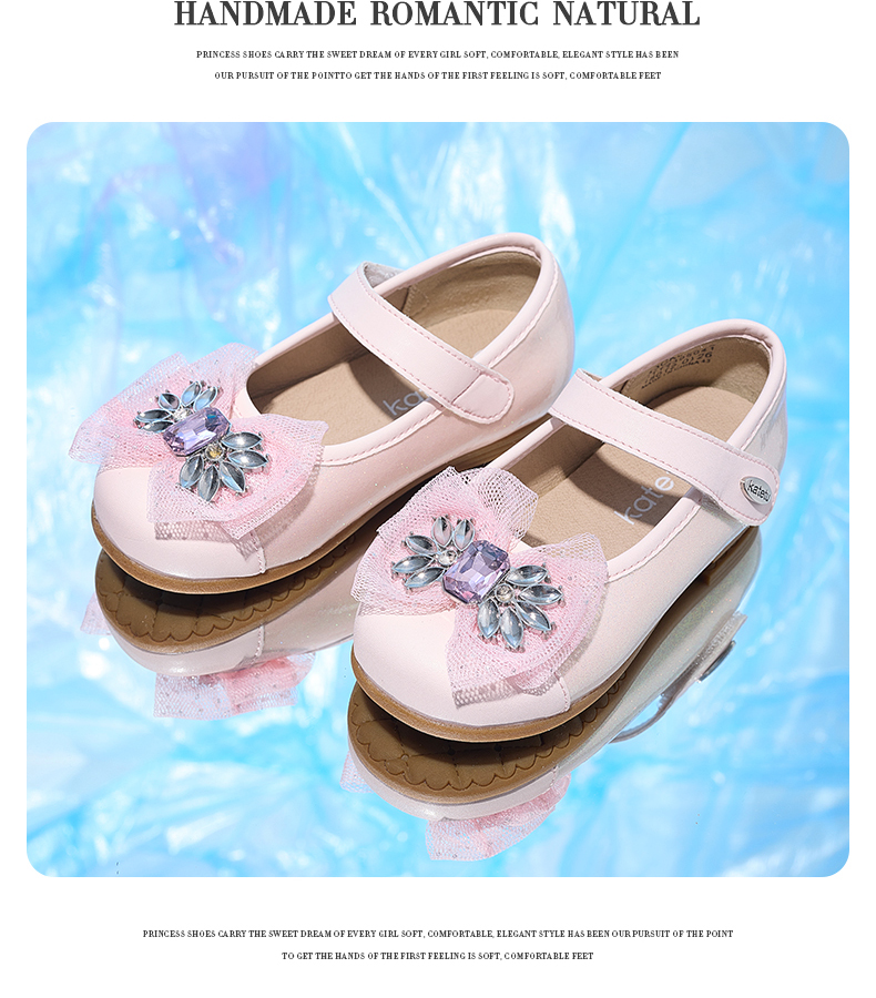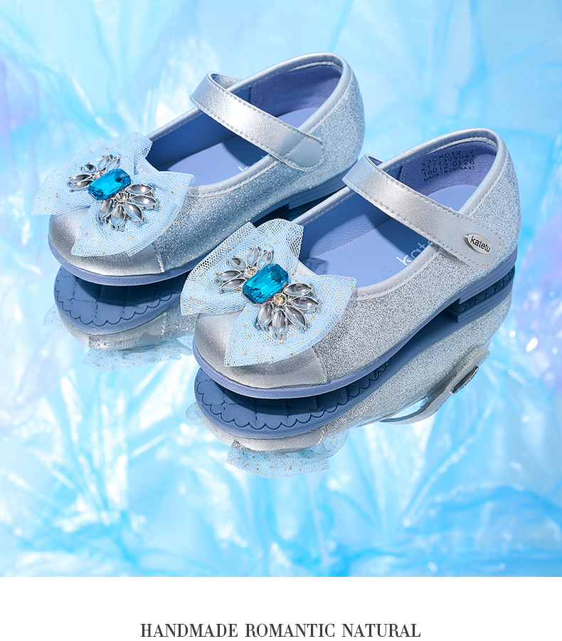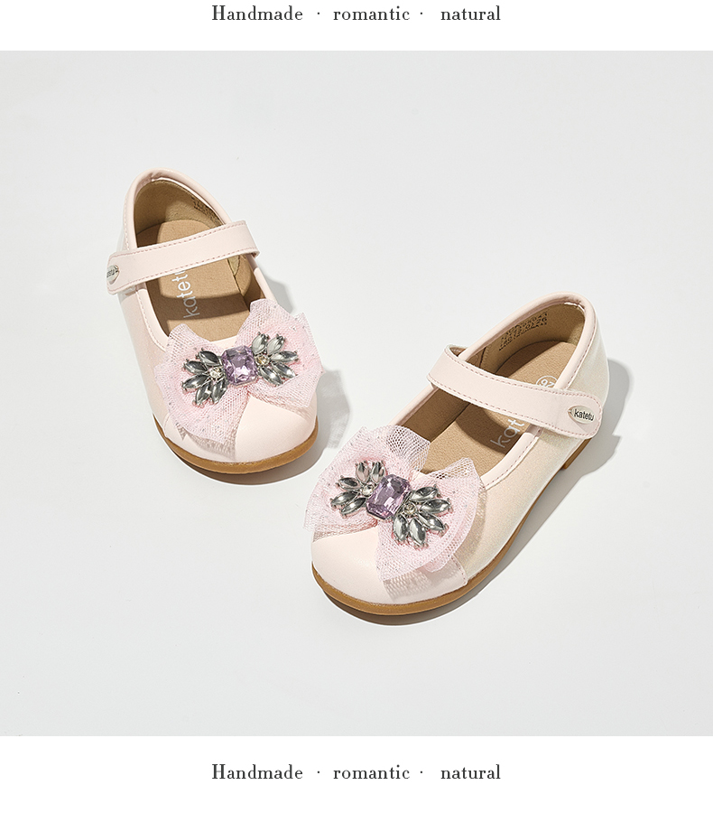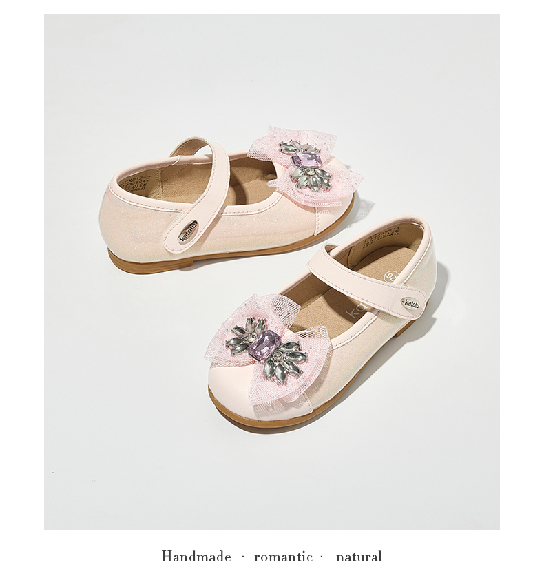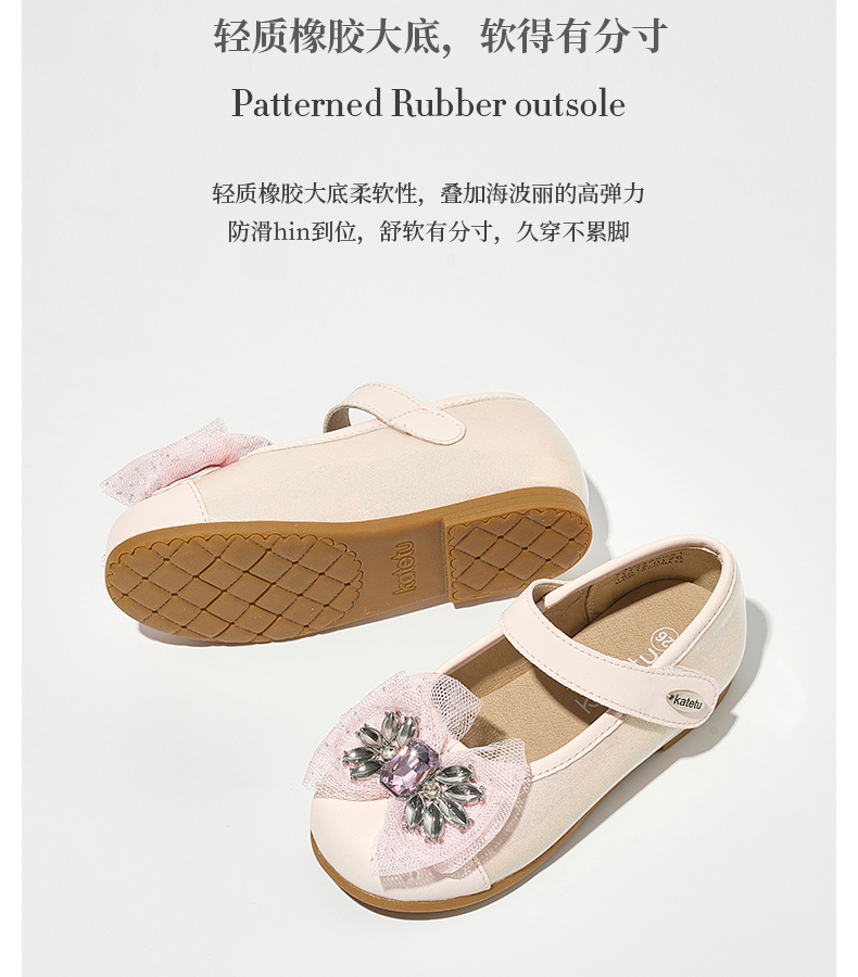 卡特兔女童公主鞋礼服水晶鞋2023秋季新款演出鞋软底防滑小皮鞋