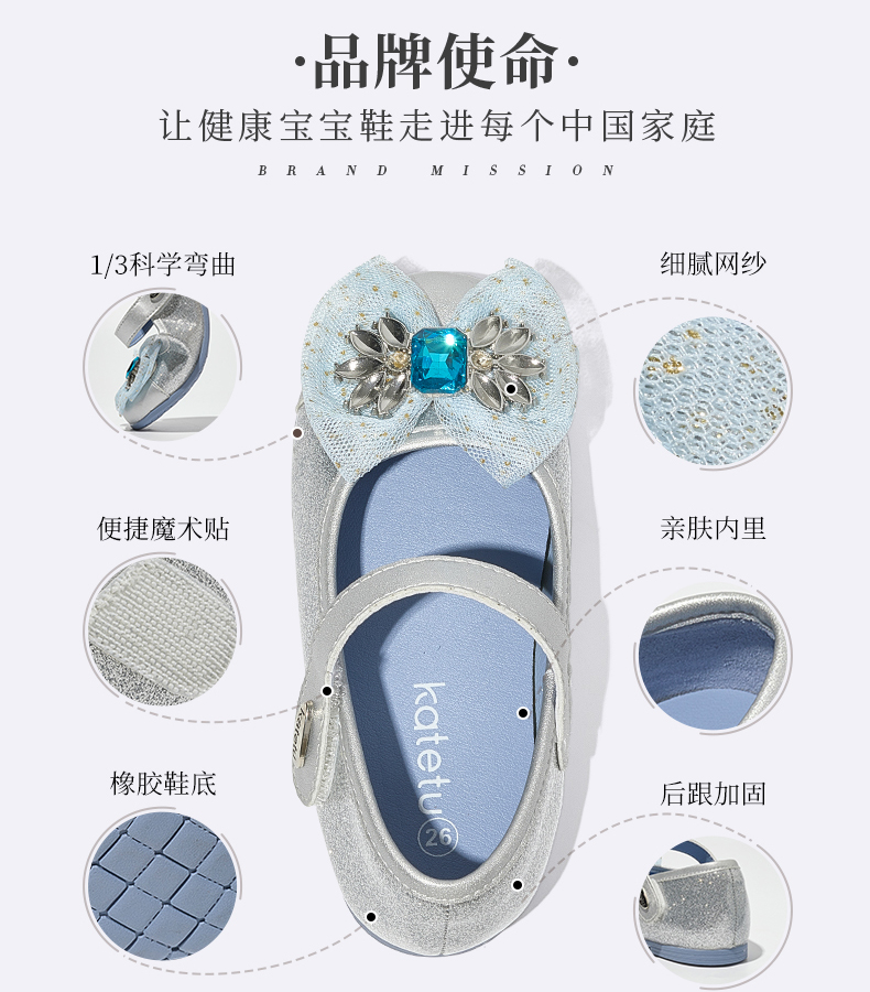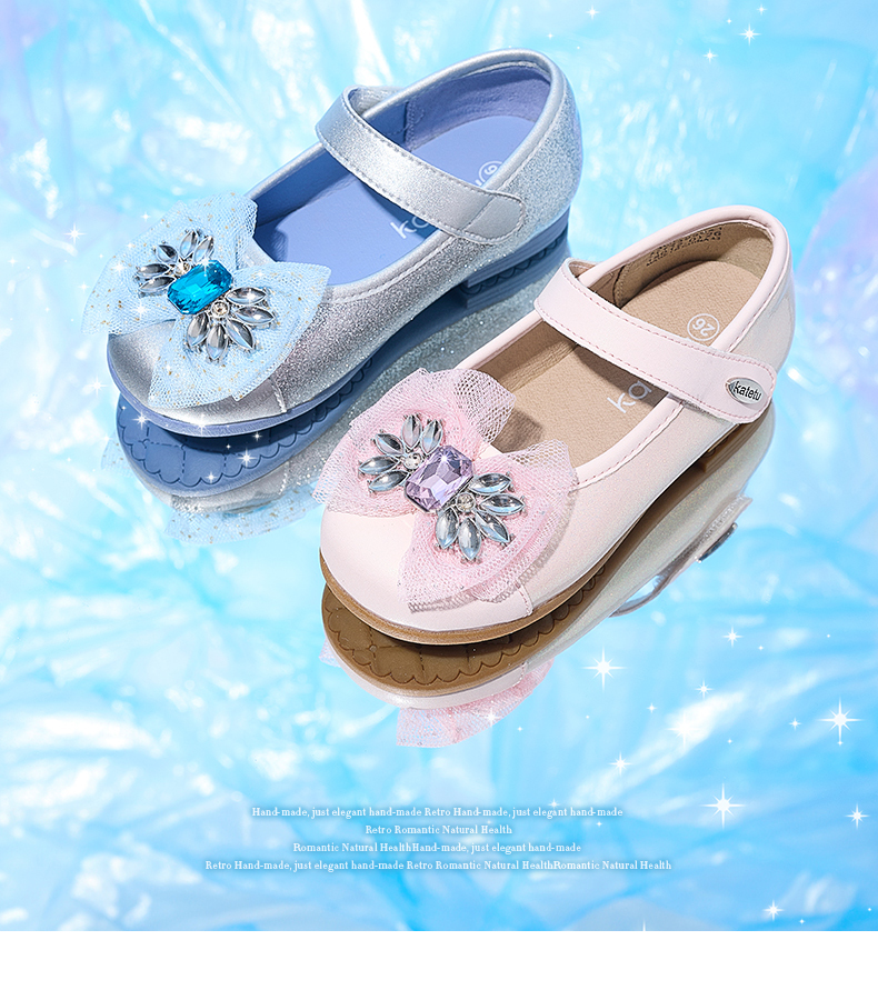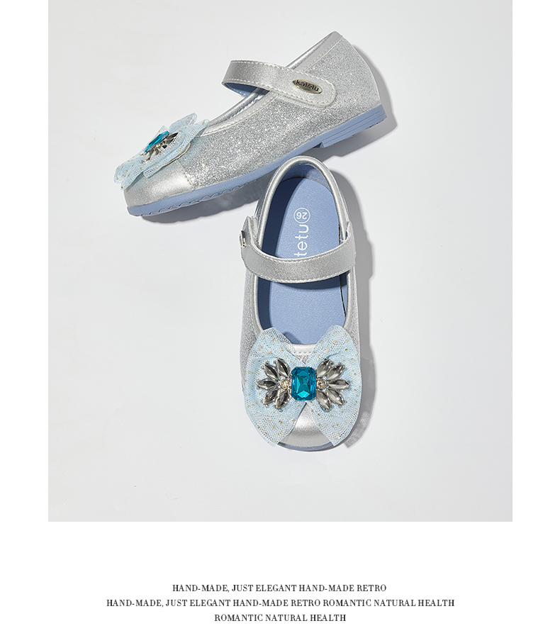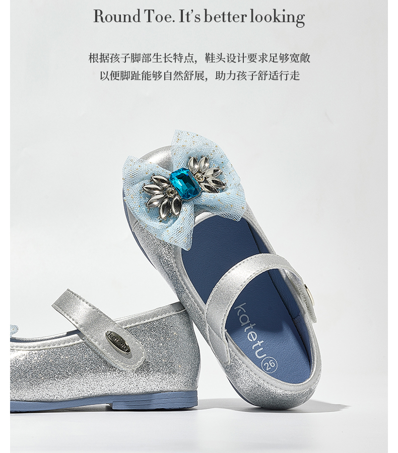 卡特兔女童公主鞋礼服水晶鞋2023秋季新款演出鞋软底防滑小皮鞋