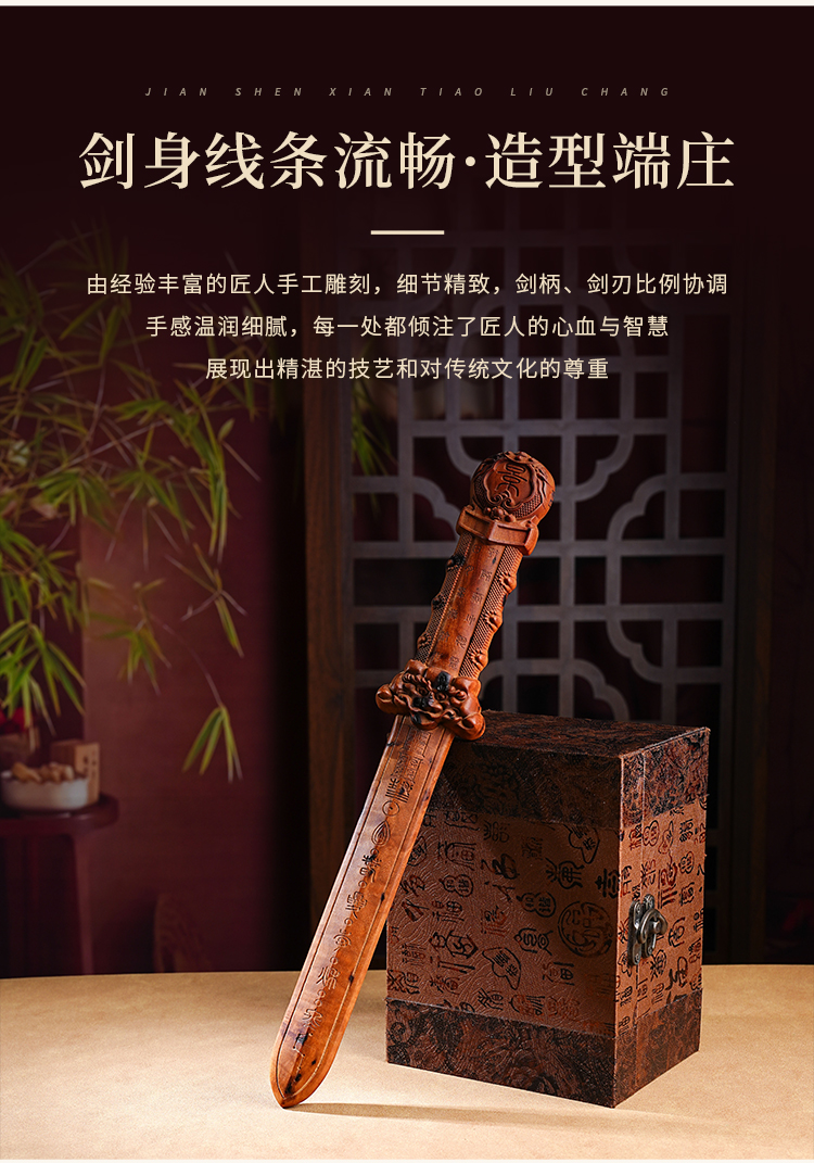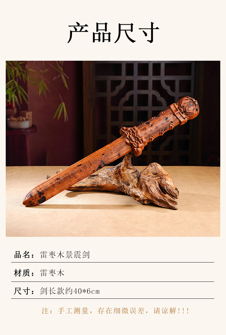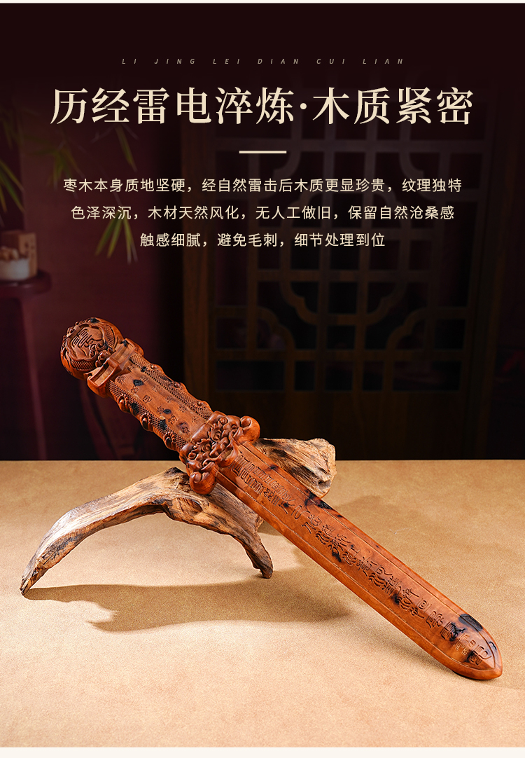 雷枣木创意景震剑摆件文创手把件客厅摆放工艺品文玩送礼