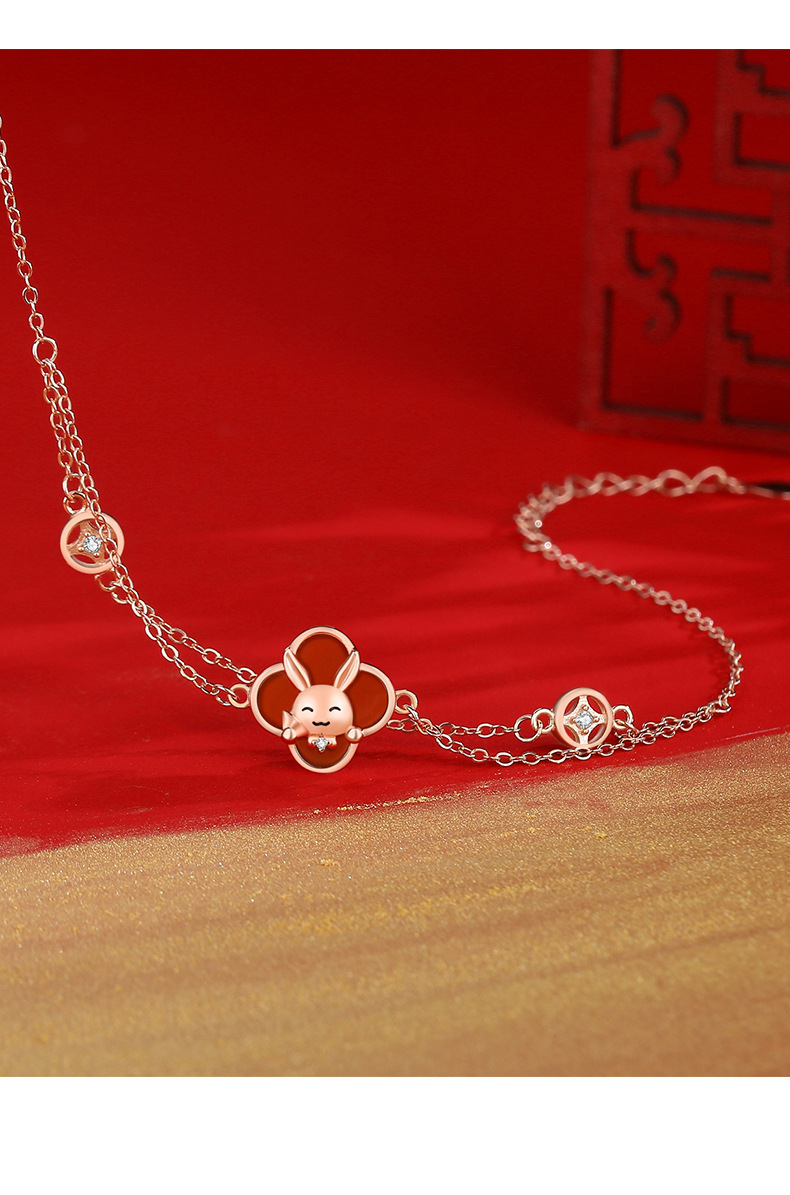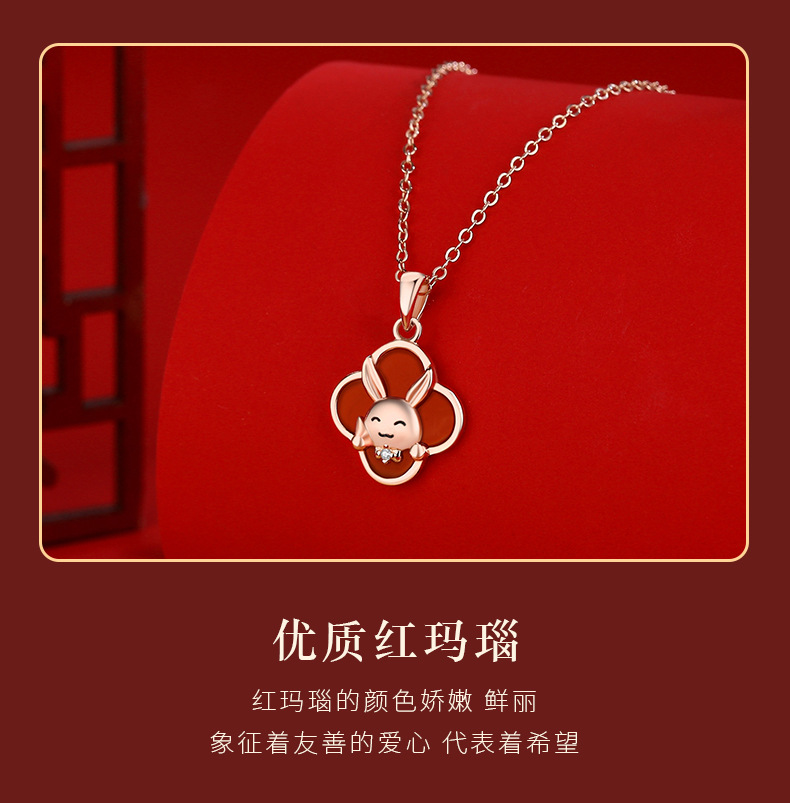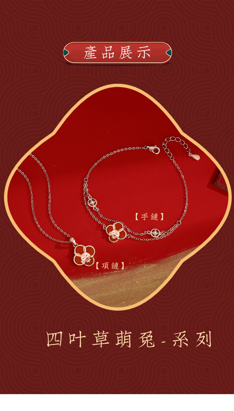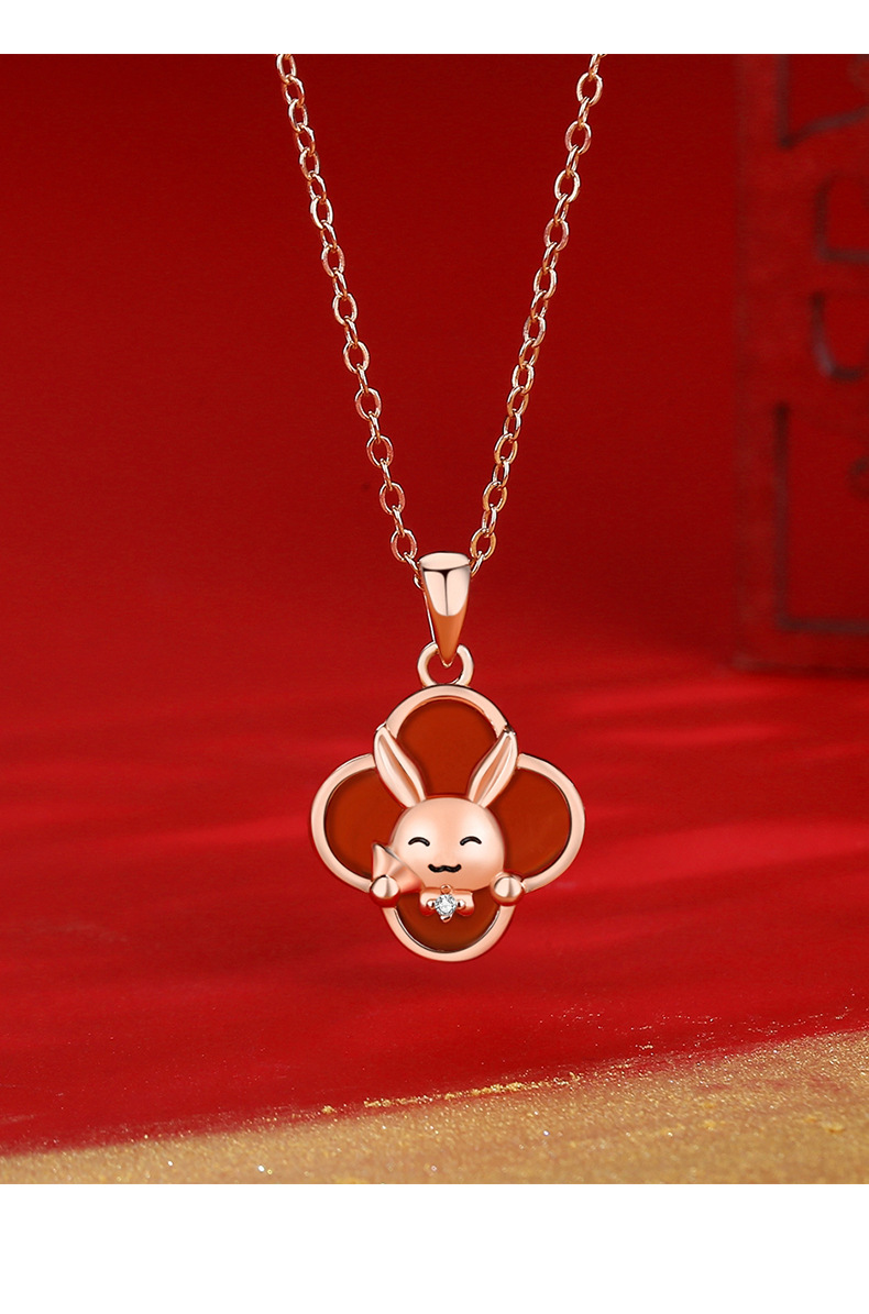 【授权商品】BOMURNNY/宝慕尼 S925纯银四叶草萌兔兔子兔年限定项链