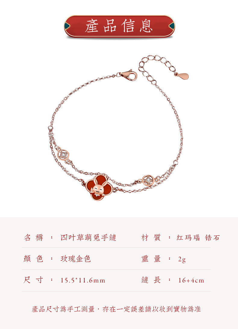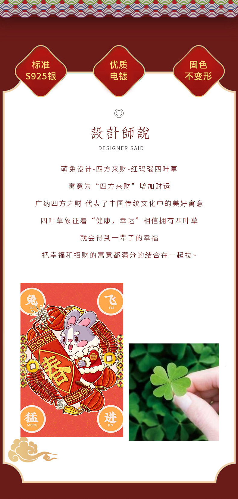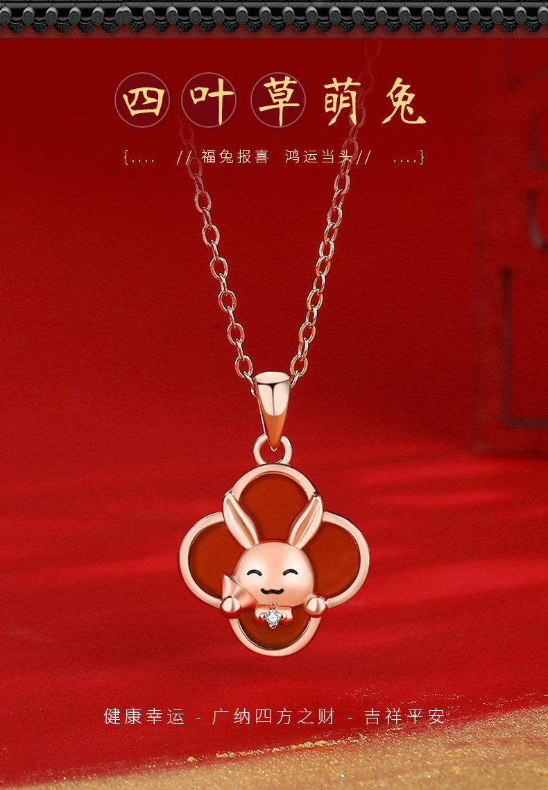 【授权商品】BOMURNNY/宝慕尼 S925纯银四叶草萌兔兔子兔年限定项链
