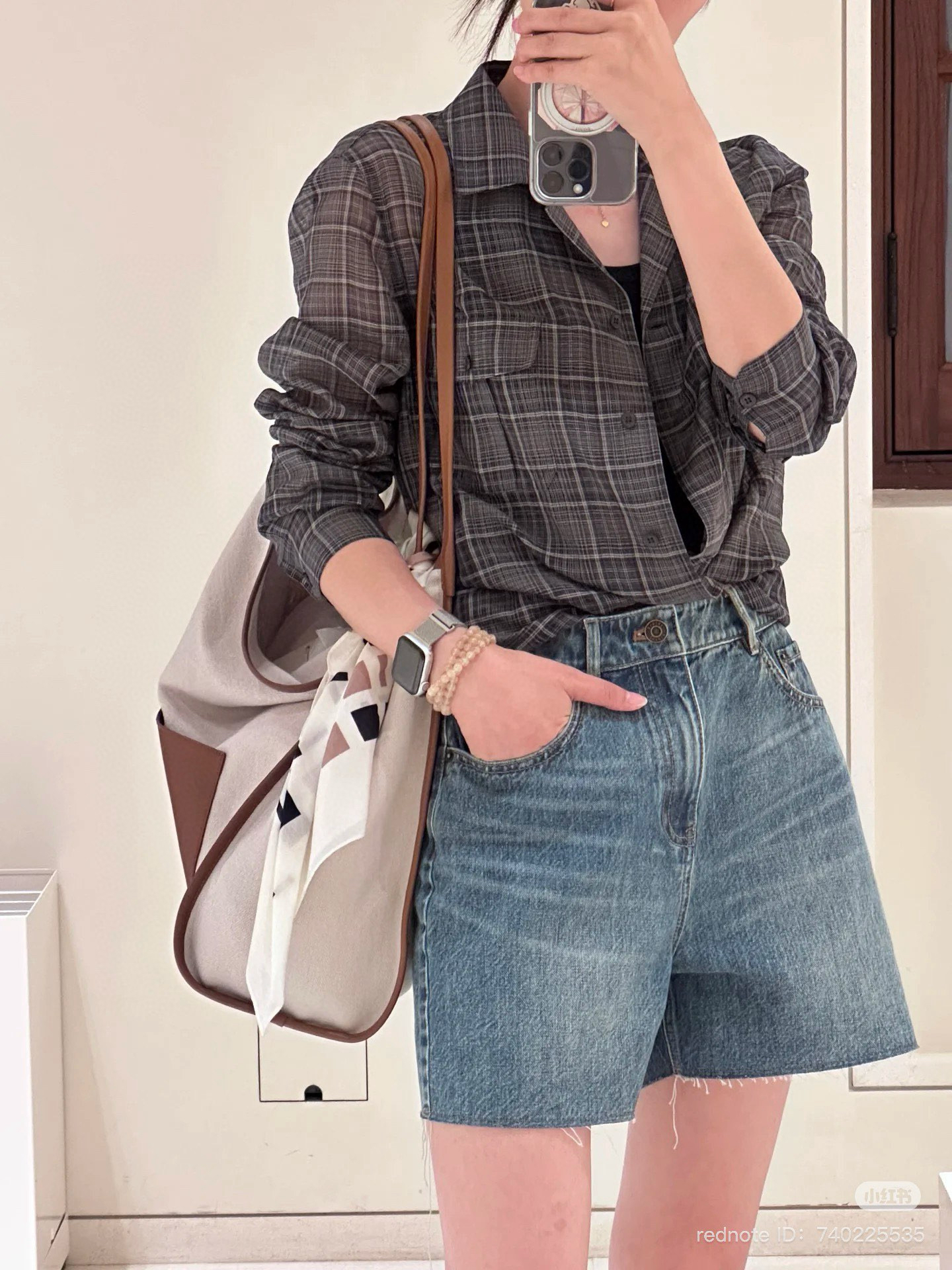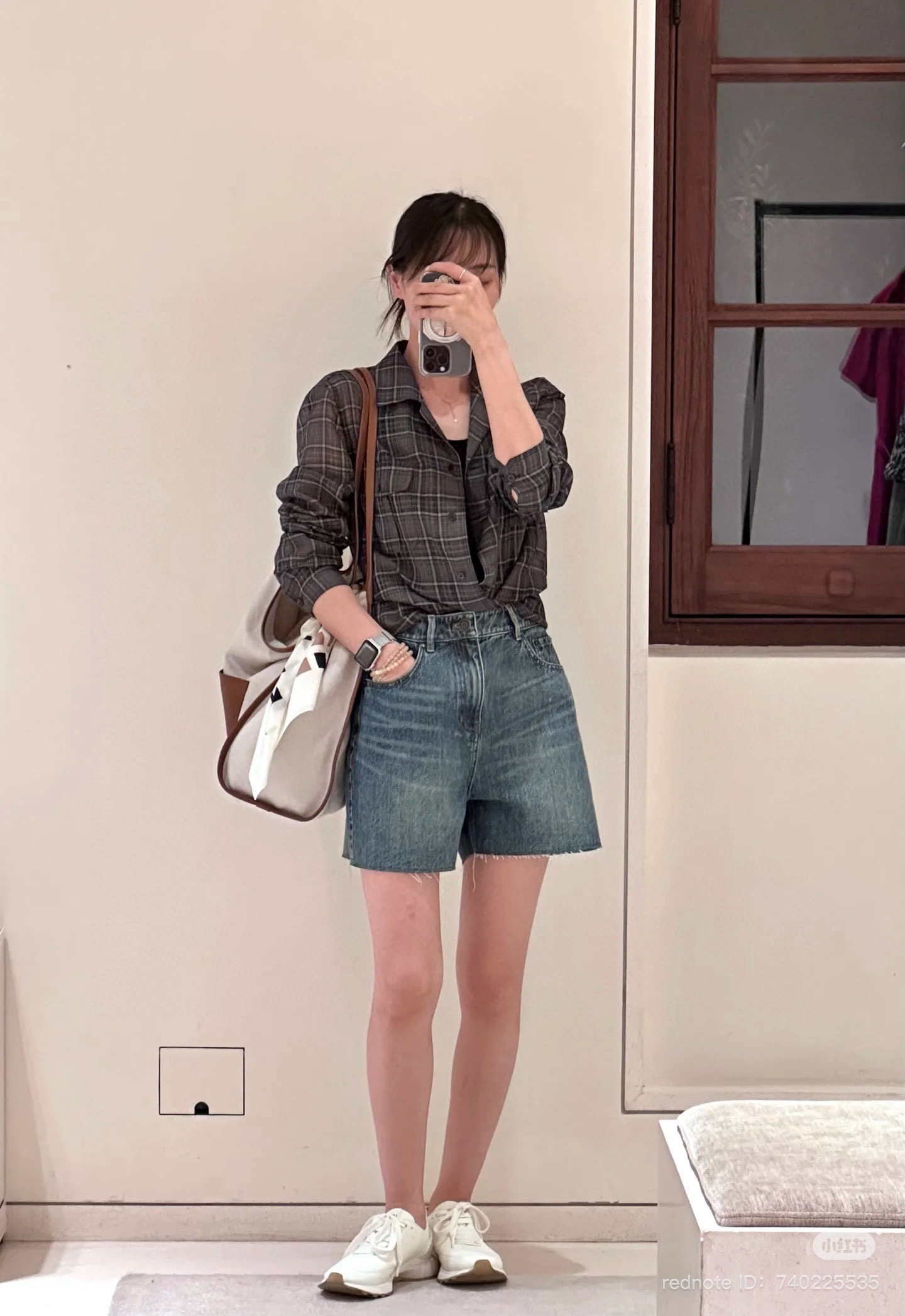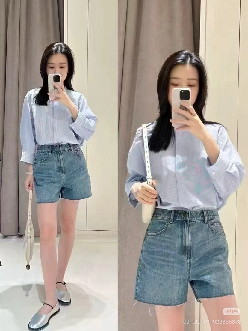 蓝色亚麻上衣短袖,藏青色修身不紧绷的牛仔短裤,欧洲进口环保种植牛仔,修饰身材效果一级棒,显身高显腿长[爱心][爱心][爱心]