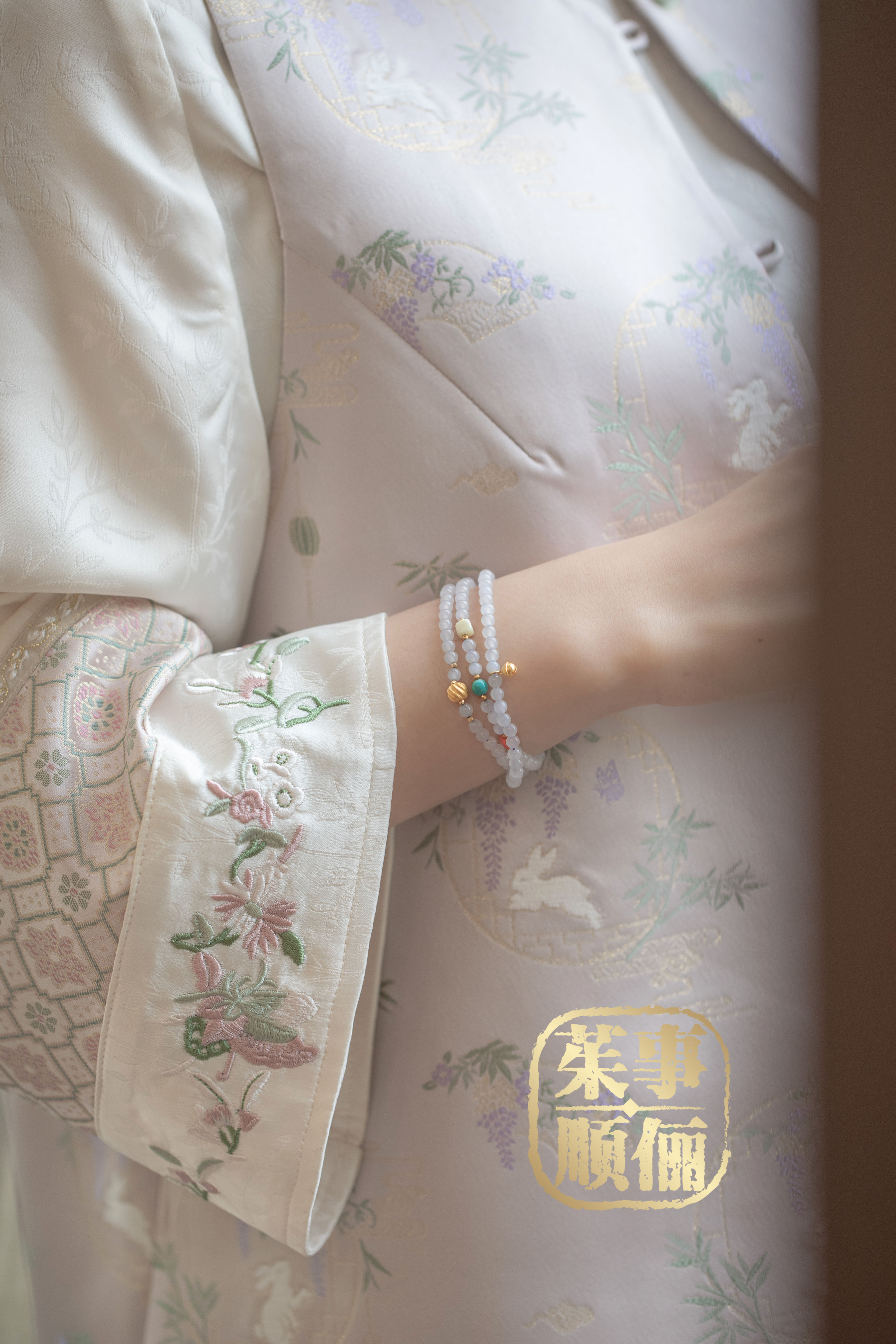【茱事顺俪 18K黄金和田玉毛衣链、手链两用款】