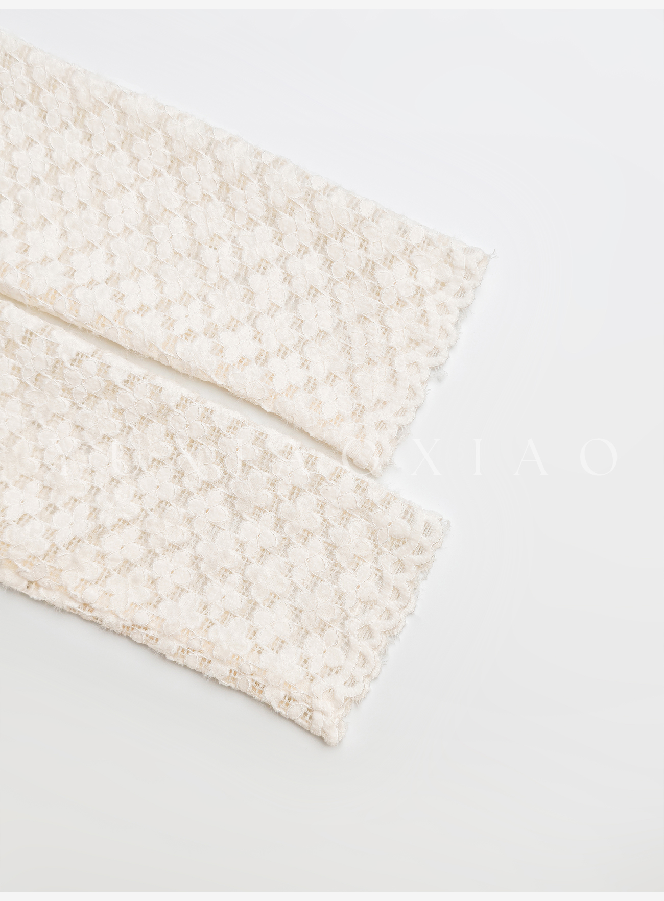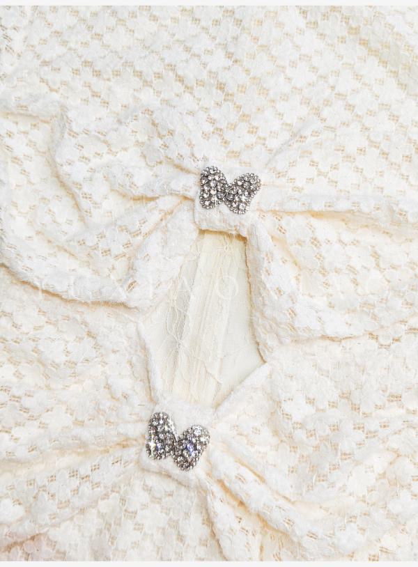 余潇潇【女神降临】气质四叶草花型蕾丝设计感蝴蝶结圆领修身连衣裙