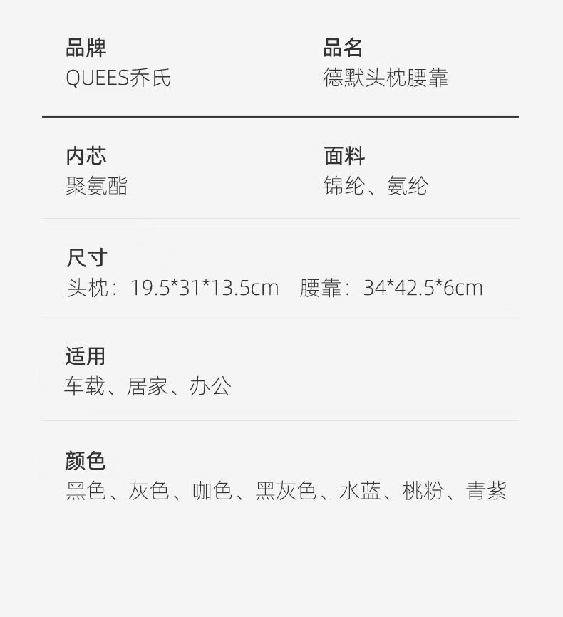 乔氏汽车护颈枕头枕车用记忆棉靠垫四季车载座椅腰靠背垫枕头套装
