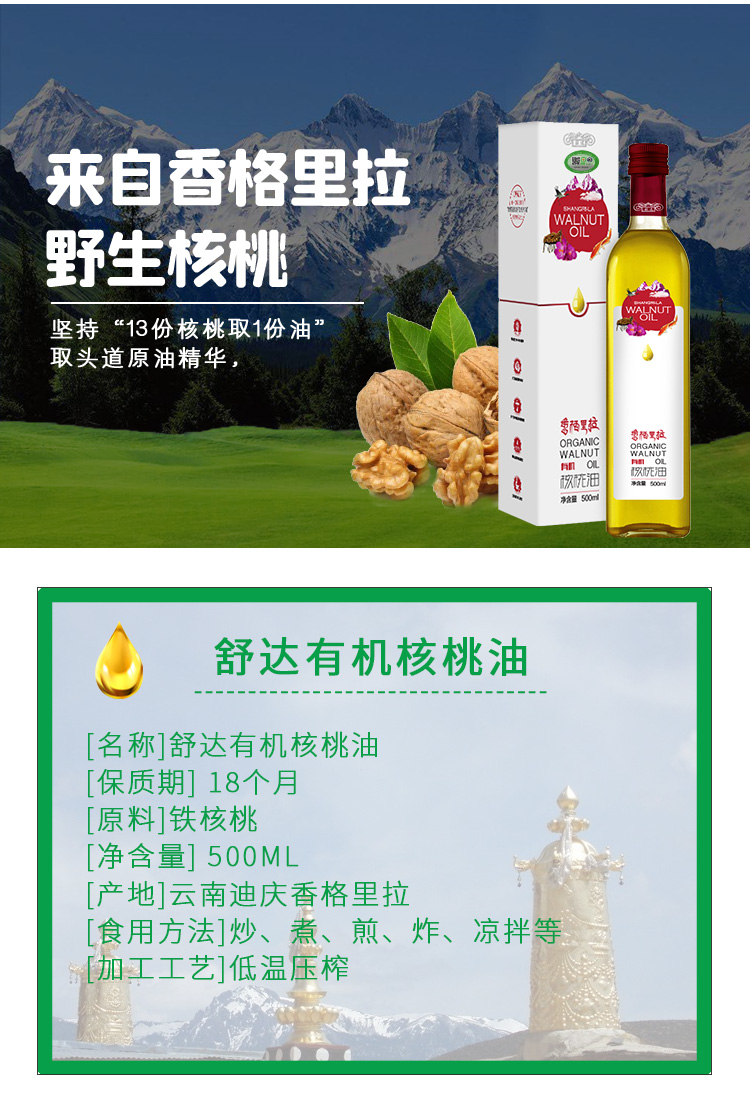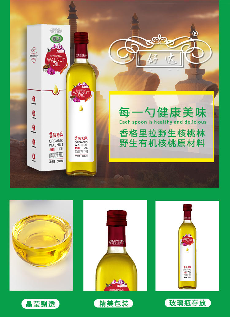 舒达有机核桃油500ML