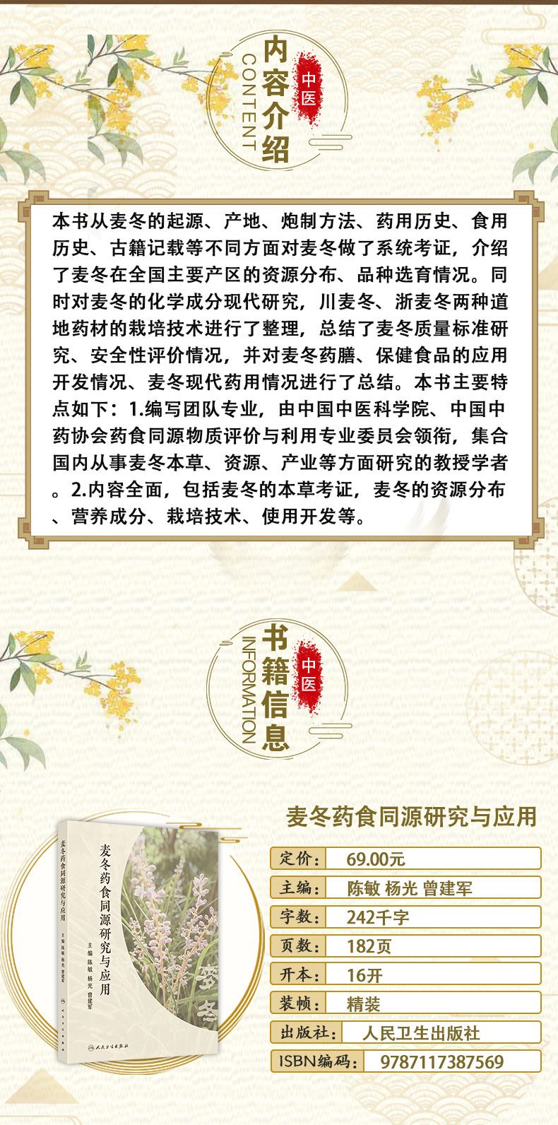 麦冬药食同源研究与应用 陈敏 杨光 曾建军 介绍了麦冬在全国主要产区的资源分布、品种选育情况 9787117387569 人民卫生出版社
