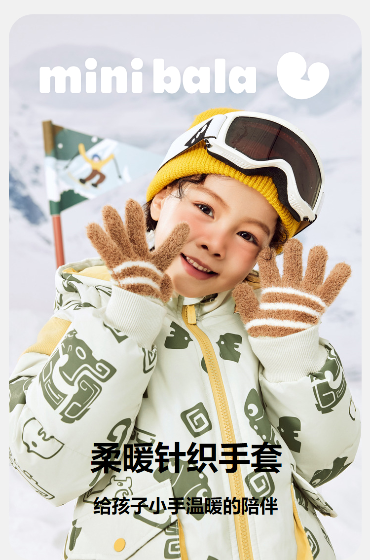 迷你巴拉冬季新款男女童厚实毛线手套宝宝百搭保暖手套