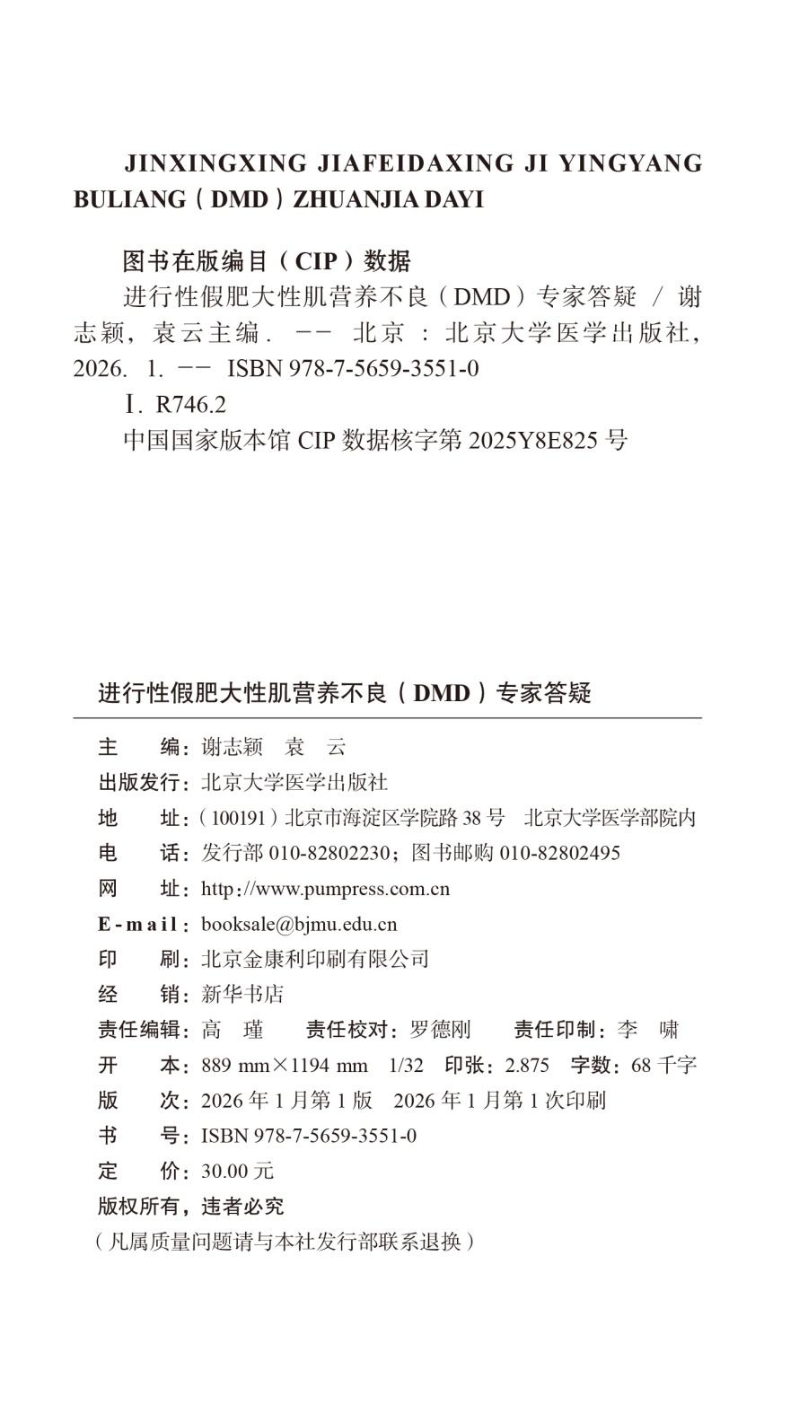进行性假肥大性肌营养不良(DMD)专家答疑 谢志颖 围绕假肥大型肌营养不良的全程管理 集中解答150个相关问题 北京大学医学出版社