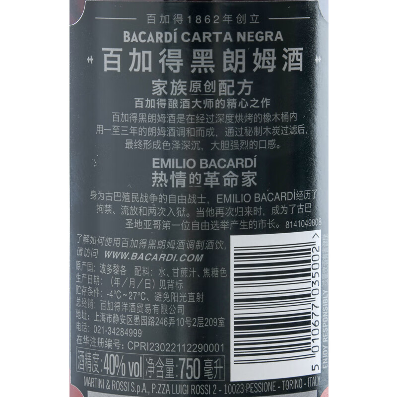 百加得黑朗姆酒_40%vol_750ml