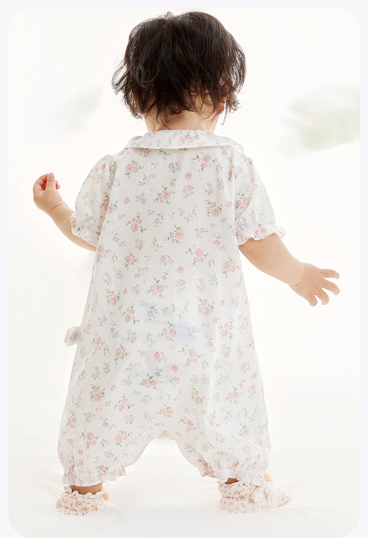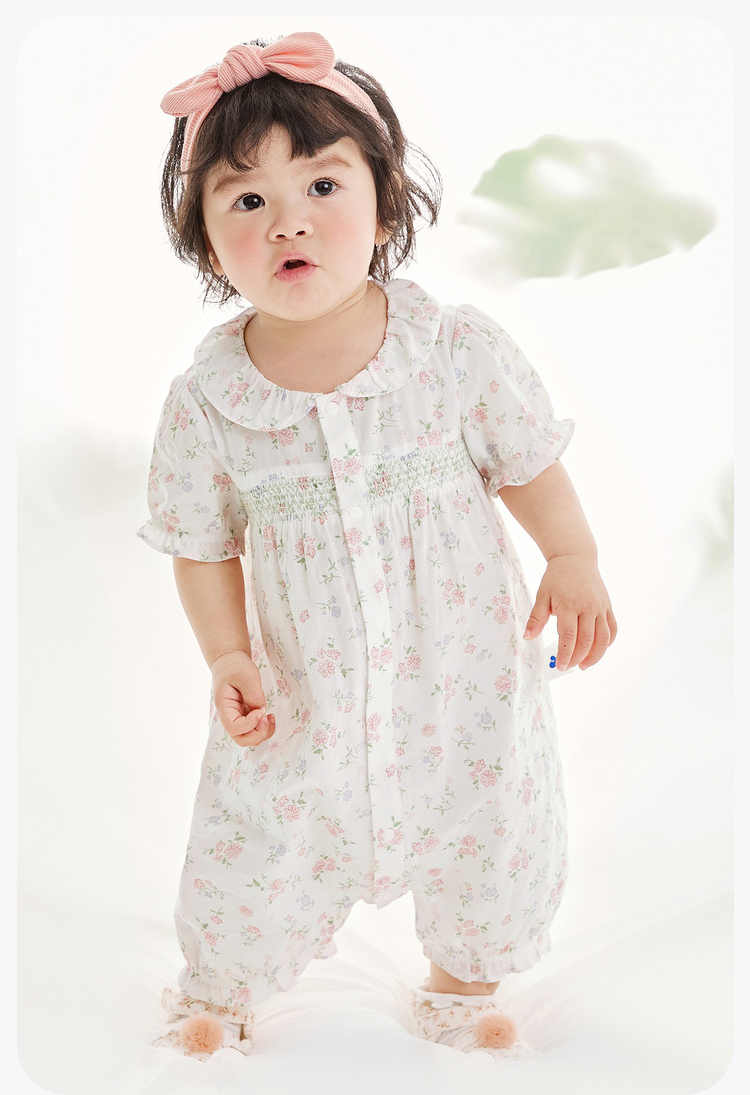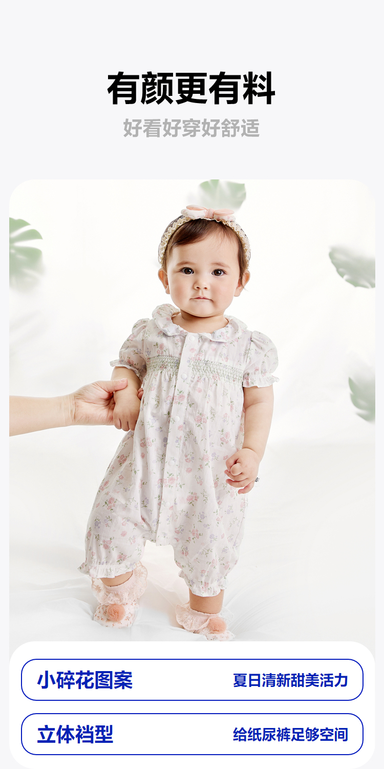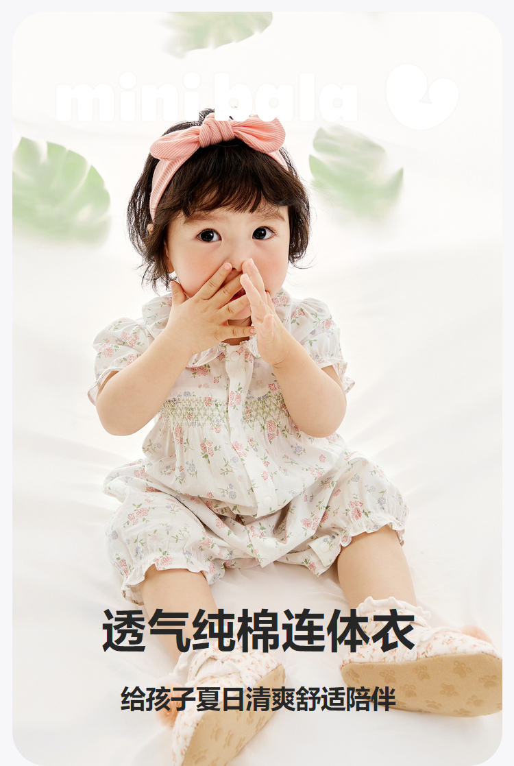 迷你巴拉夏季新款女童轻薄透气纯棉连体衣宝宝亲肤碎花爬服