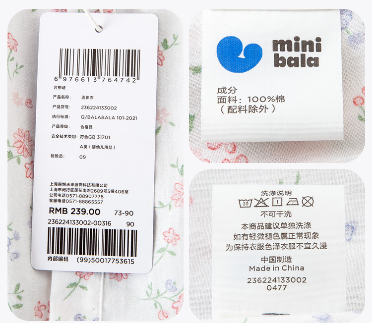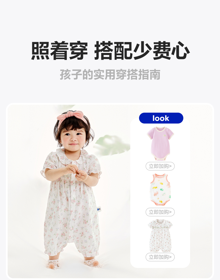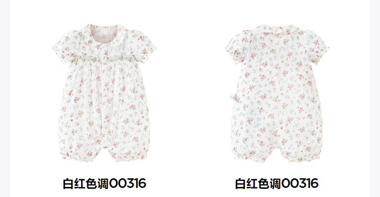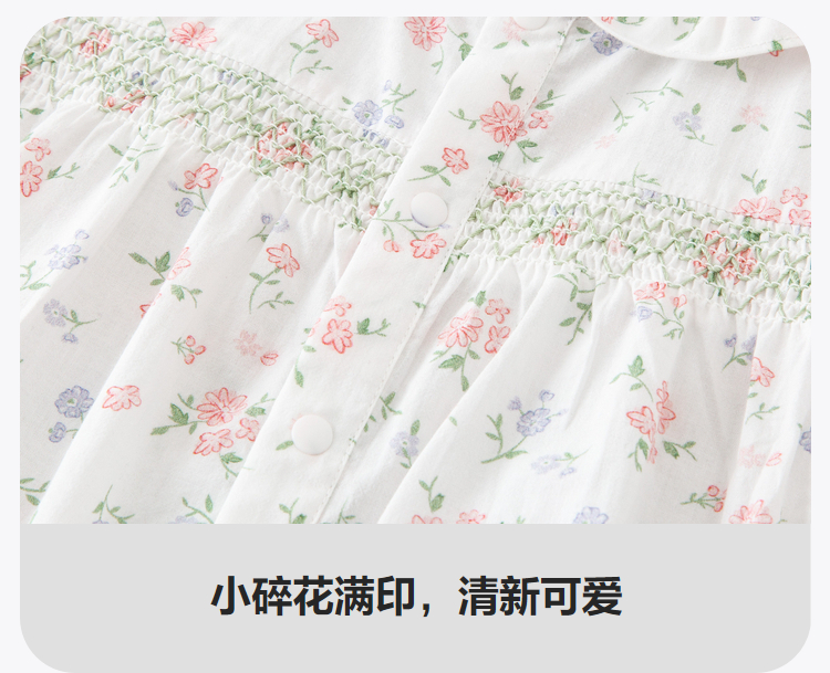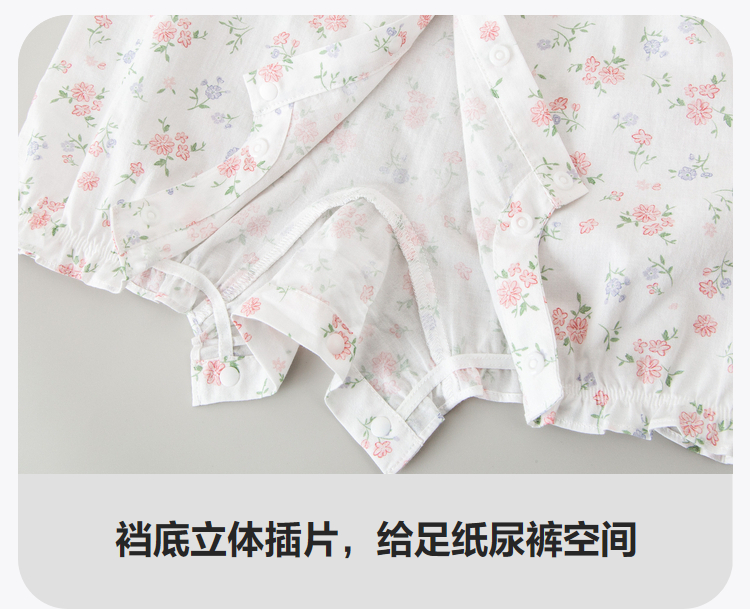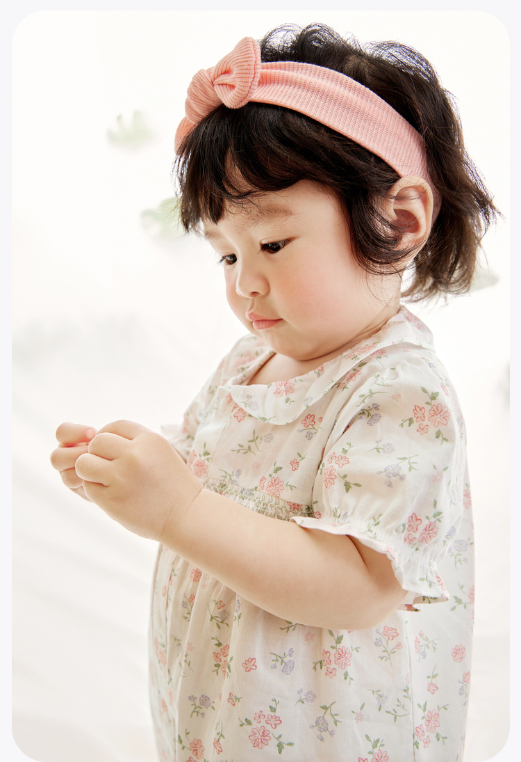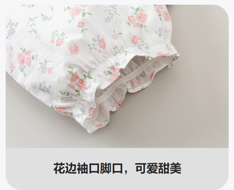 迷你巴拉夏季新款女童轻薄透气纯棉连体衣宝宝亲肤碎花爬服