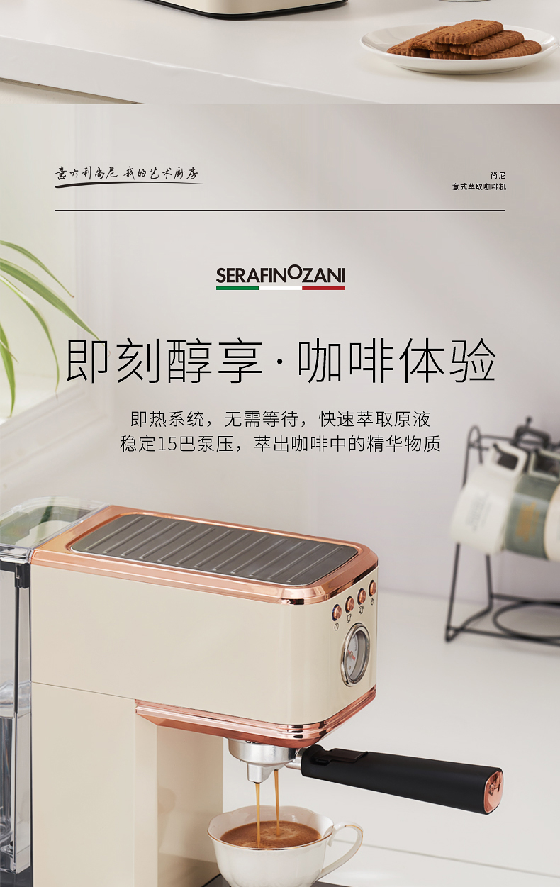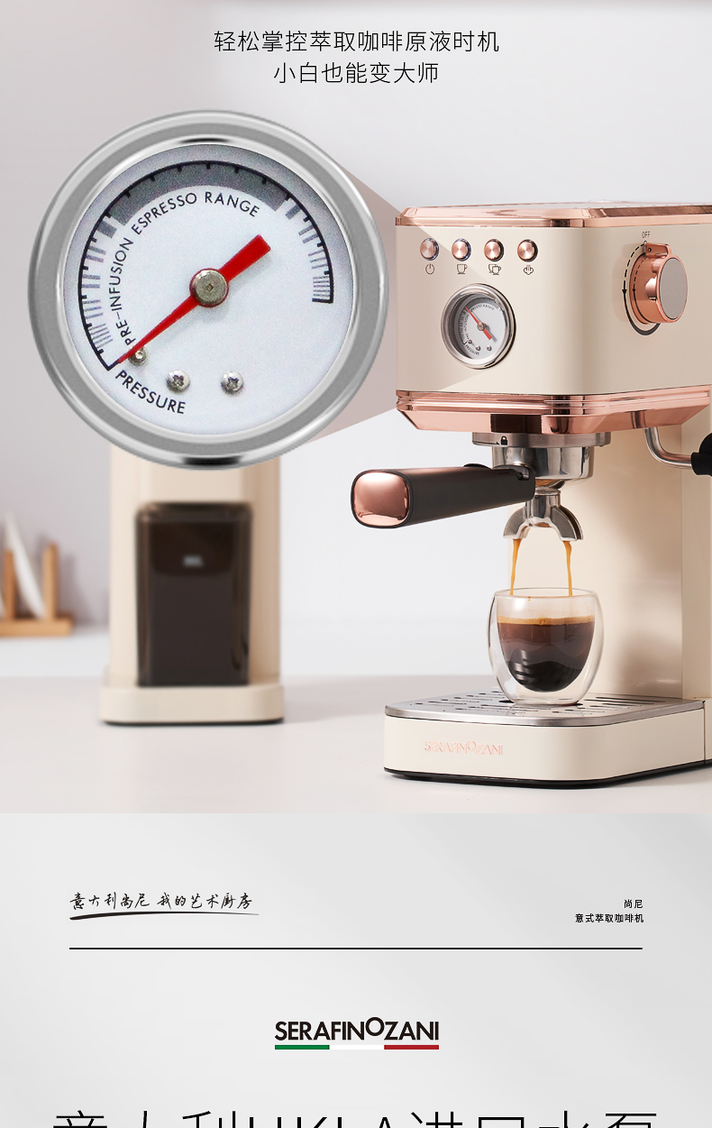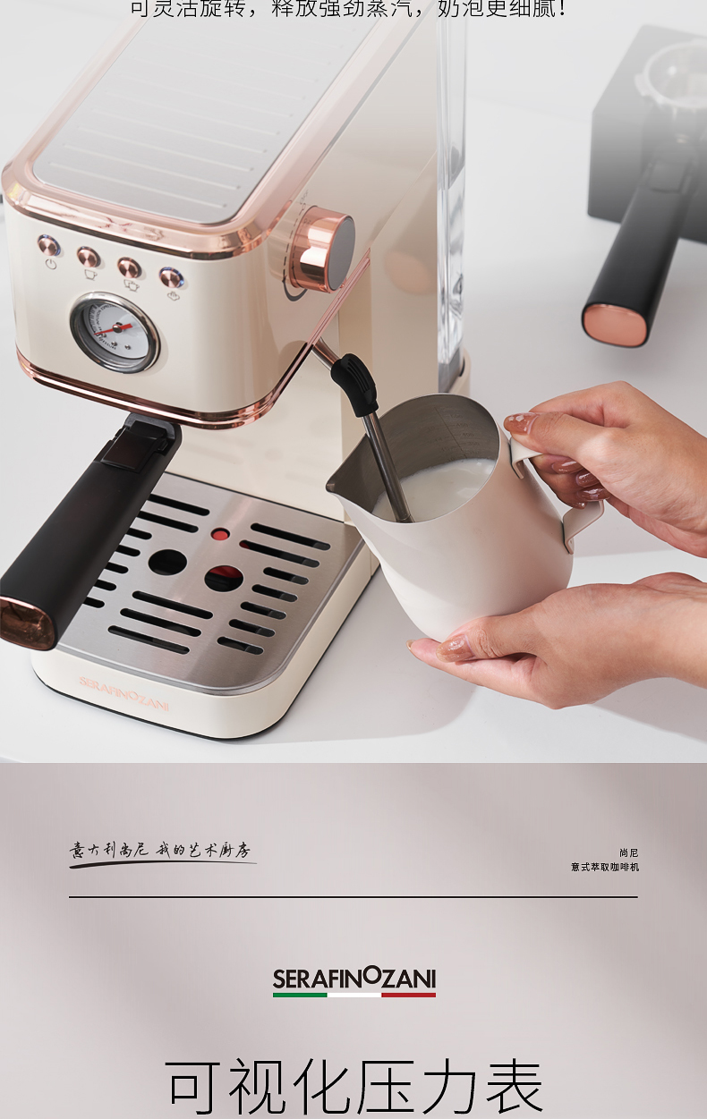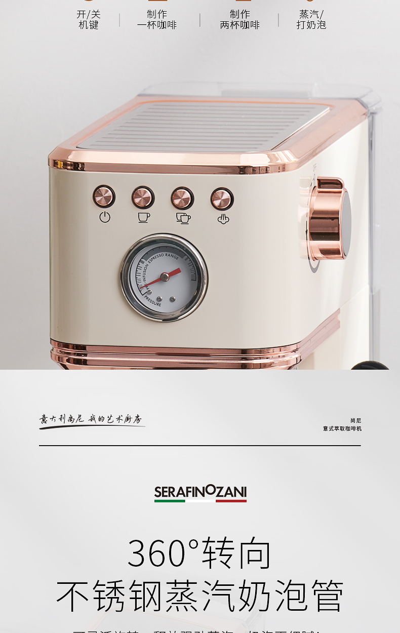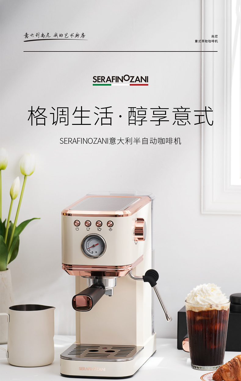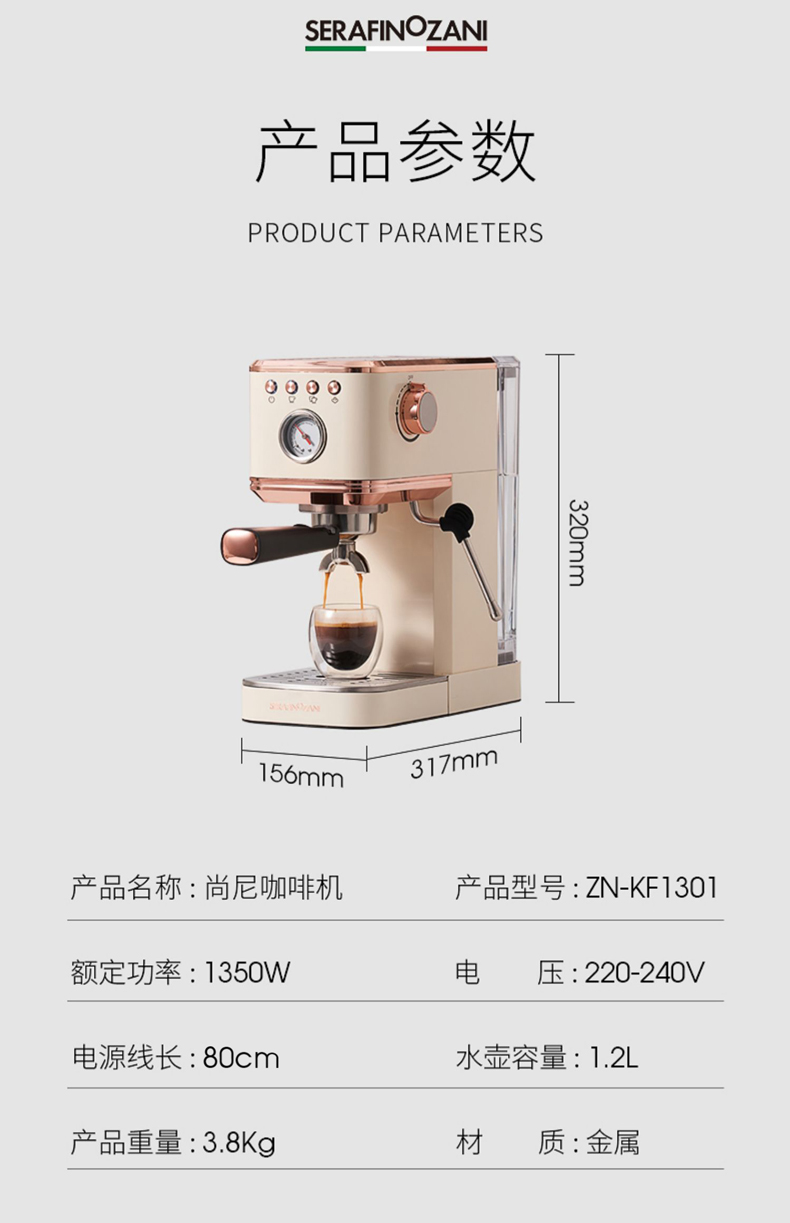 意大利 尚尼|半自动意式咖啡机一键萃取家用小型蒸汽打奶泡浓缩咖啡 咖啡机ZN-KF1301