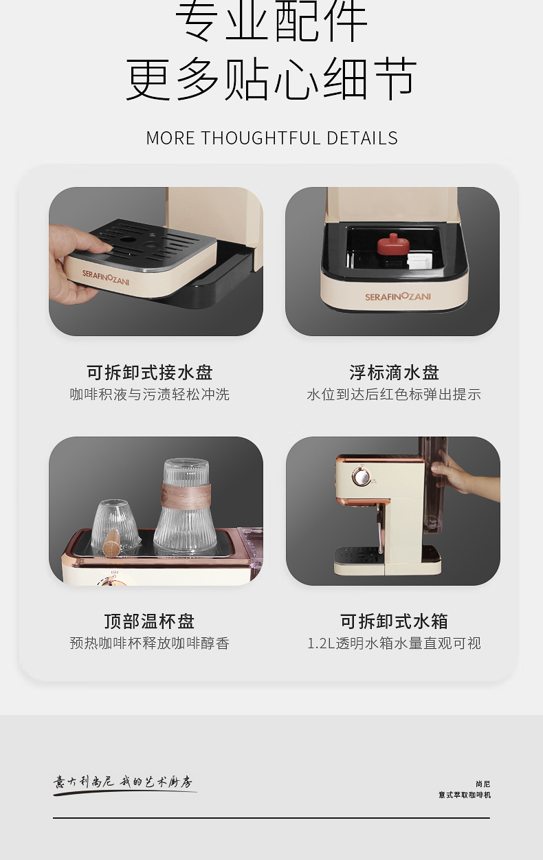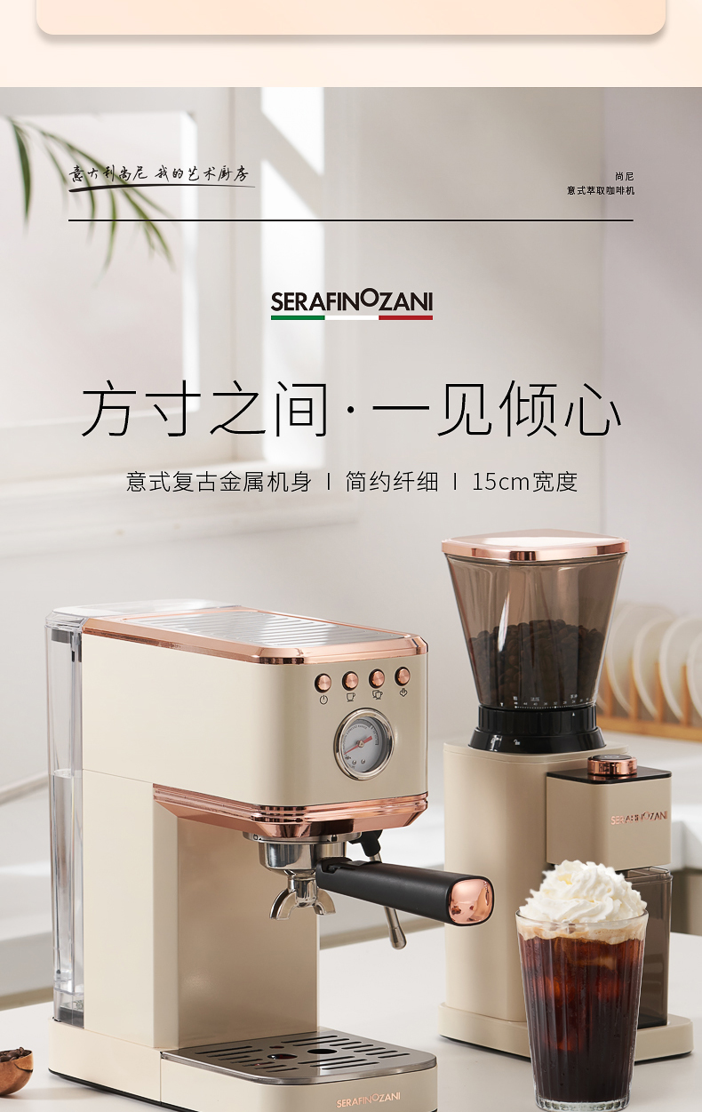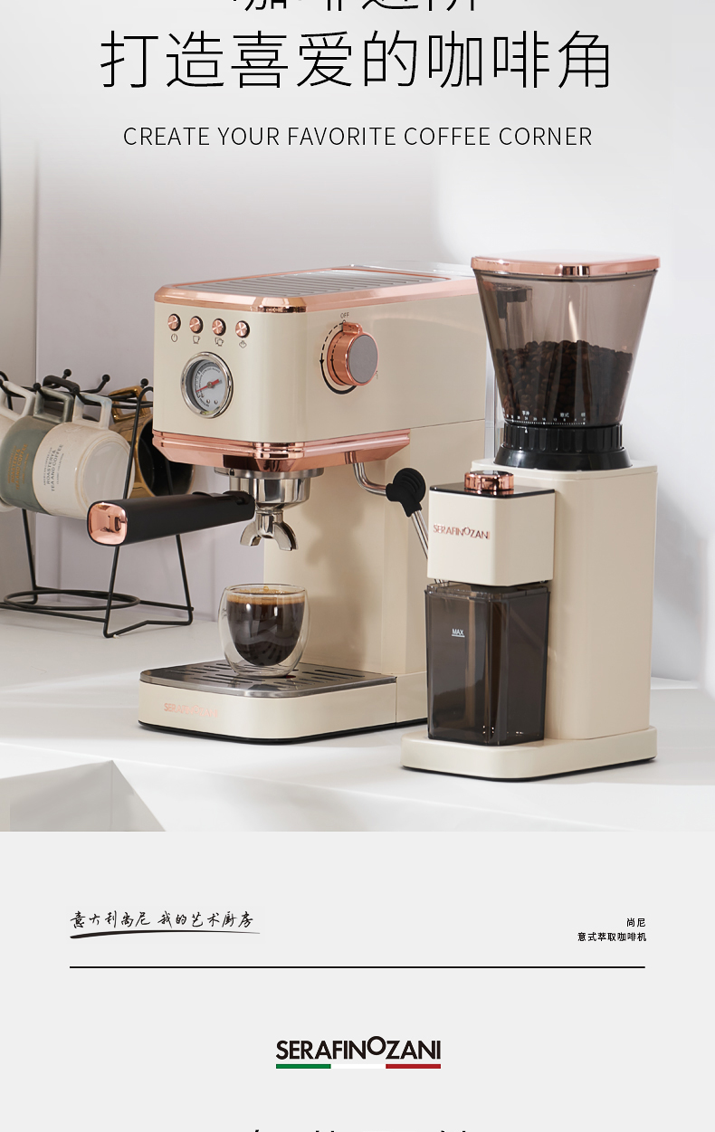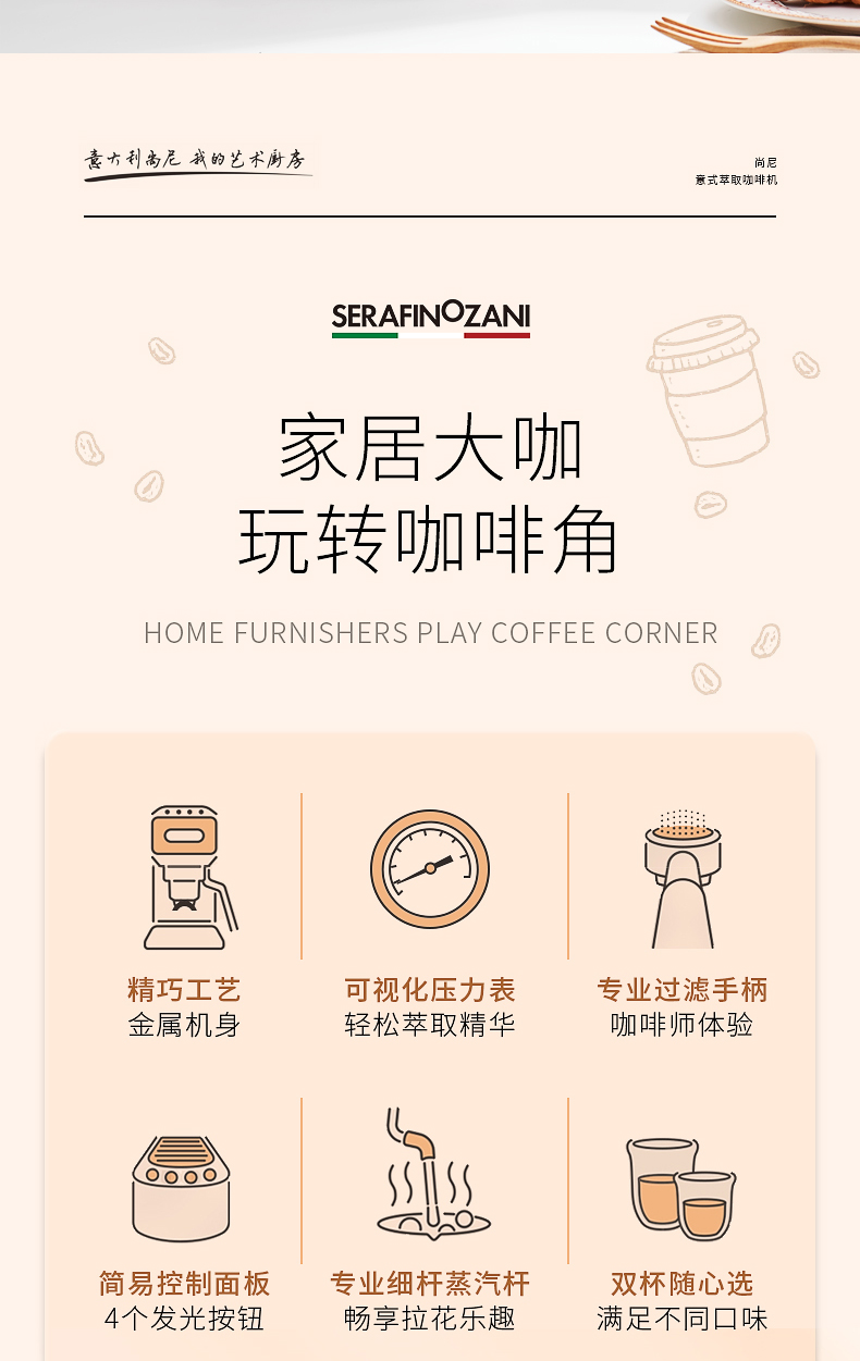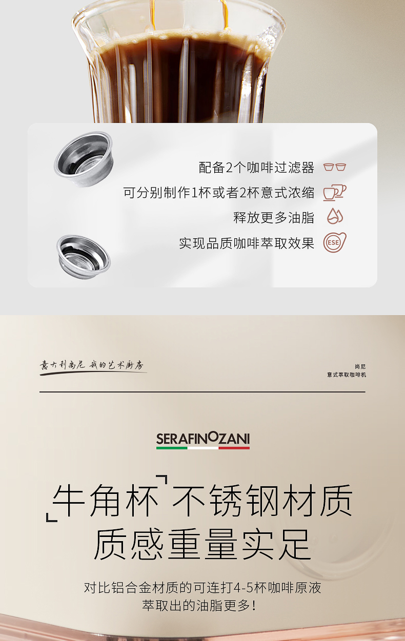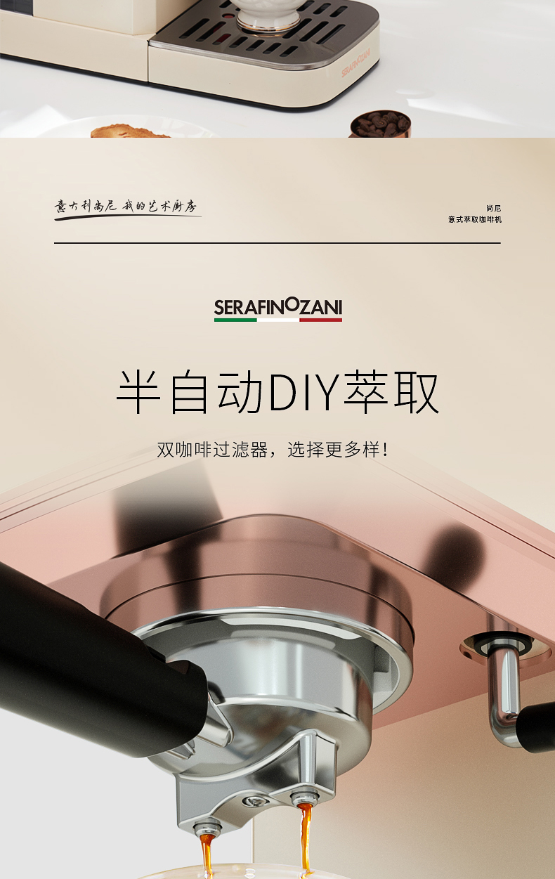 意大利 尚尼|半自动意式咖啡机一键萃取家用小型蒸汽打奶泡浓缩咖啡 咖啡机ZN-KF1301