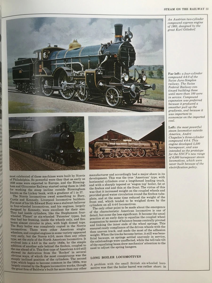 《蒸汽动力图史》由J.T.范·里姆斯戴克(J. T. Van Riemsdijk)撰写,是一本出版于1980年的精装图书,详细介绍了蒸汽动力的发展历程和辉煌成就。这本书通过大量珍贵的历史照片,生动地展现了蒸汽动力从诞生到鼎盛的全过程。全书分为多个章节,叙述了蒸汽动力历史的不同方面。比如早期蒸汽机的发明和发展,包括詹姆斯·瓦特和乔治·史蒂芬森等关键人物的贡献。以及蒸汽动力在工业革命中的应用,展示了蒸汽机如何推动了各个工业部门的进步。此外,还有章节专门介绍了蒸汽机车和蒸汽船的发展历程,探讨了它们在交通运输中的重要角色。书中包含数百幅丰富的插图和照片,不仅记录了各种蒸汽机的设计和结构,还展示了它们在实际应用中的壮观场景。这些图像不仅增强了书籍的可读性,也为读者提供了直观的视觉体验,使人们更好地理解蒸汽动力的历史和影响。