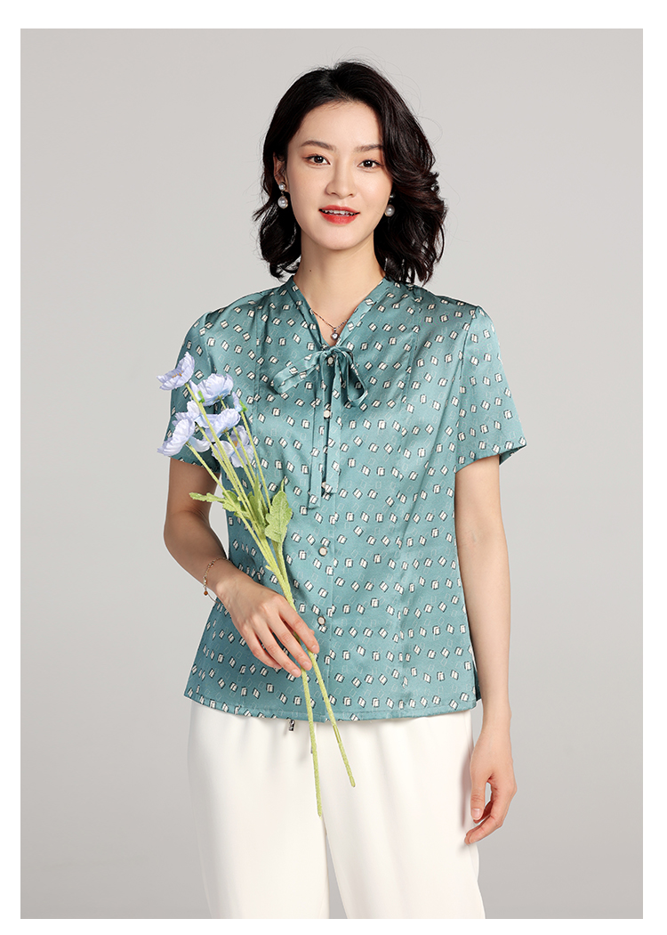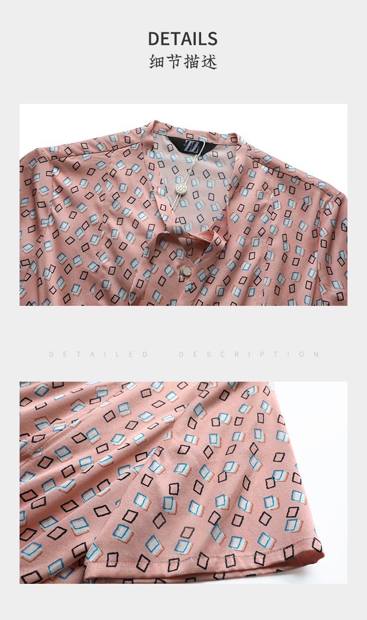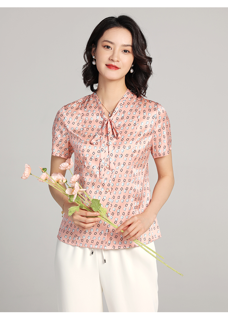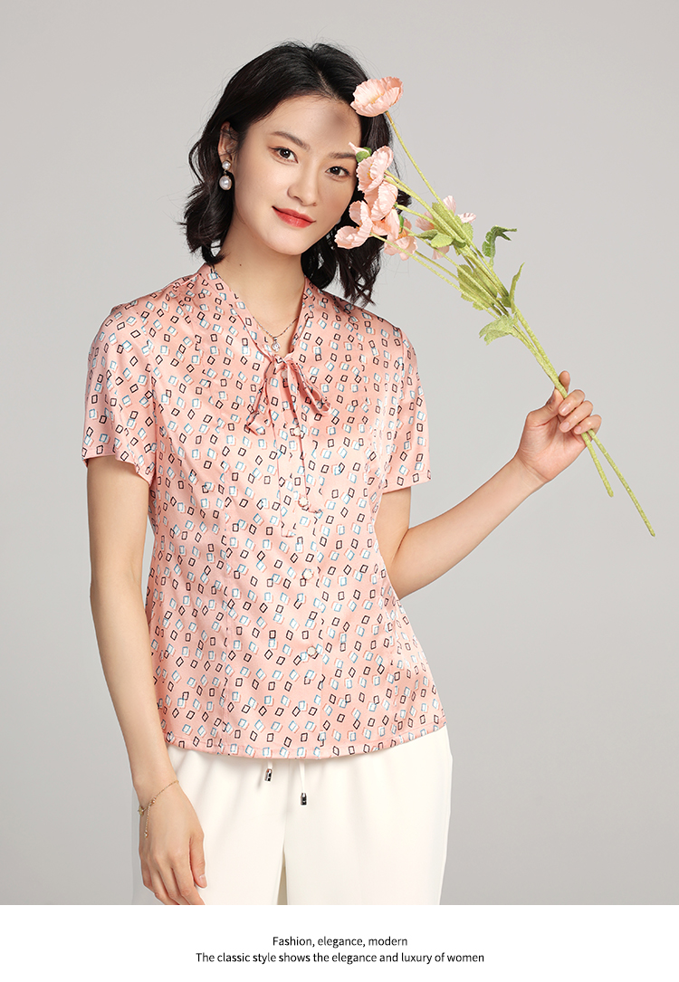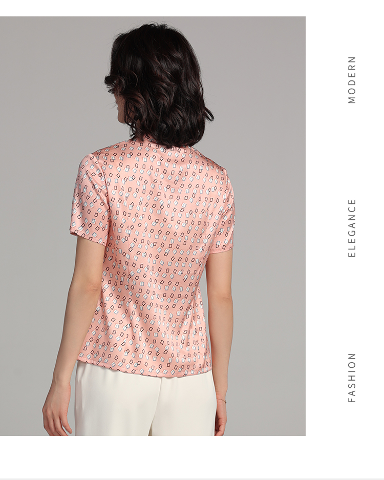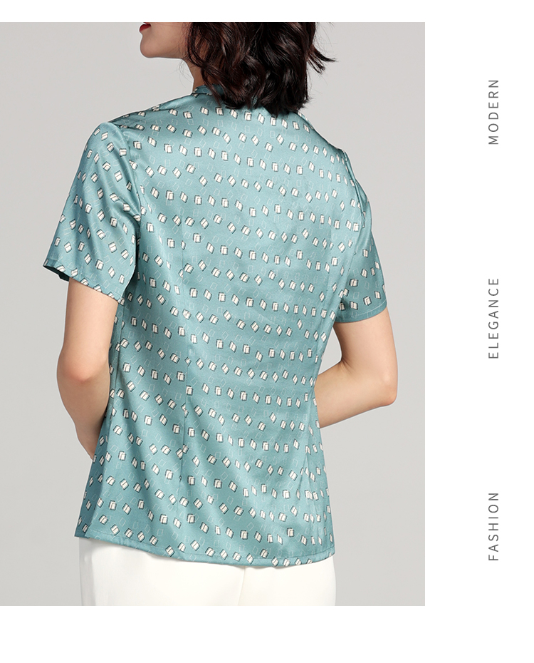 佐尔美夏季新款 桑蚕丝真丝几何图形短袖衬衣女E22CS11