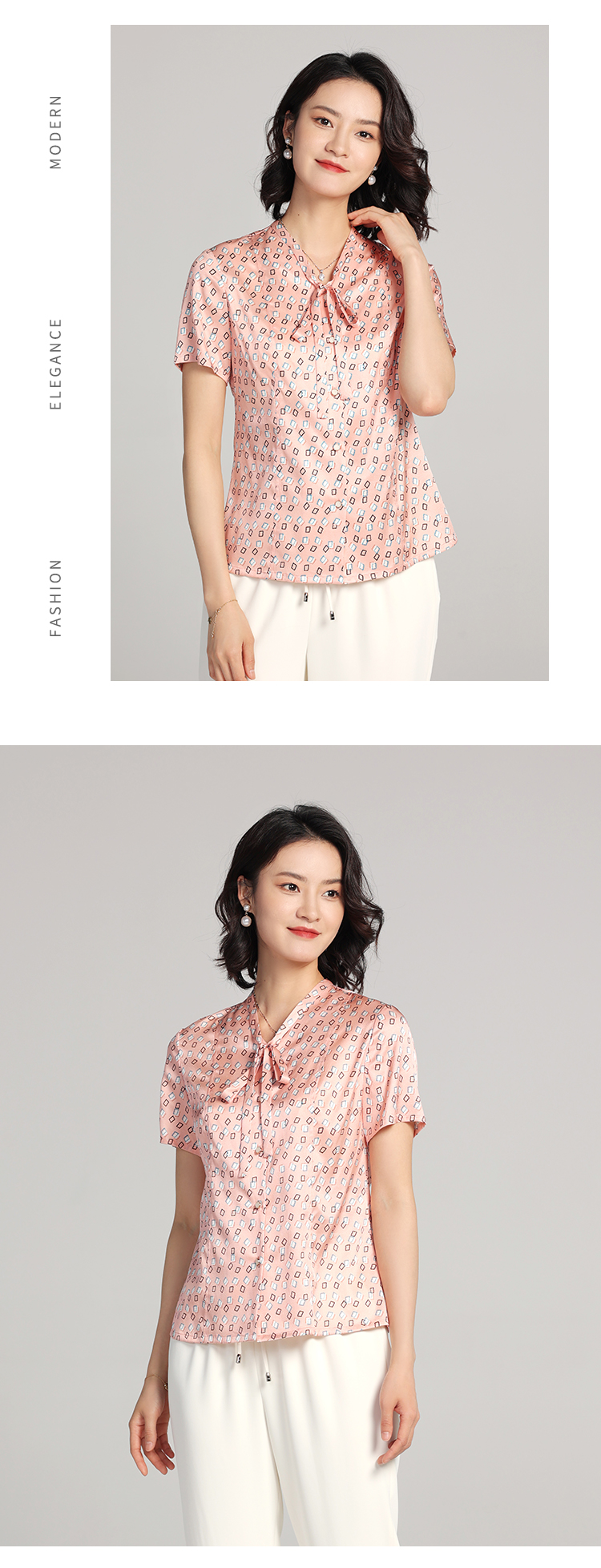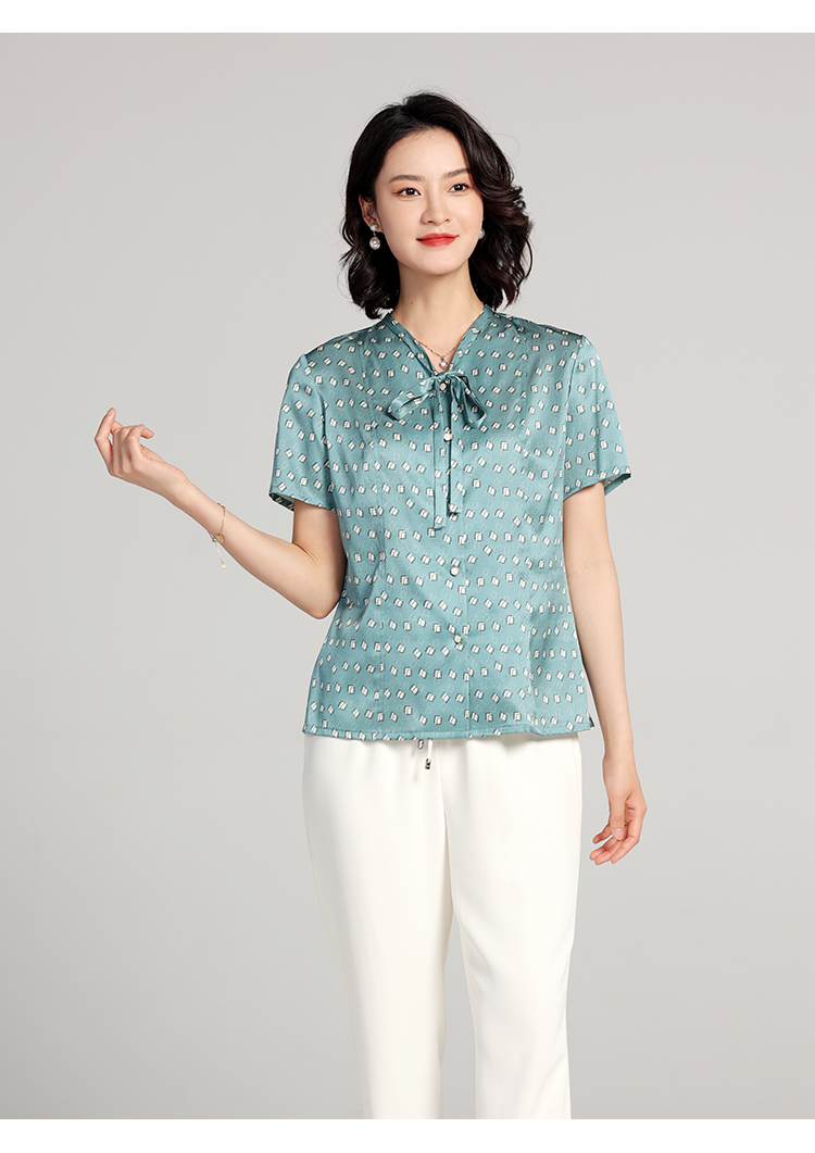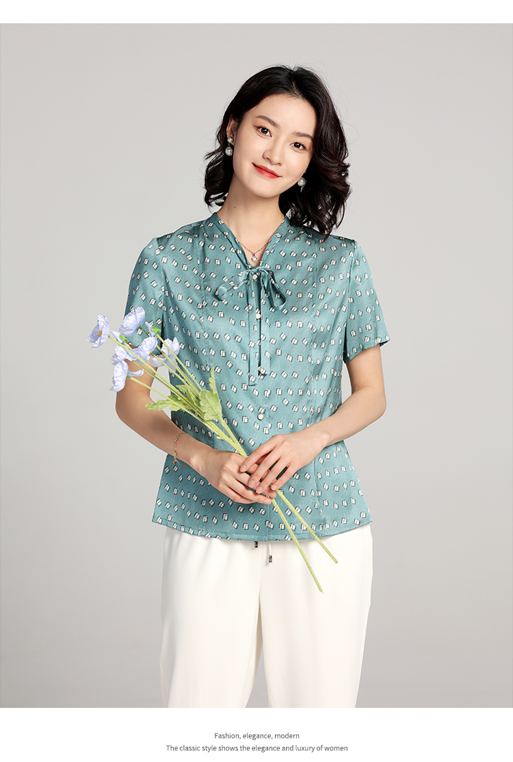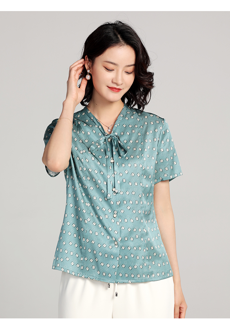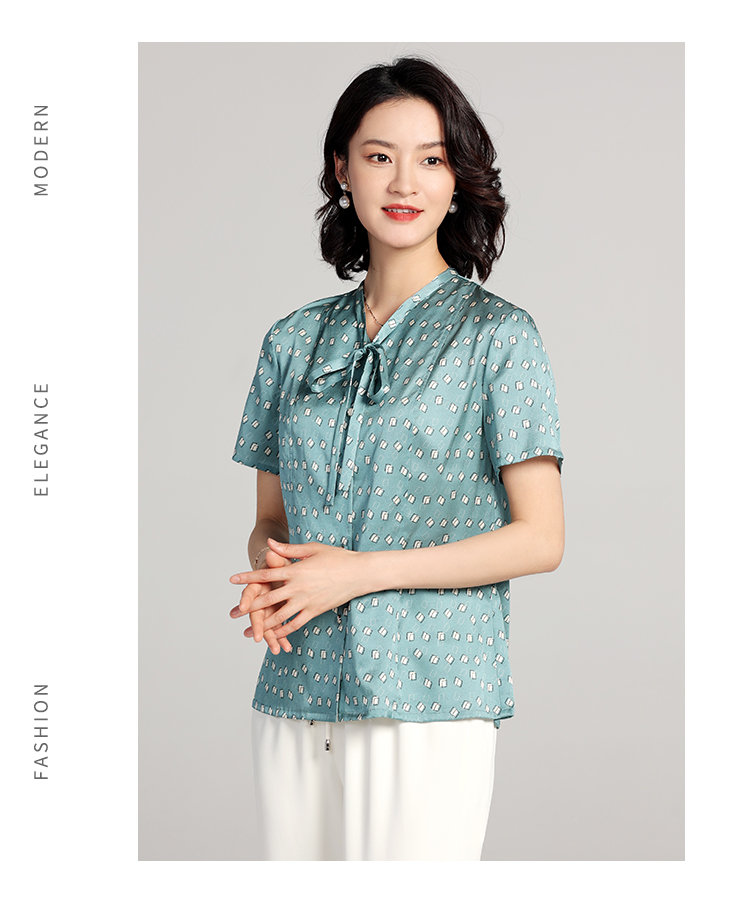 佐尔美夏季新款 桑蚕丝真丝几何图形短袖衬衣女E22CS11