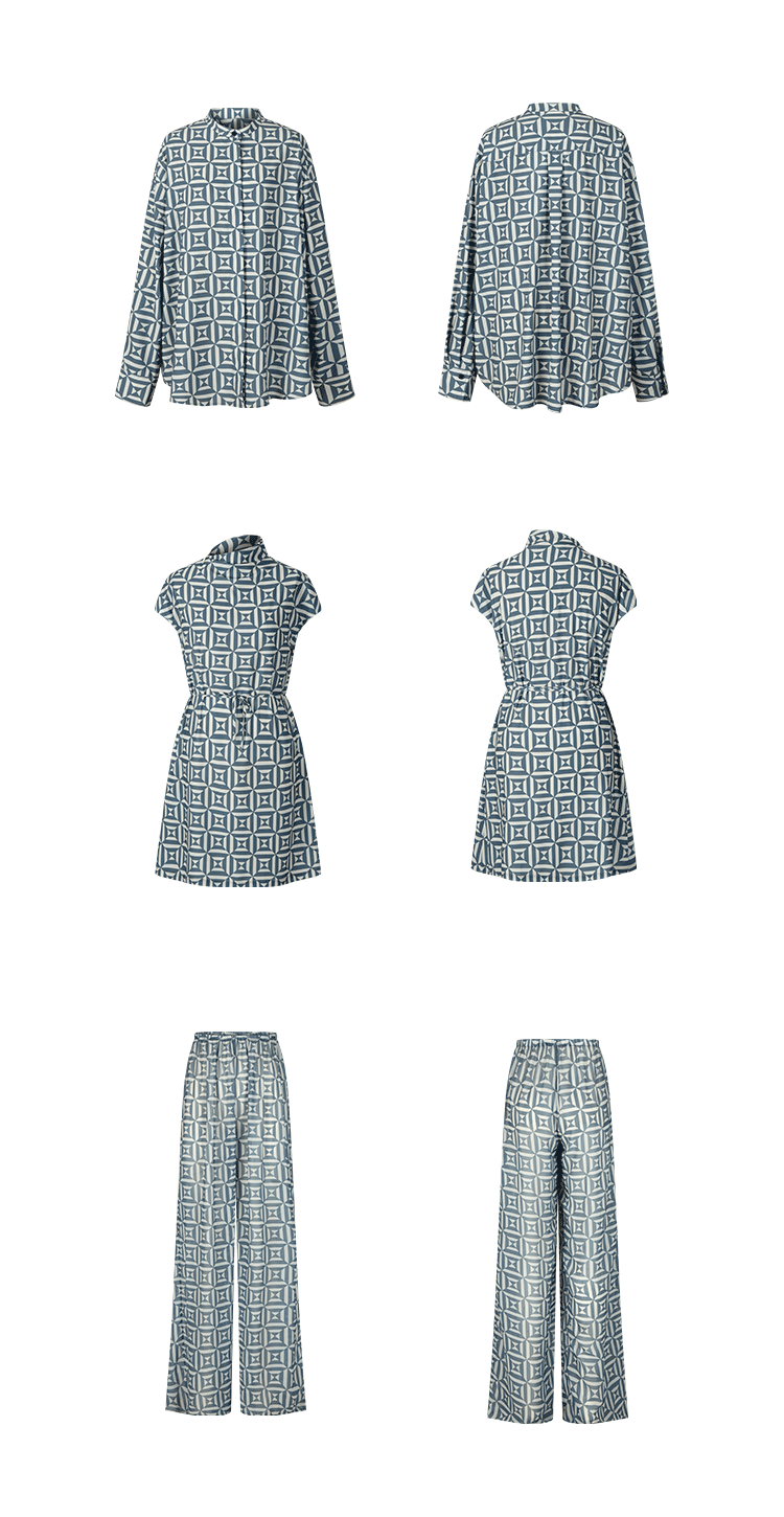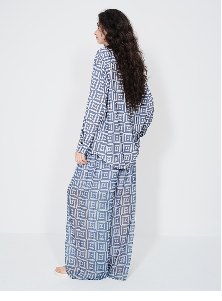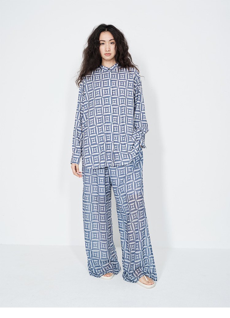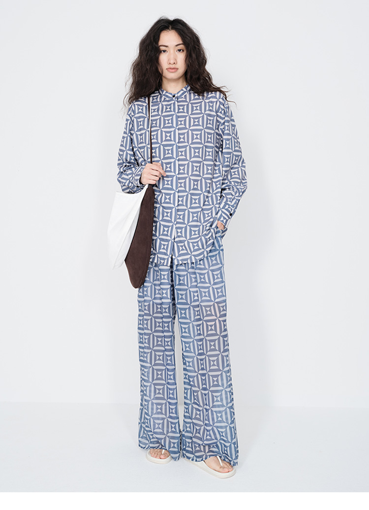 HIDEMI “我们做印花”经典几何图形印花垂顺套装 短袖上衣/阔腿裤/长袖衬衫