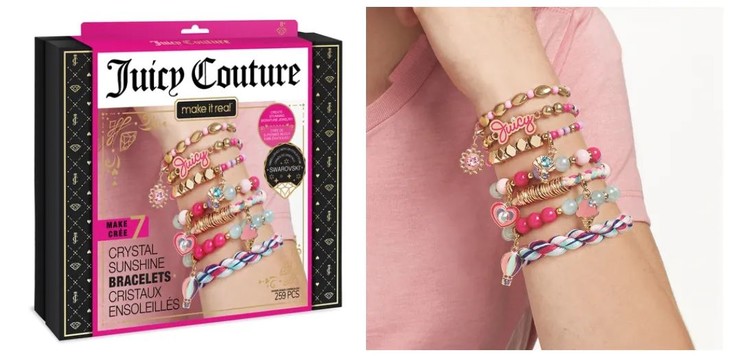 这套Juicy Couture合作款的闪亮水晶DIY手链礼盒,串珠、吊坠含施华洛世奇水晶,还有各种爱心、花朵造型,少女心十足!