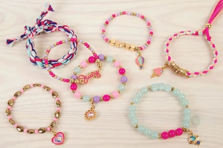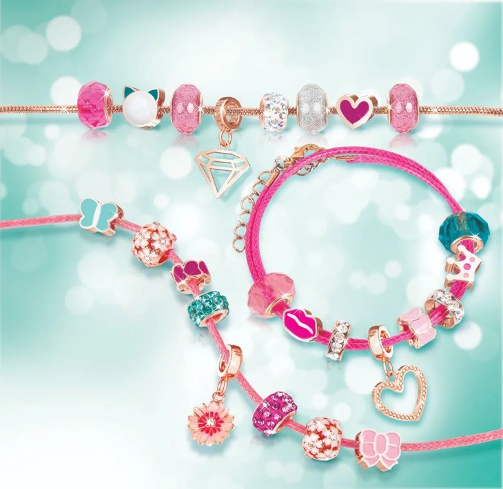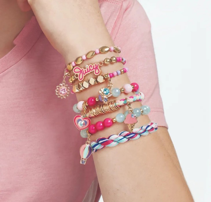 这套Juicy Couture合作款的璀璨闪耀DIY手链礼盒,有多达12款吊坠,闪亮的金色串珠加上甜心粉色四代,这就是小公主的最爱呀!