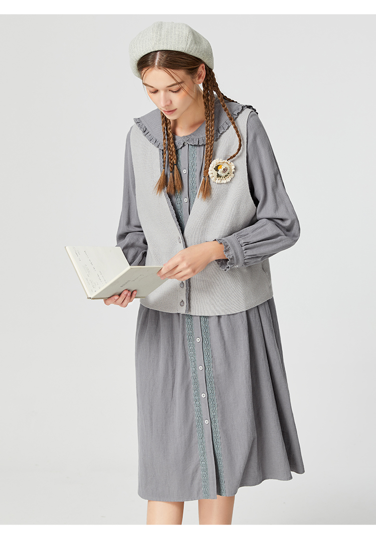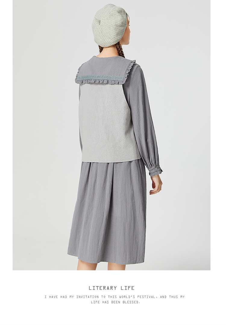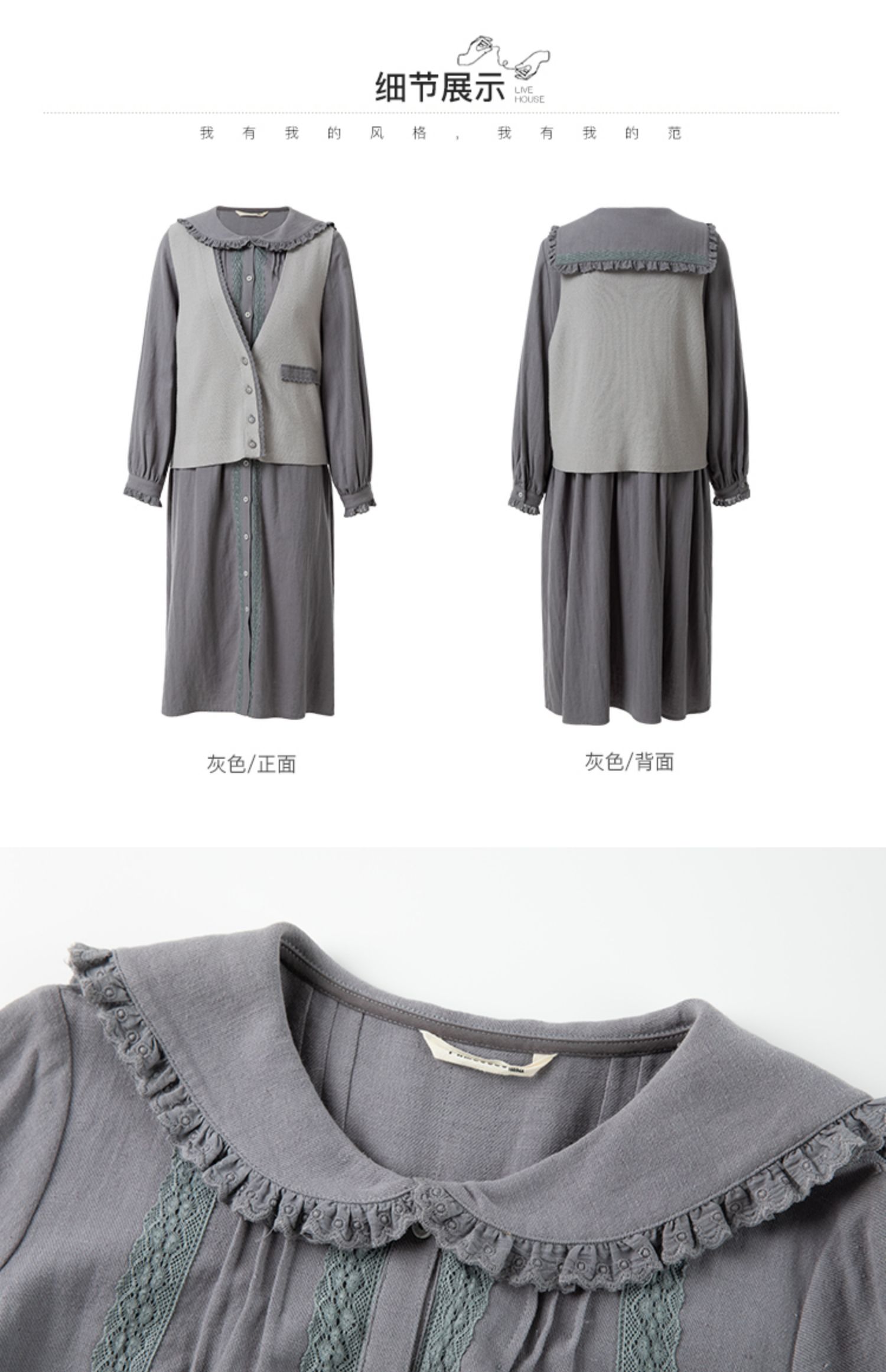 Famecoco范可儿公主领连衣裙马甲两件套春秋季品牌棉麻时尚套装女F225EA001