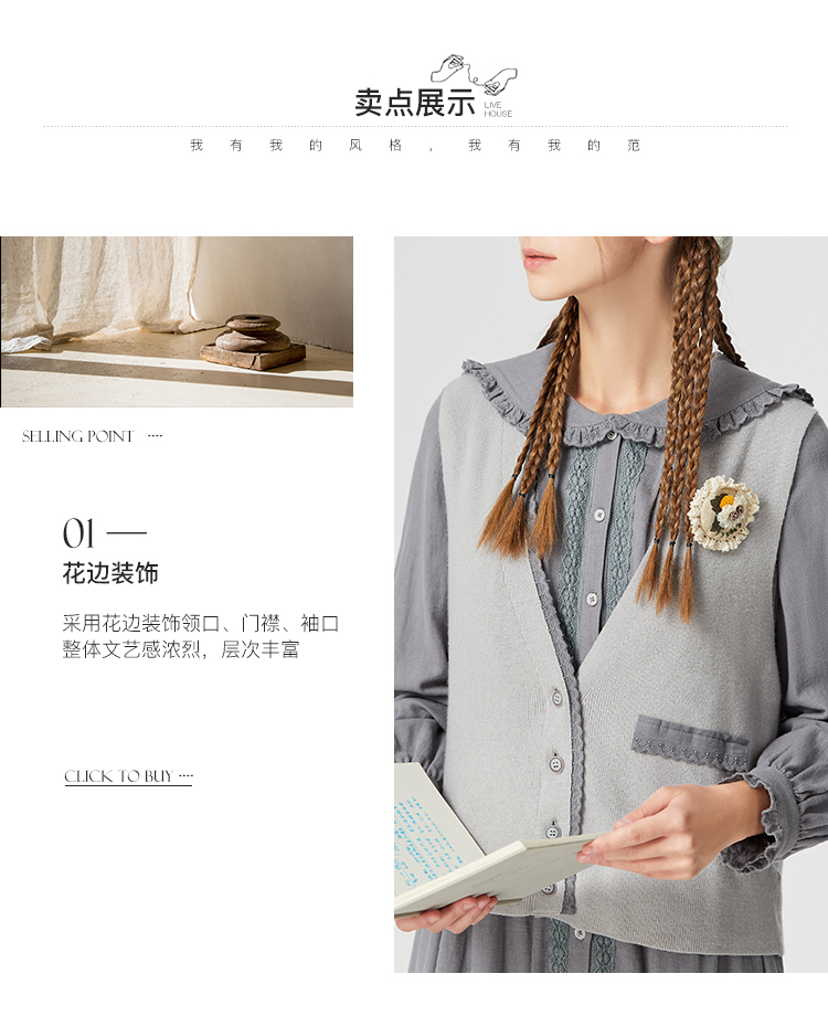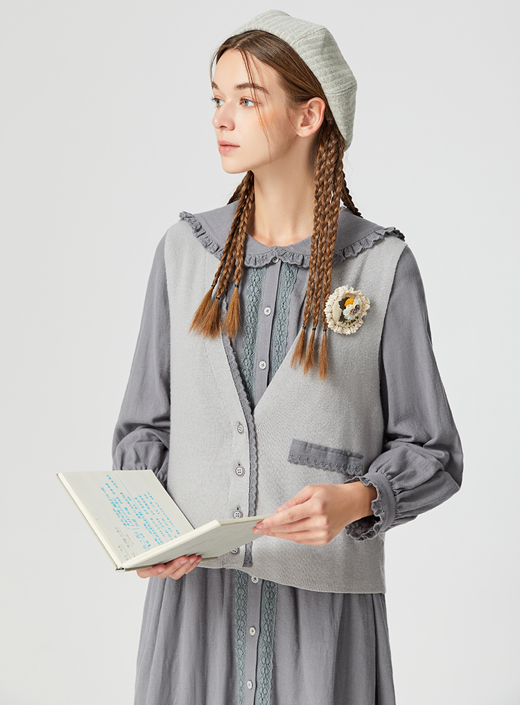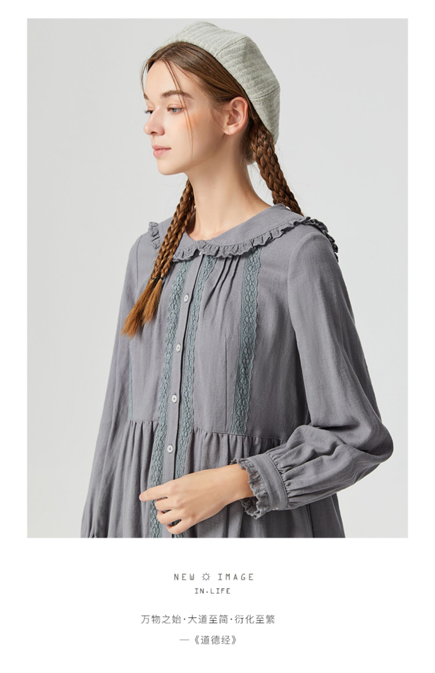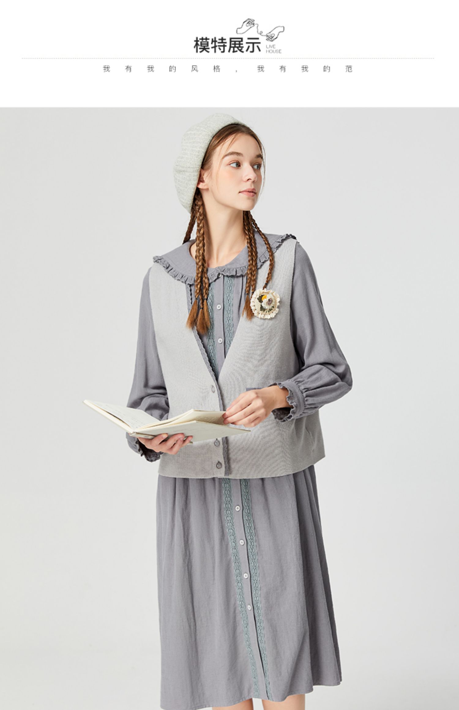 Famecoco范可儿公主领连衣裙马甲两件套春秋季品牌棉麻时尚套装女F225EA001