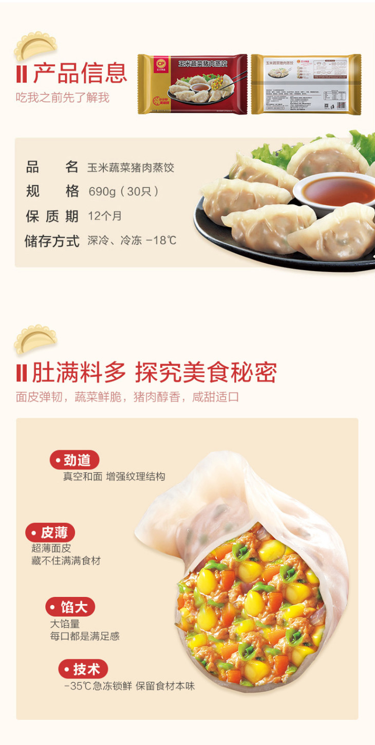 【正大玉米蔬菜猪肉蒸饺】460g/20个/袋,速冻食品