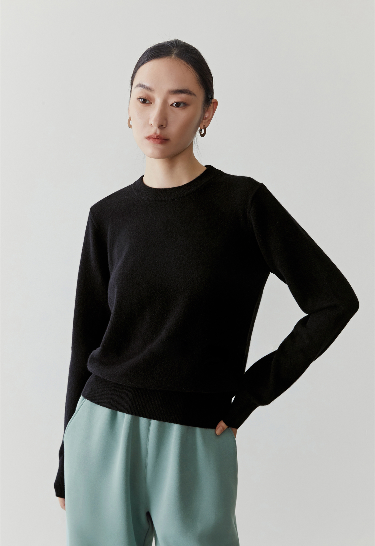 YANECINE 阿拉善山羊绒圆领打底毛衣