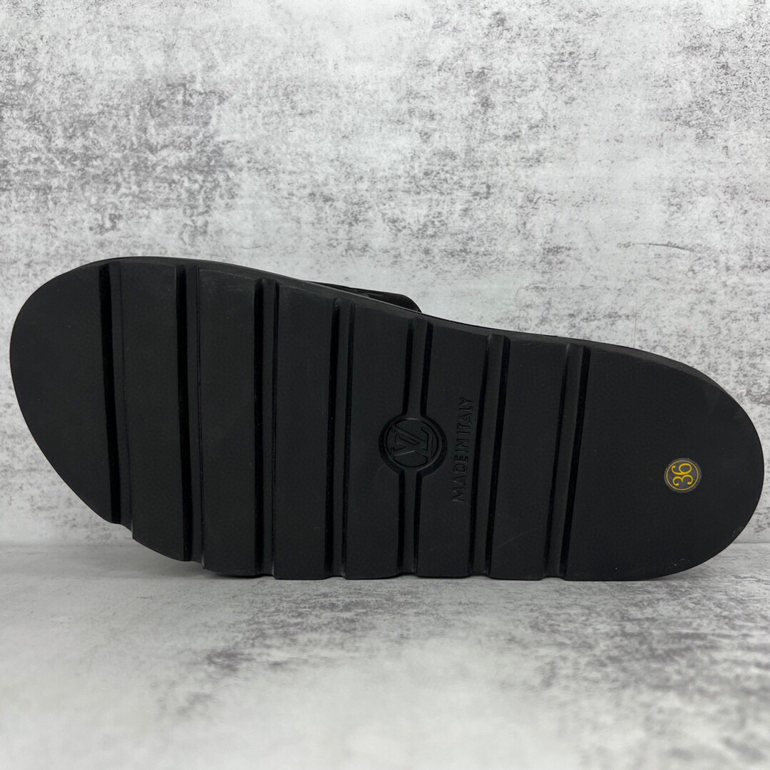 春季特惠💰420 LV LOU1S VU1TT0N 2022爆款情侣压花拖鞋 面料磨砂压花牛皮 内里水染羊皮 高弹pu水台垫脚