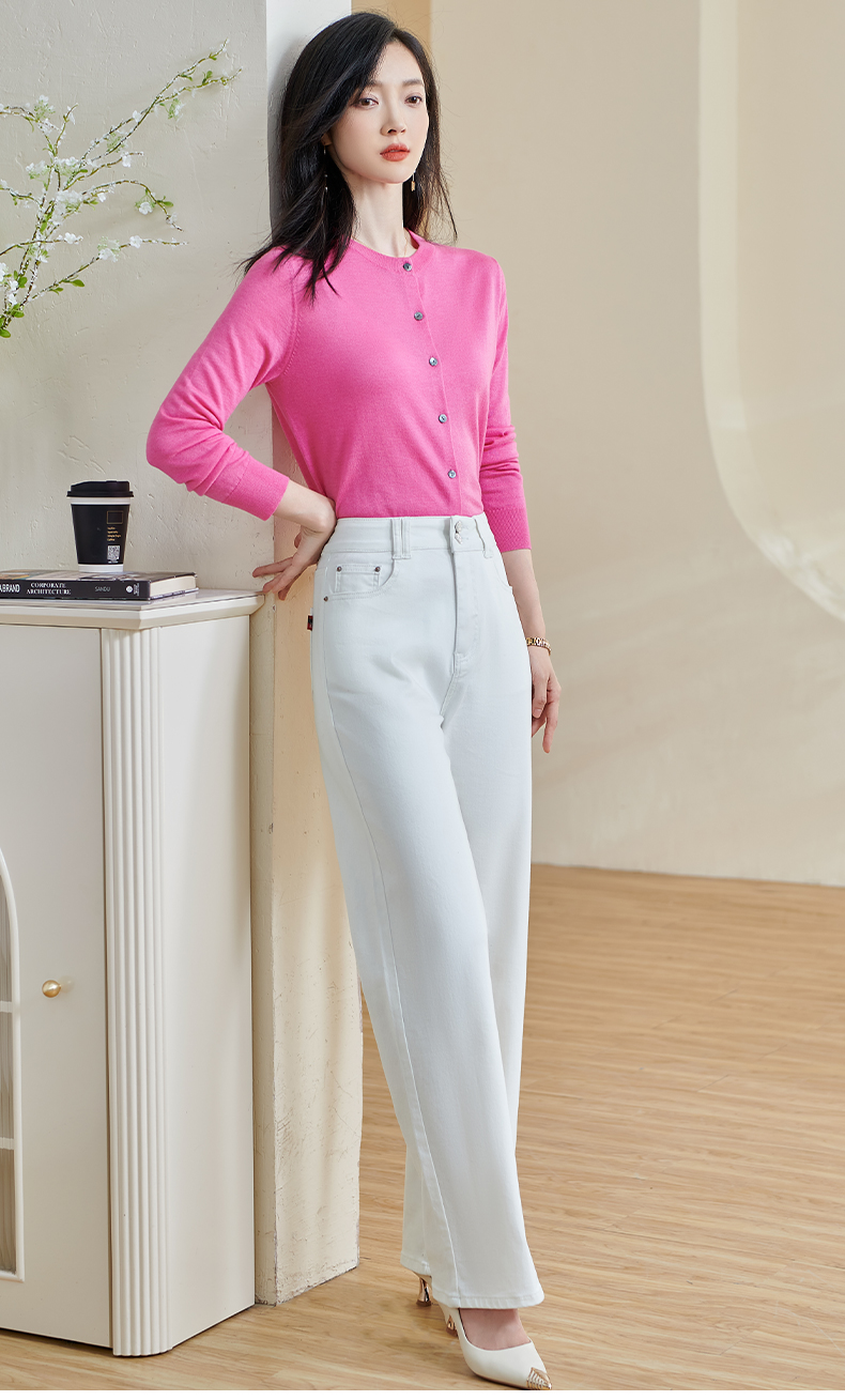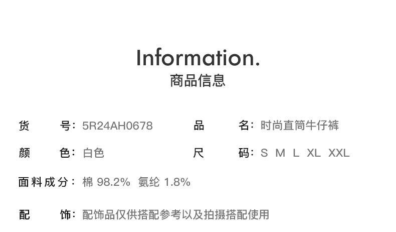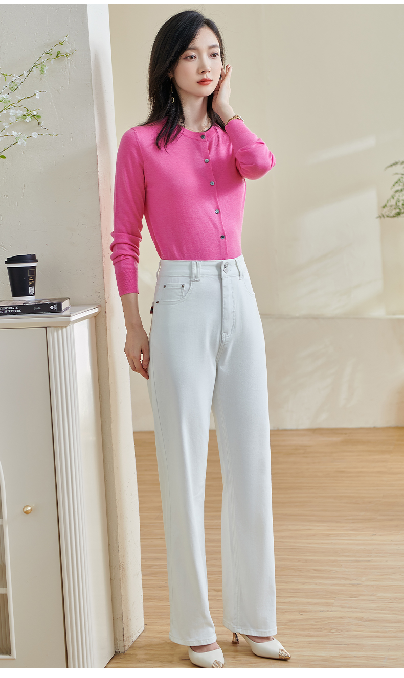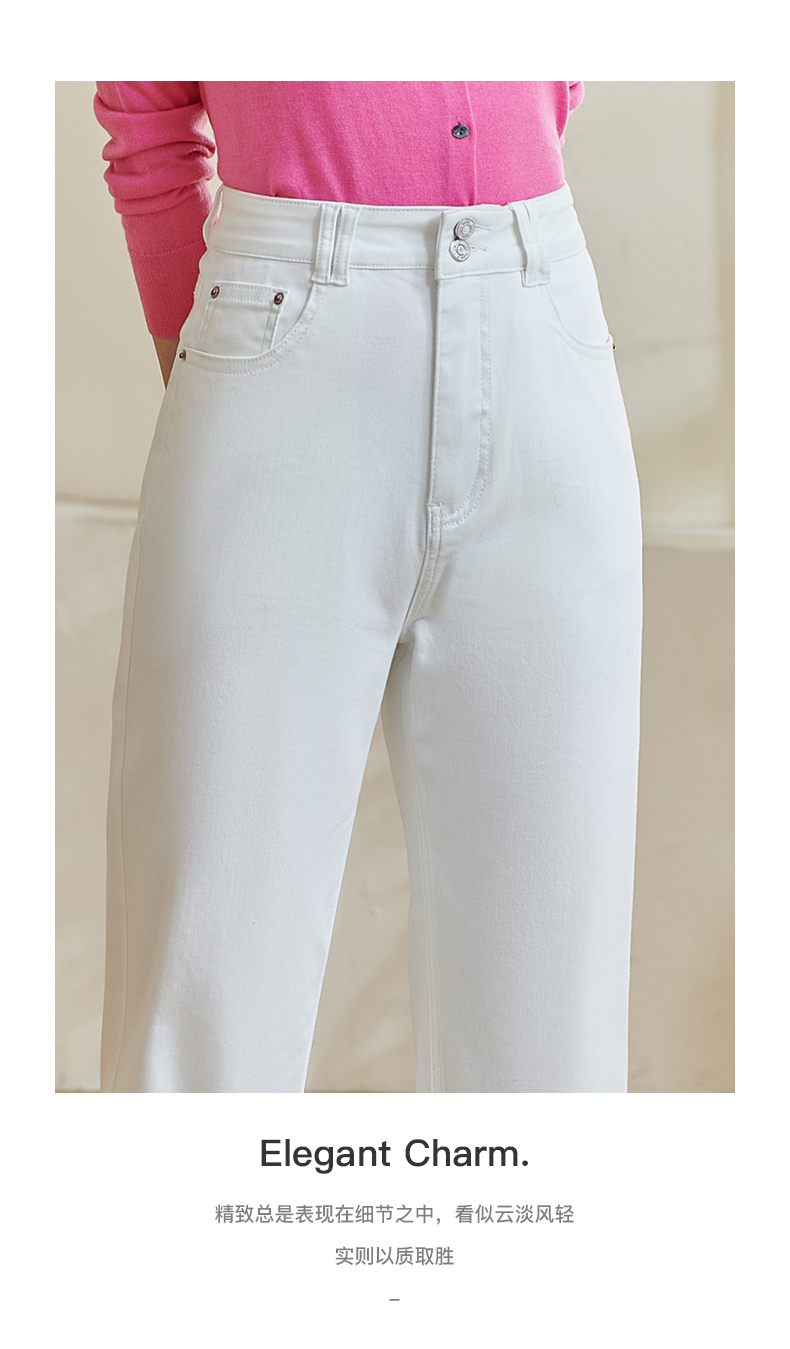软弹白牛仔 直筒修饰腿型 米思阳2026春季新款轻薄百搭时尚白色牛仔裤高腰裤子0678