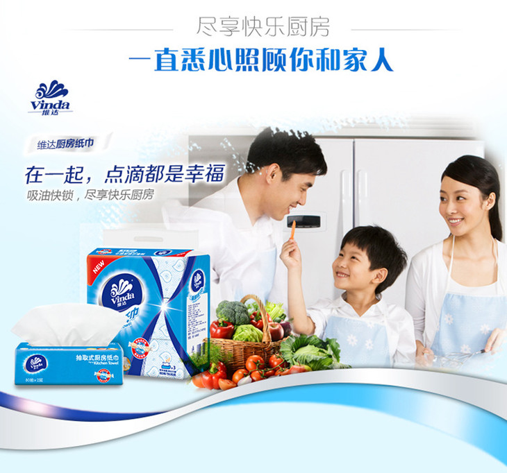 【维达抽取式厨房纸巾】80抽*3包/提,吸水吸油,厨房好帮手