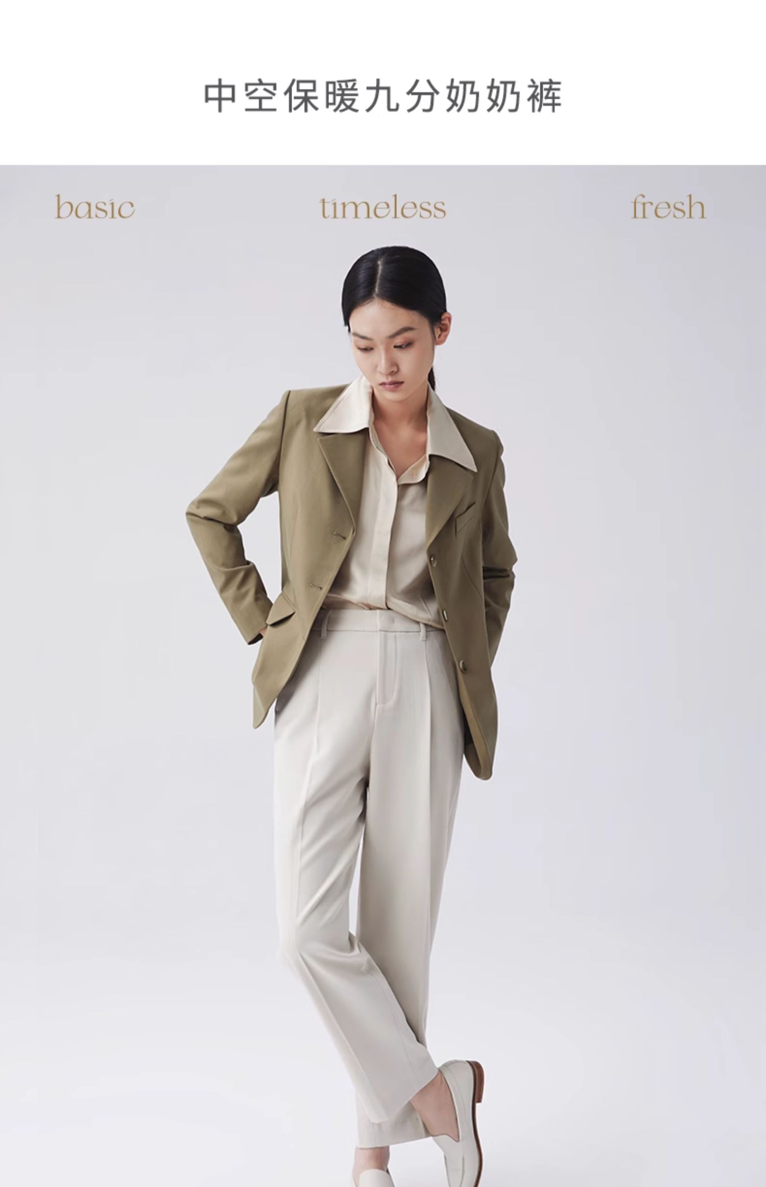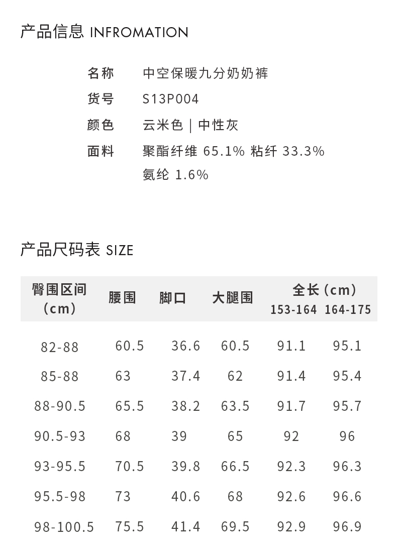 SPS休闲裤女弹力百搭中空保暖九分奶奶裤
