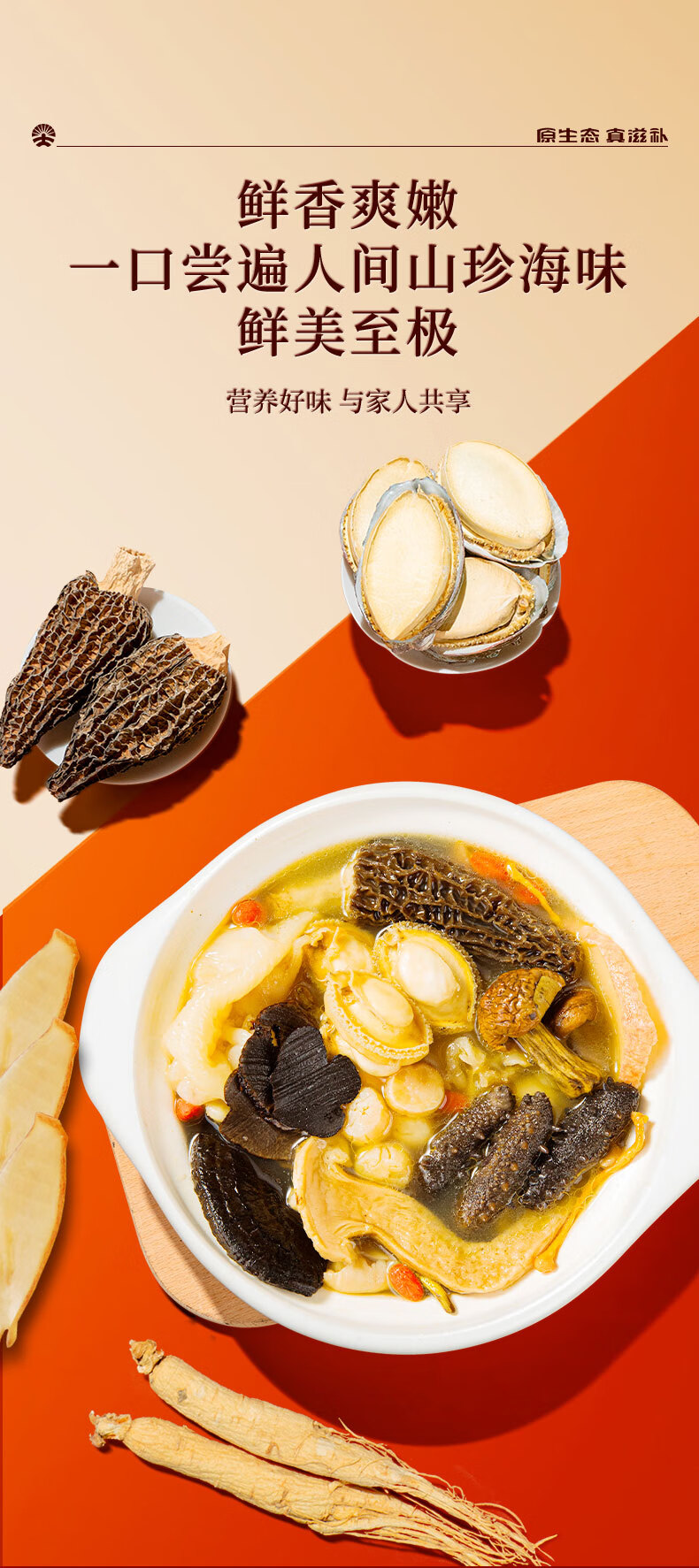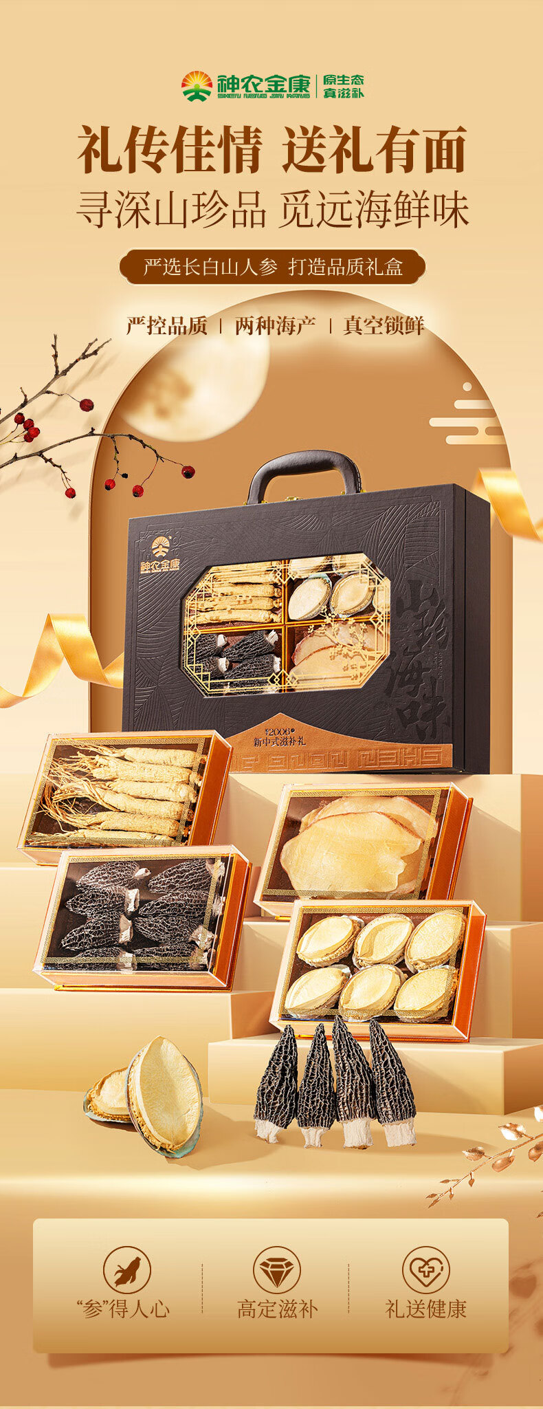 神农金康 人参鲍鱼羊肚菌螺片四拼山珍海味礼盒310g 新中式滋补礼 原生态真滋补 喝护家人健康