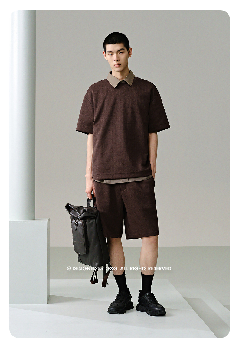 GXG男装 满印提花短裤直筒简约休闲好搭短裤春夏热卖短裤